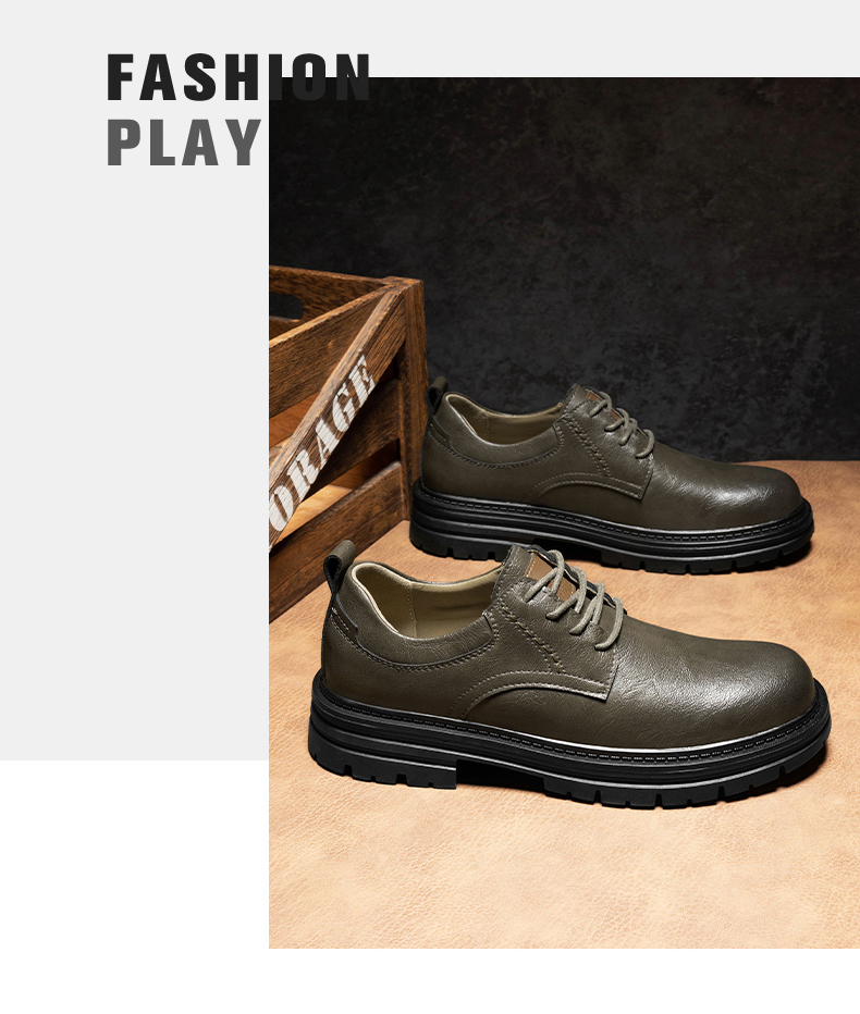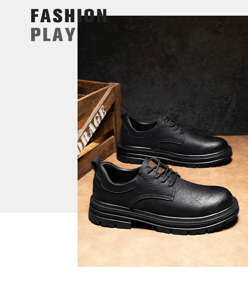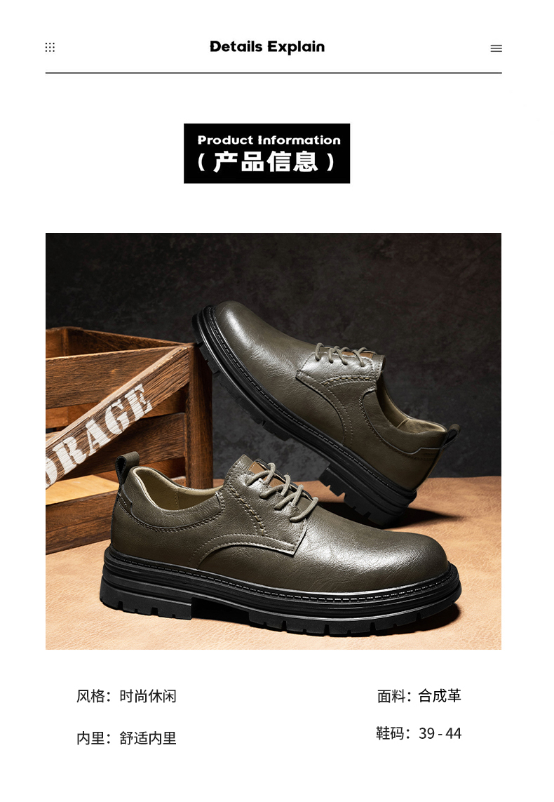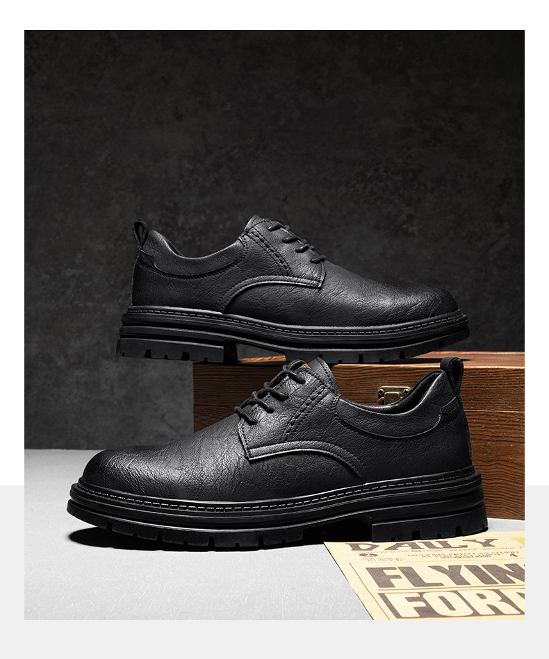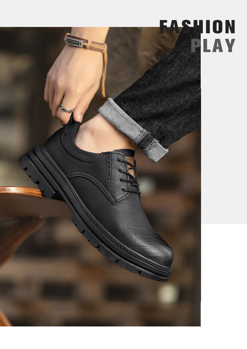 圣得西圆头系带防滑耐穿复古商务质感休闲皮鞋男2452963059