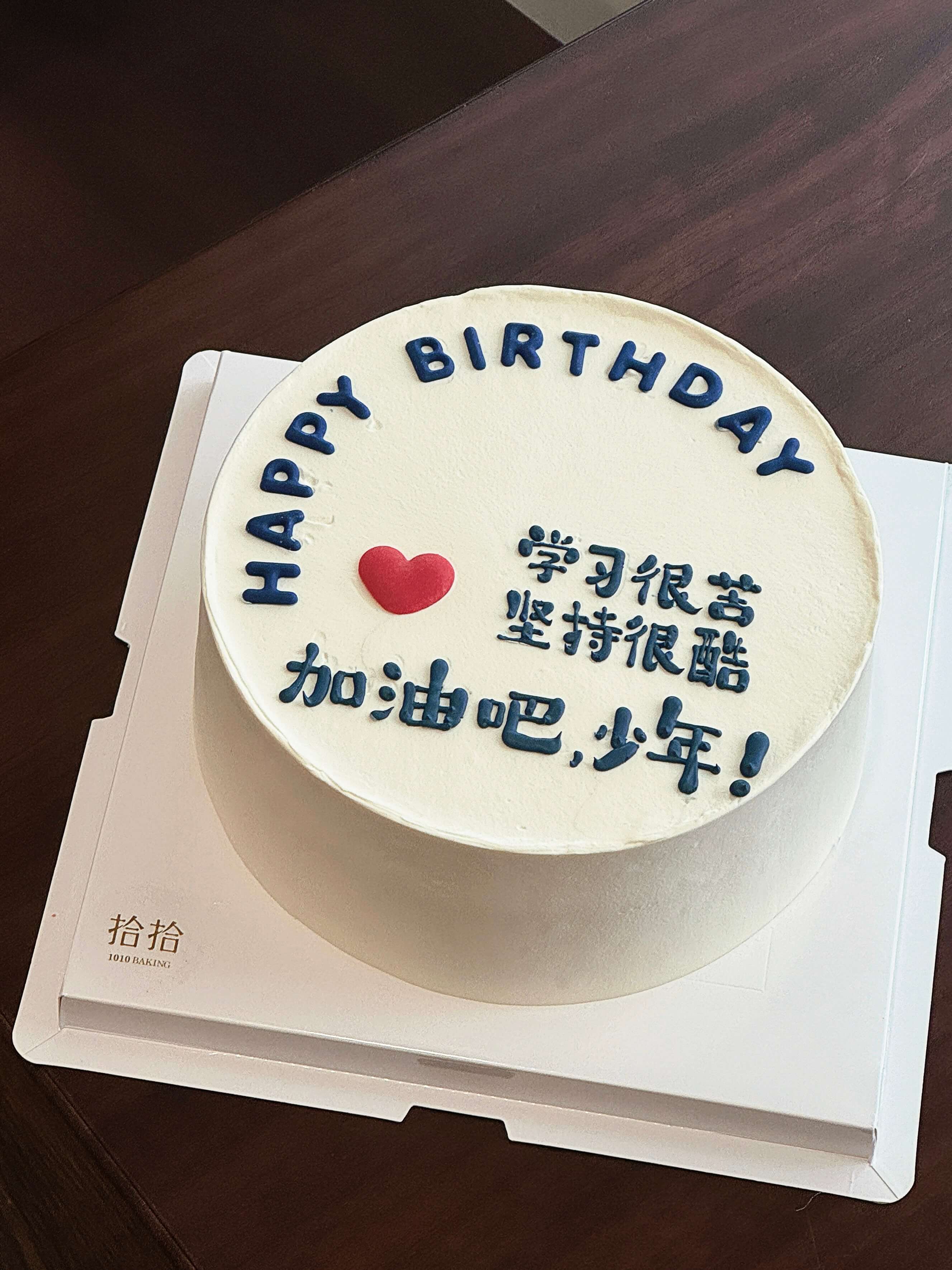 「学习很苦,坚持很酷,加油少年!」手绘文字·100%动物奶油(附图6寸·提前6小时预订)