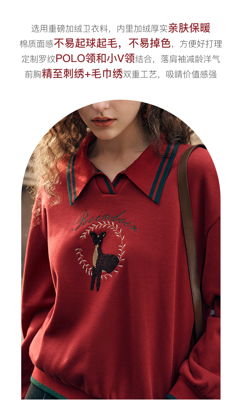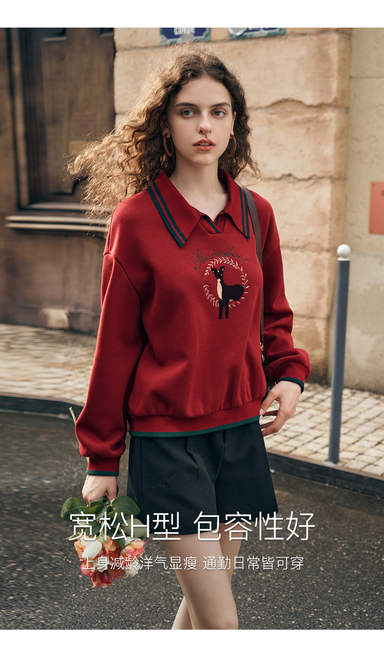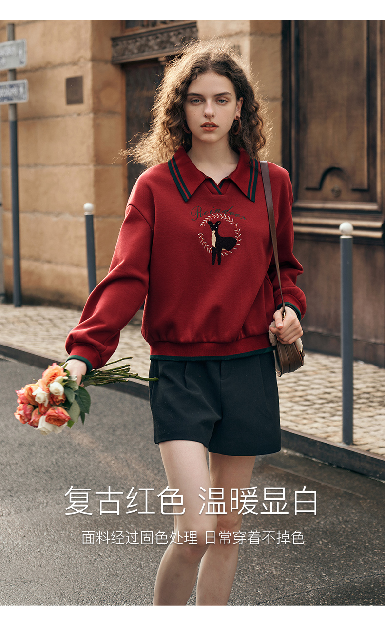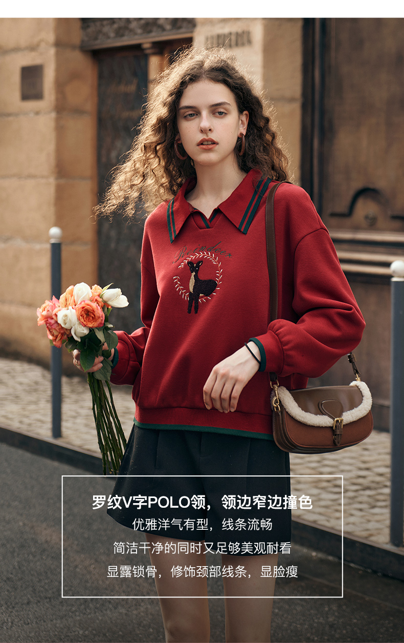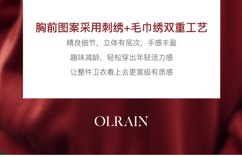 OLrain欧芮儿法式红色卫衣女秋季2023年新款复古设计感套头上衣