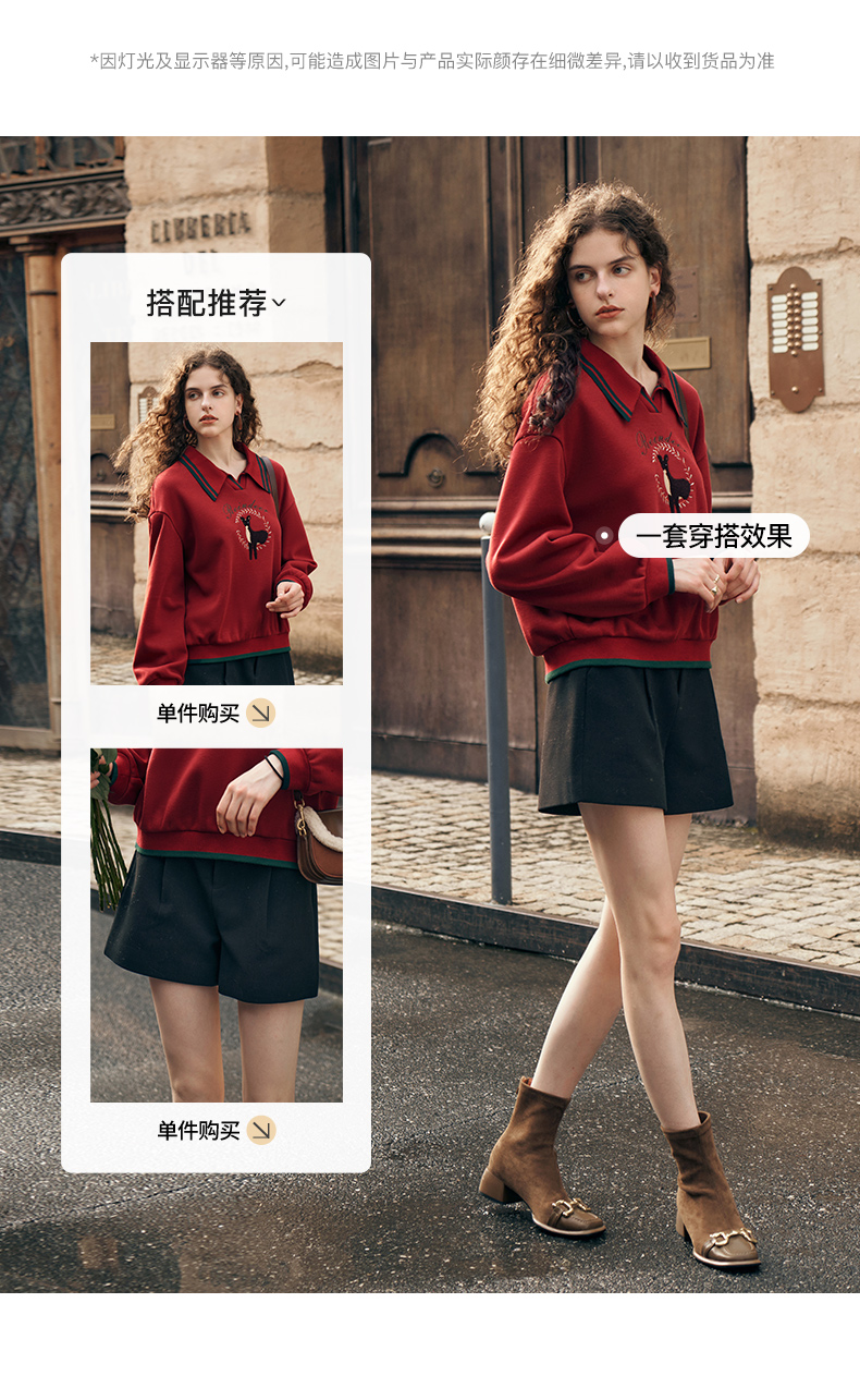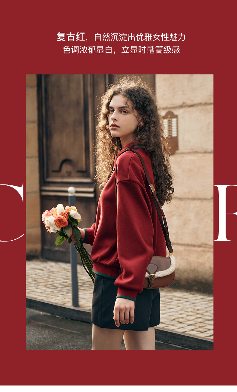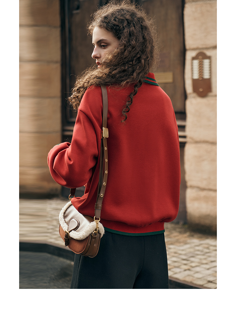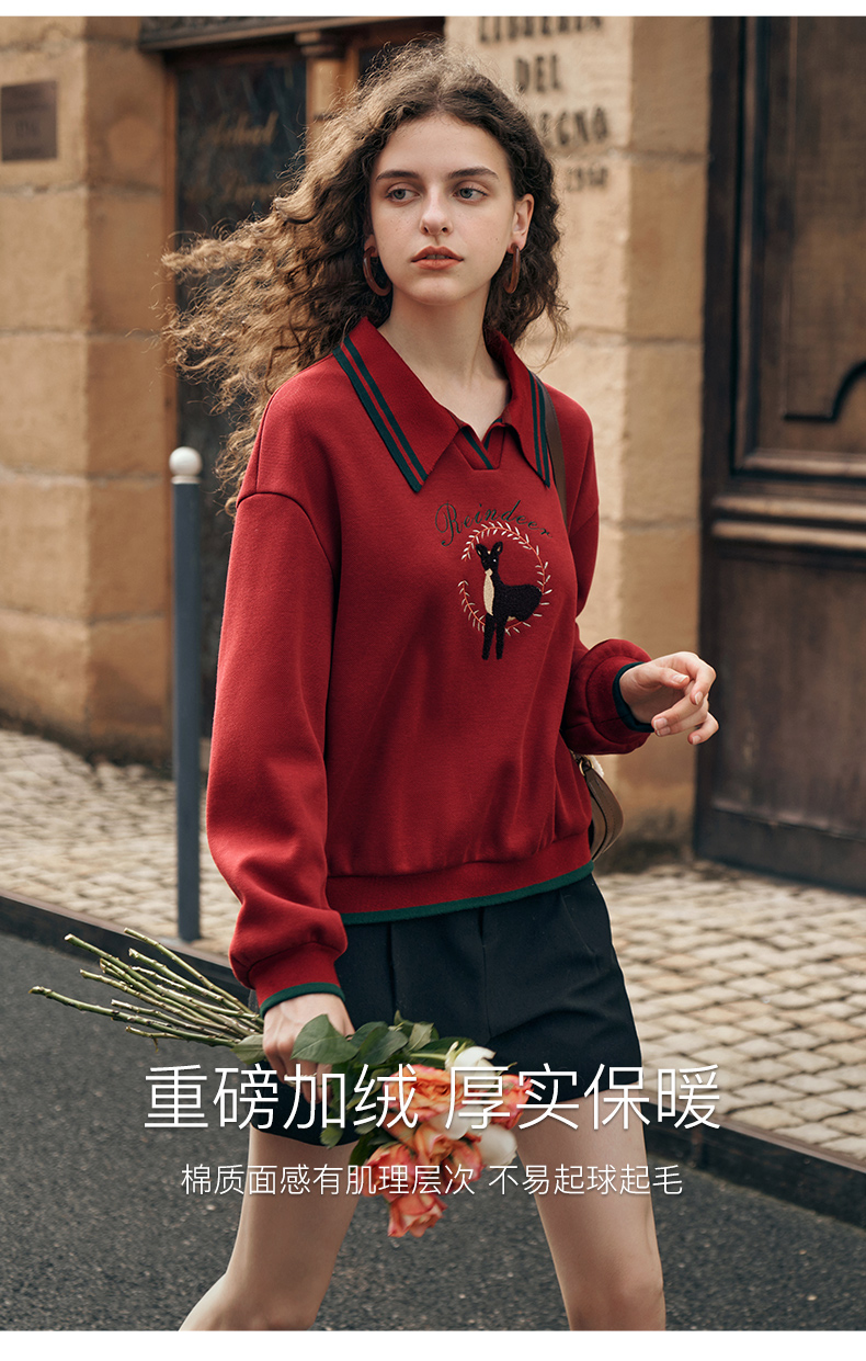 OLrain欧芮儿法式红色卫衣女秋季2023年新款复古设计感套头上衣
