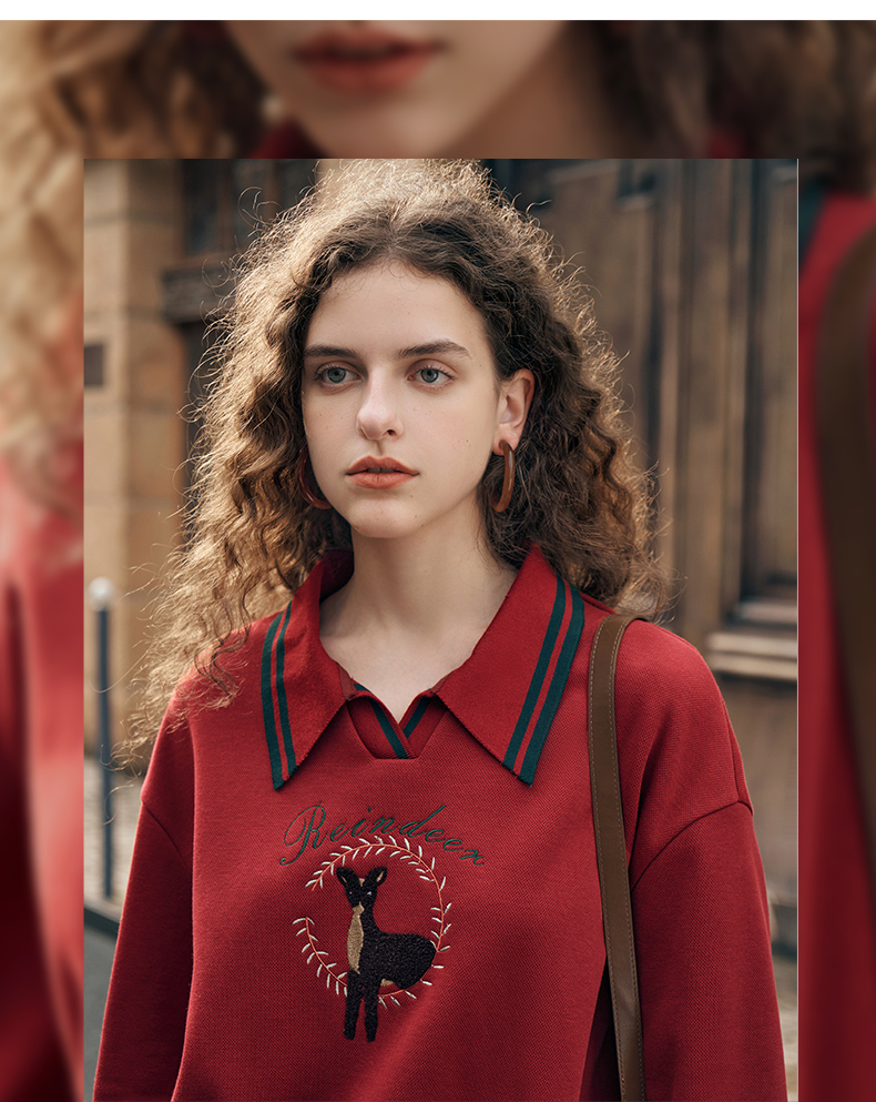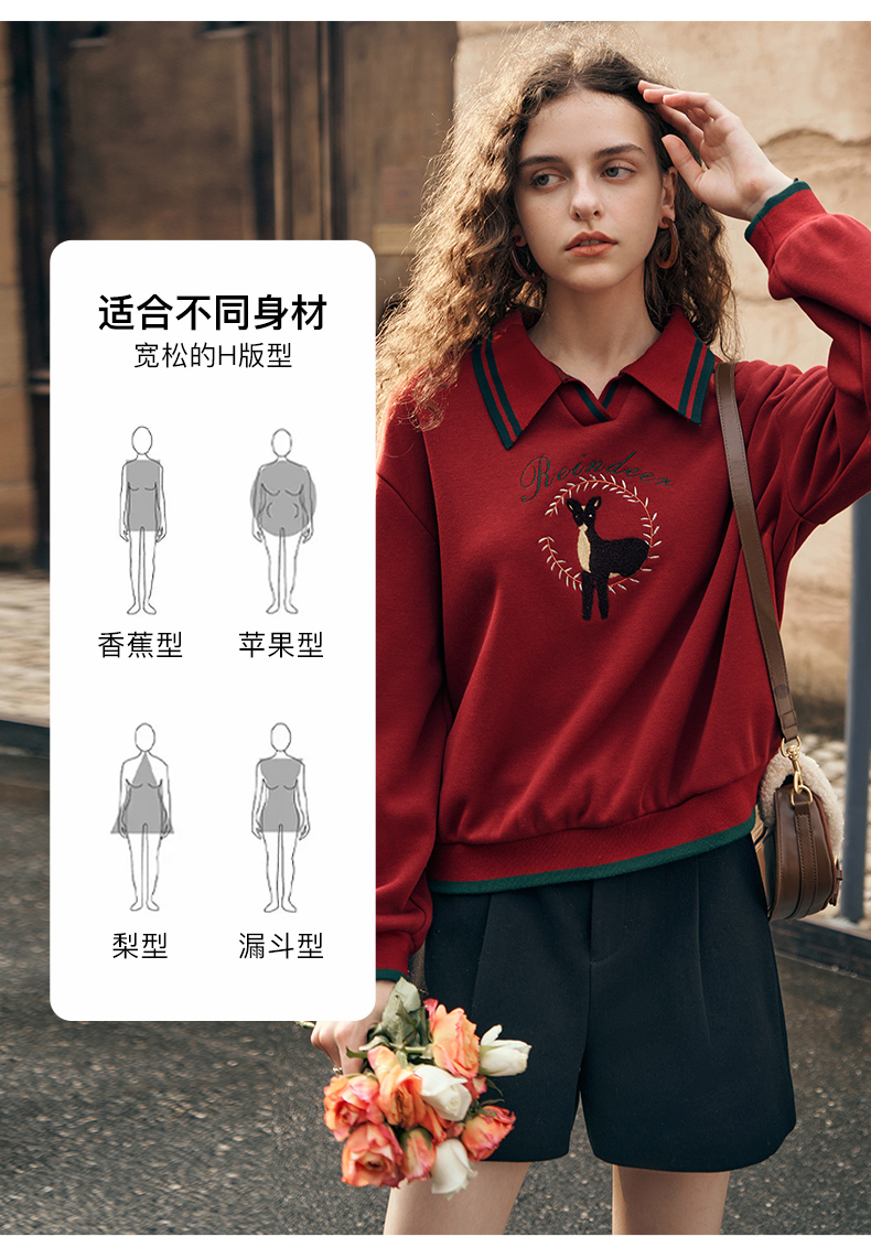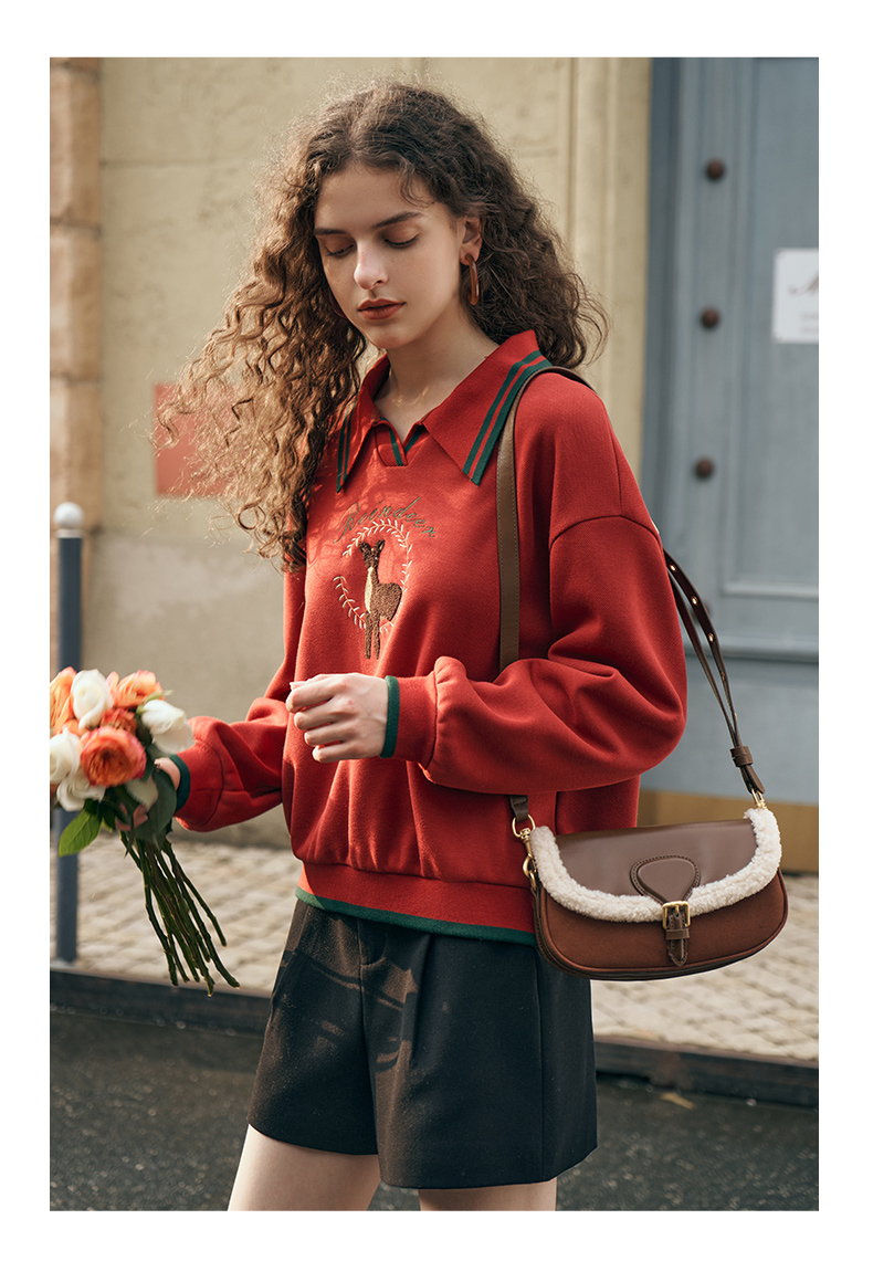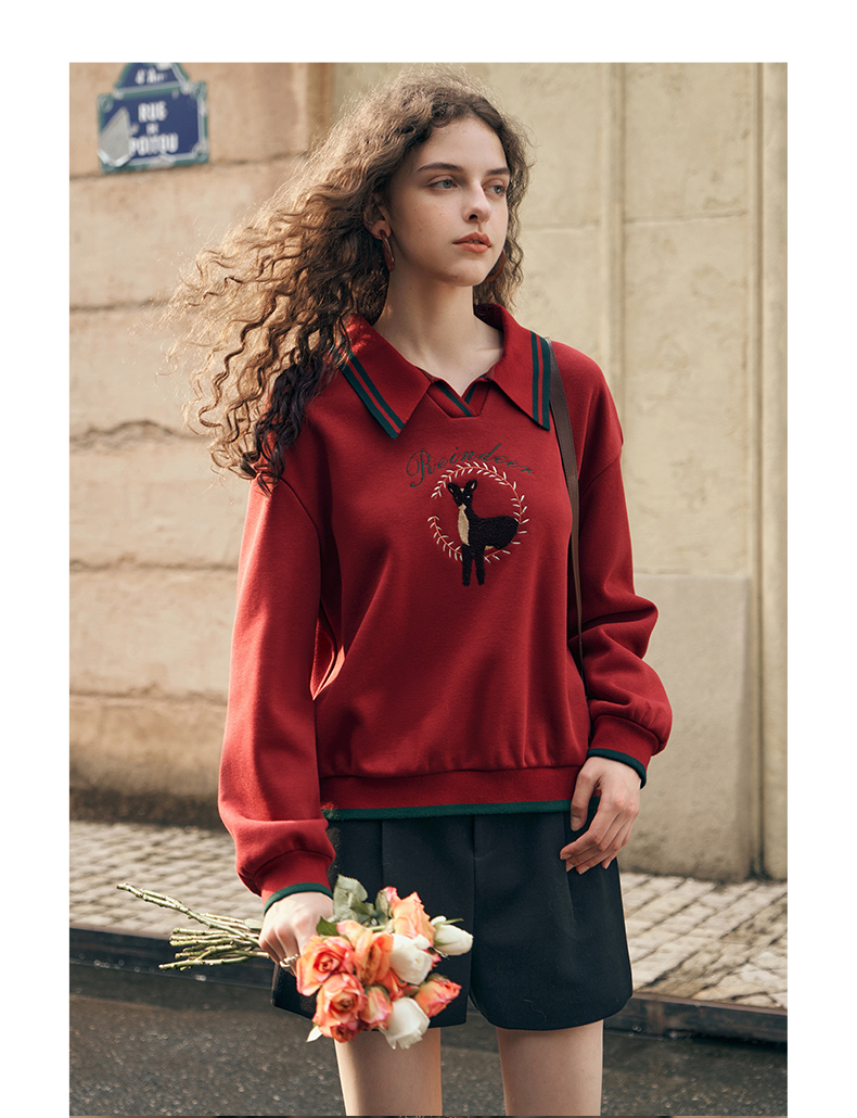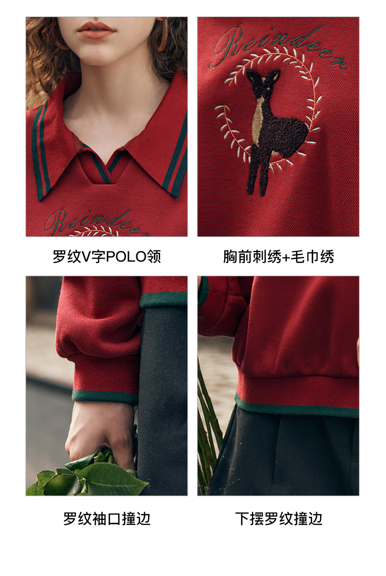 OLrain欧芮儿法式红色卫衣女秋季2023年新款复古设计感套头上衣