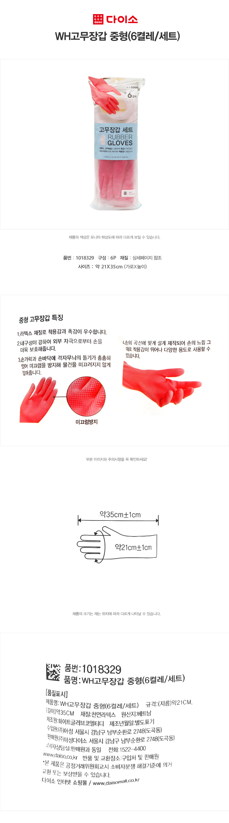 橡胶手套中号6双-1018329 大创洗衣服刷碗 Daiso Rubber glovesJPY带授权招加盟代理