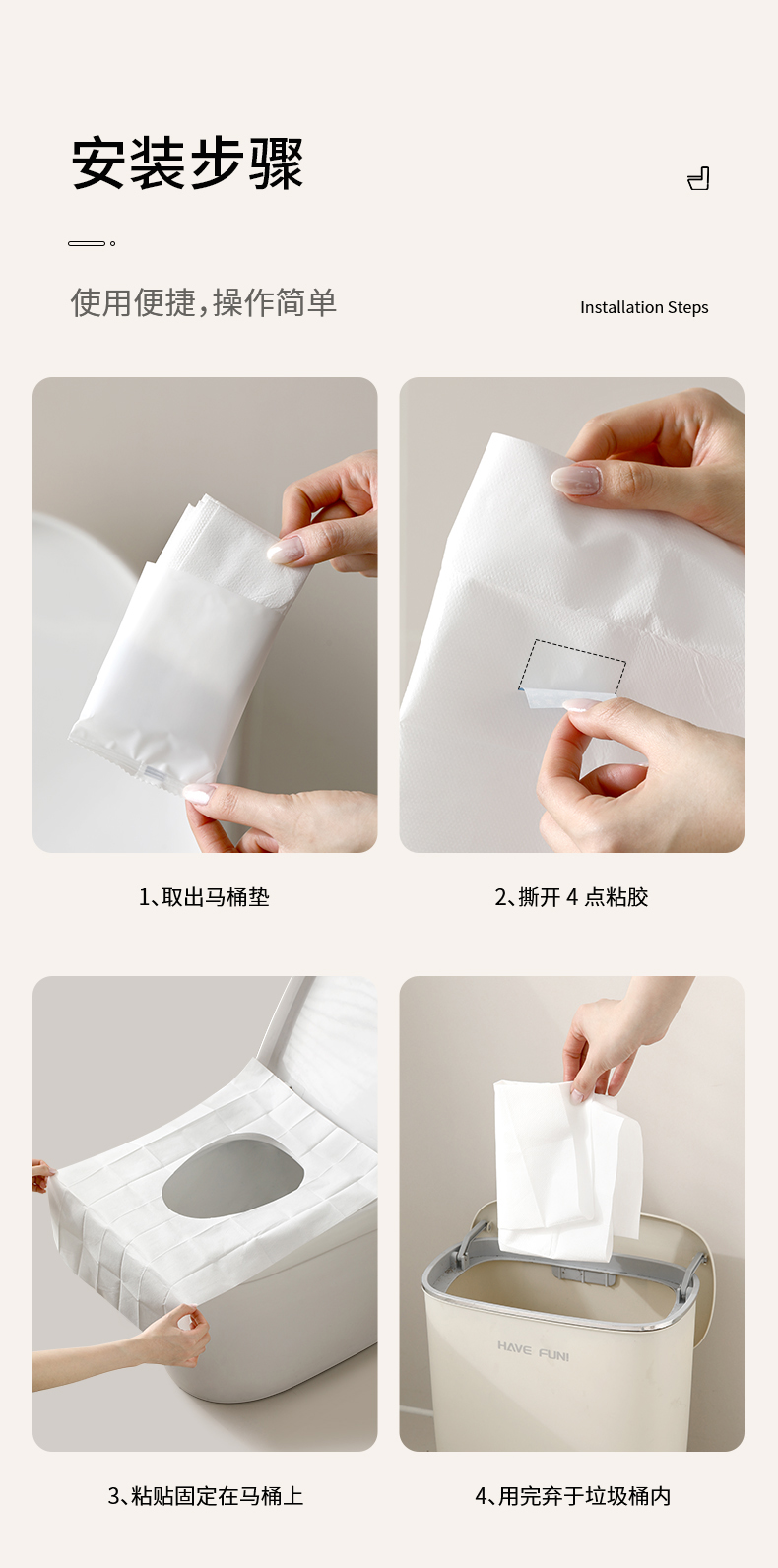 FaSoLa一次性马桶垫马桶套加厚加大旅行酒店隔脏防水坐便套 10片