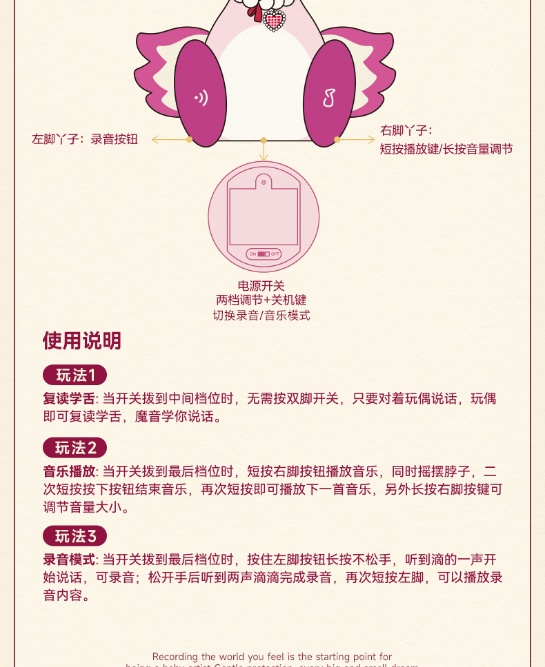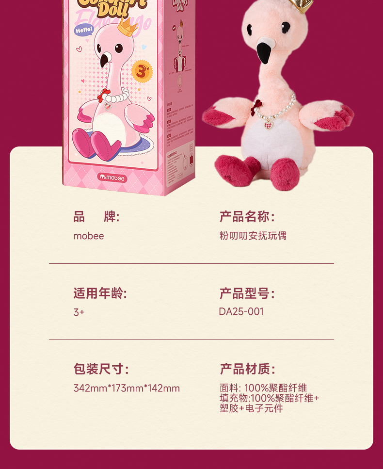【放首歌来跳舞吧 说话复读录音玩偶】mobee安抚玩偶婴幼儿毛绒玩具 翅膀可拍打 宝宝学舌说话复读录音 儿童周岁礼物