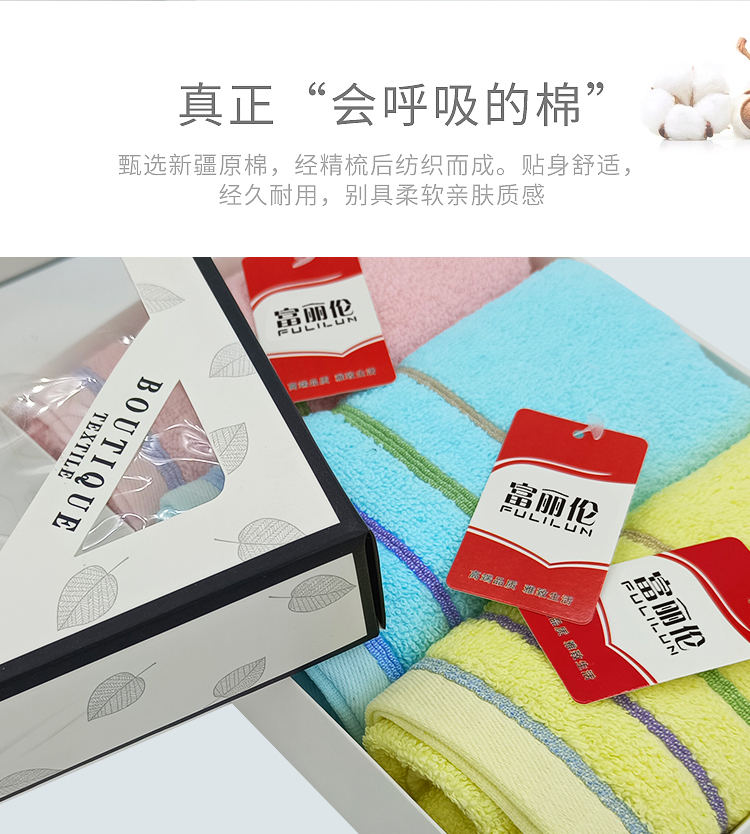 富丽伦 优质新疆棉毛巾三条装 颜色随机
