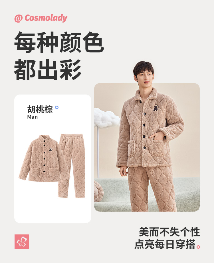 都市丽人秋冬睡衣长袖长裤长毛绒夹棉男士家居服4HT005