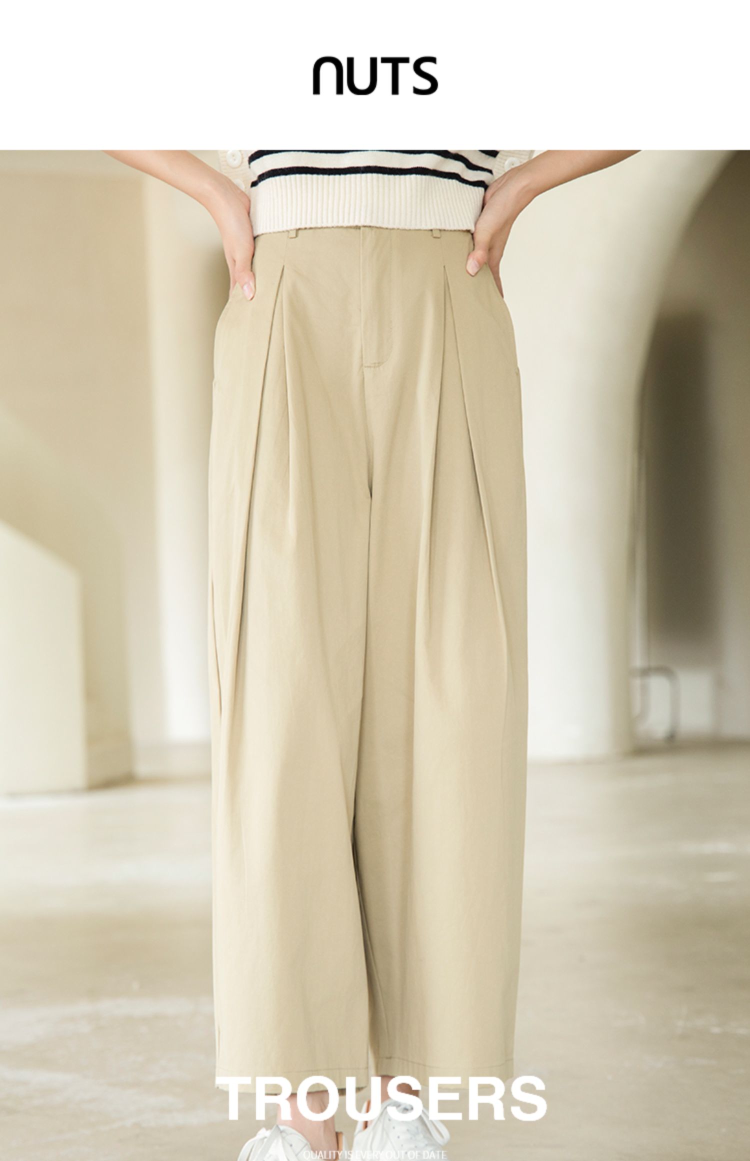 NUTS2023秋季新款时尚休息百搭宽松纯棉阔腿裤休闲裤女4380708A1