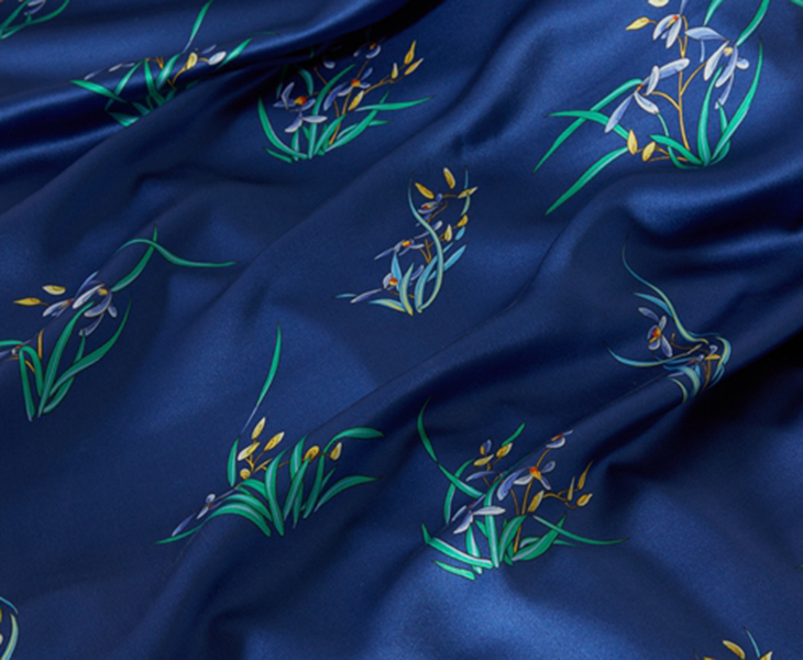 图案设计灵感出自故宫藏品清·桃红色缎绣丛兰飞蝶纹氅衣。"幽兰生前庭,含薰待清风",兰花一直被视为君子的象征,叶态卓越多姿,花朵幽香高洁,脱俗的气质引得历代文人墨客为之倾醉,同时广泛应用于氅衣服饰、瓷器以及装饰物件之中。 兰的美好,正是让人在这花叶之间寻找自我,发现心之所向。头枕兰香,花魂绽放,清新幽远,是今人与古人对贤德,是对生活之美的共同追求。