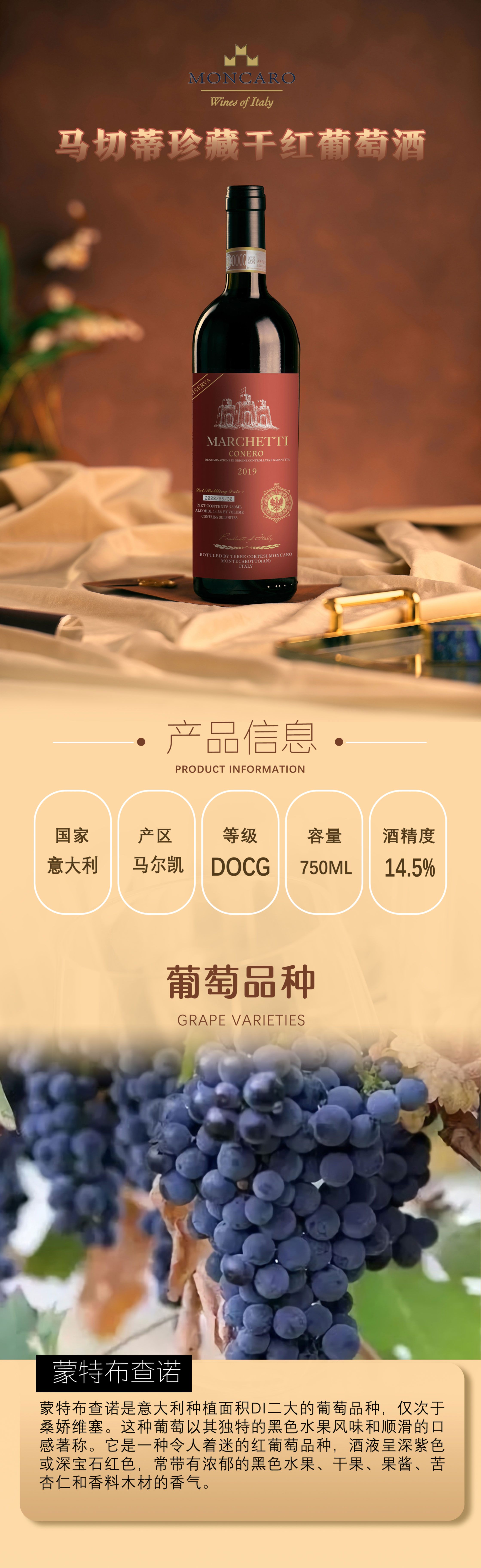 【买一送一】唯意一号 马切蒂珍藏干红葡萄酒 14.5度 750ml