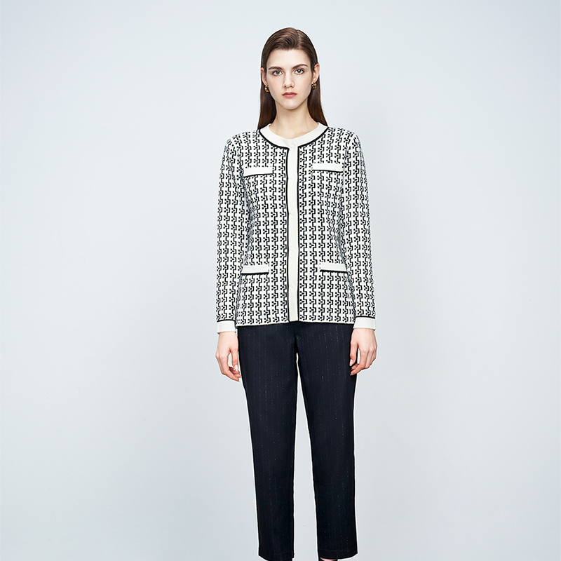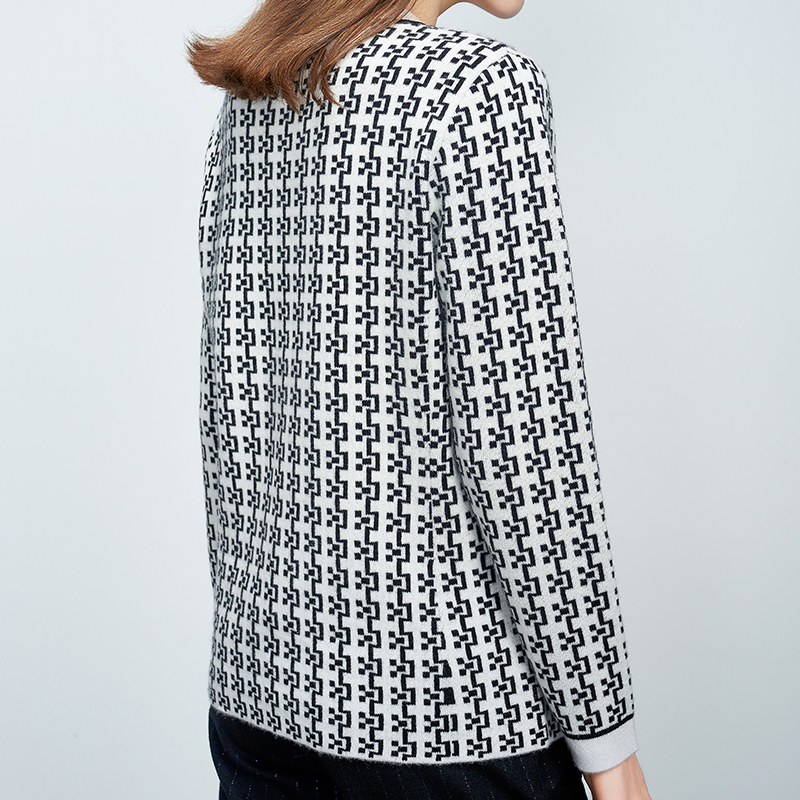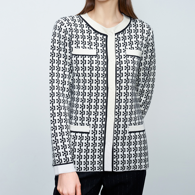 【小香风羊绒开衫】羊绒世家22年秋冬女士新品针织外套条纹撞色针织外套