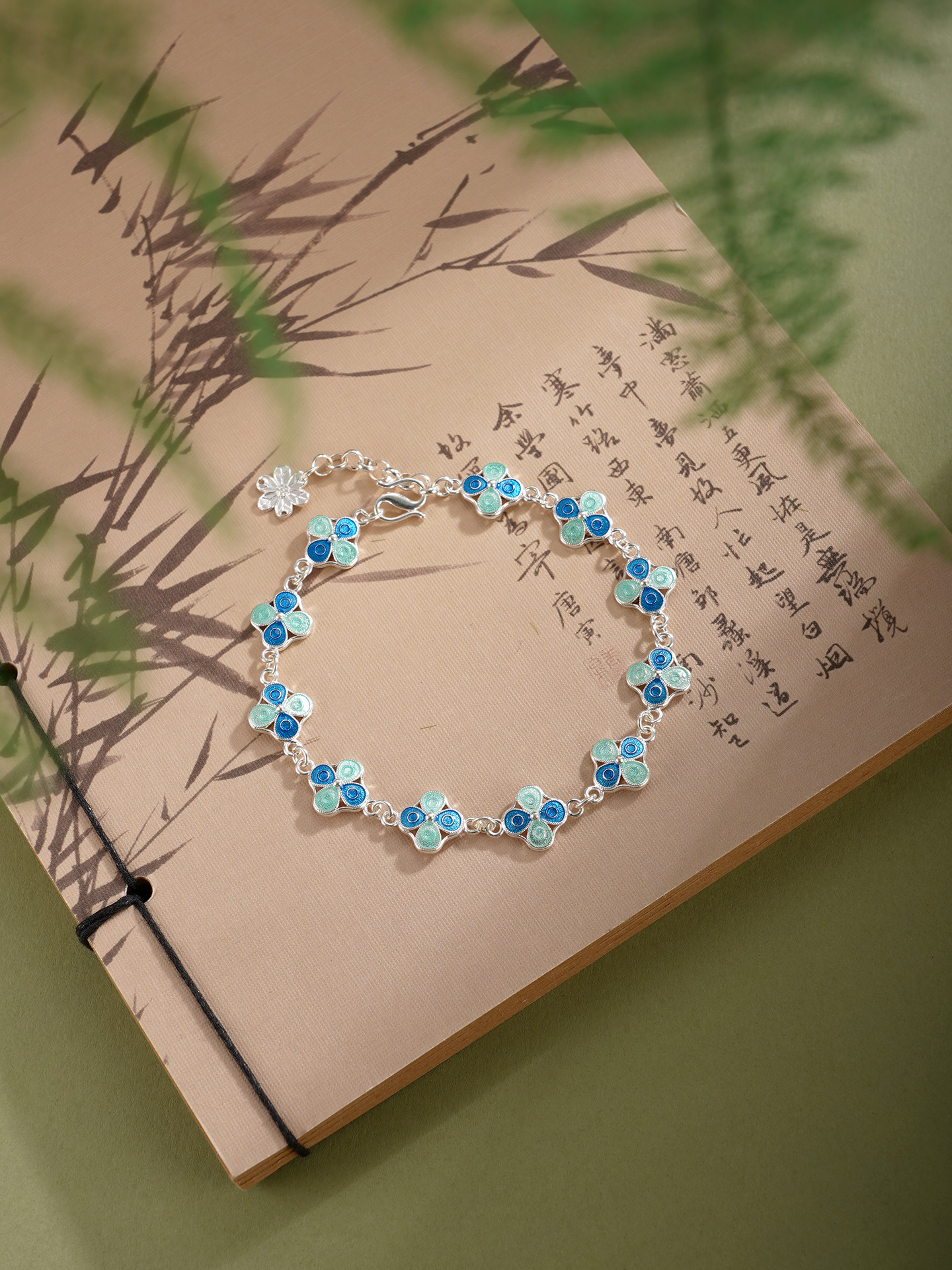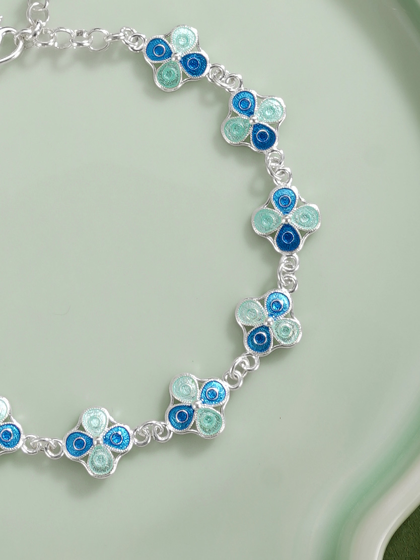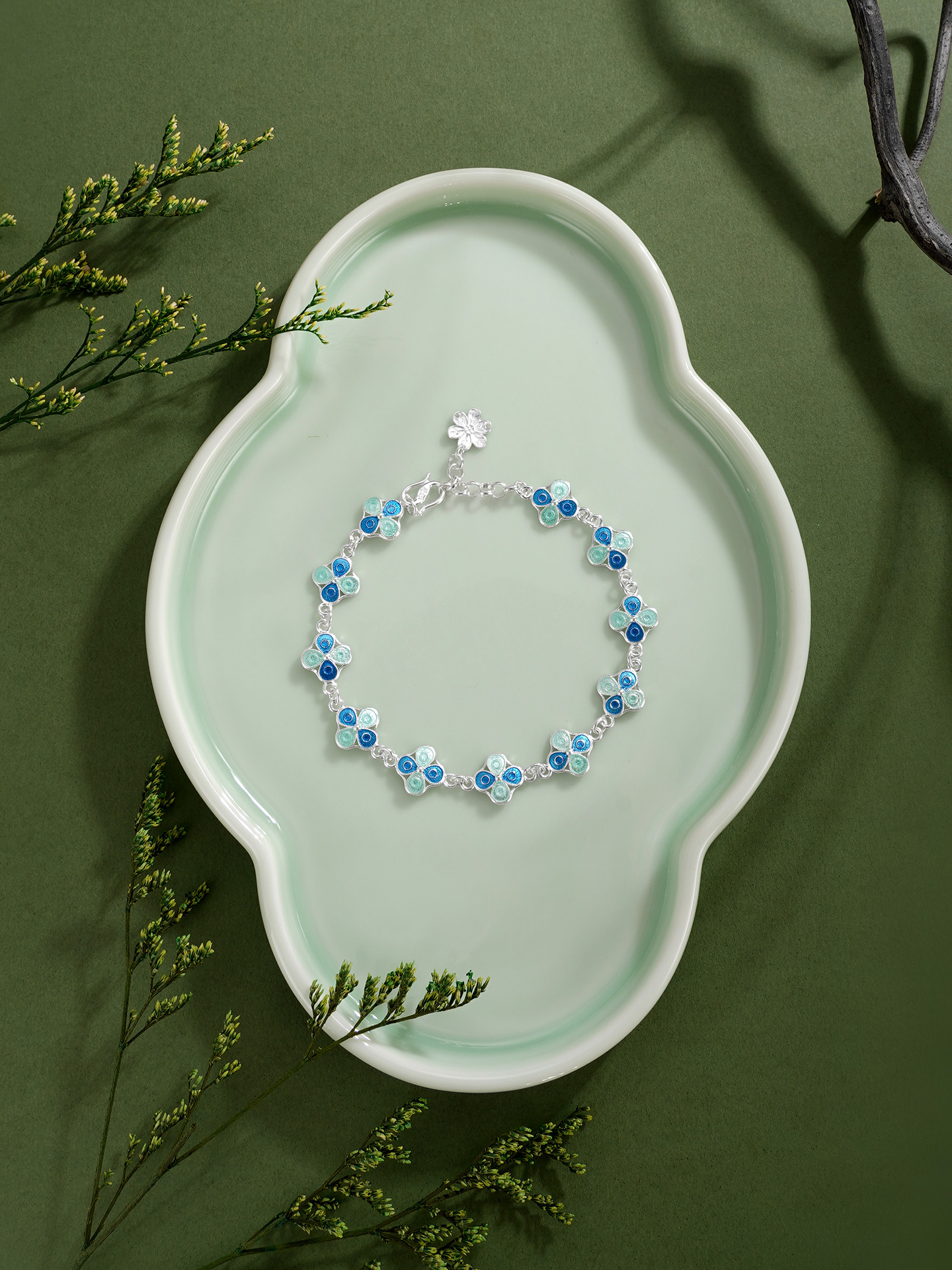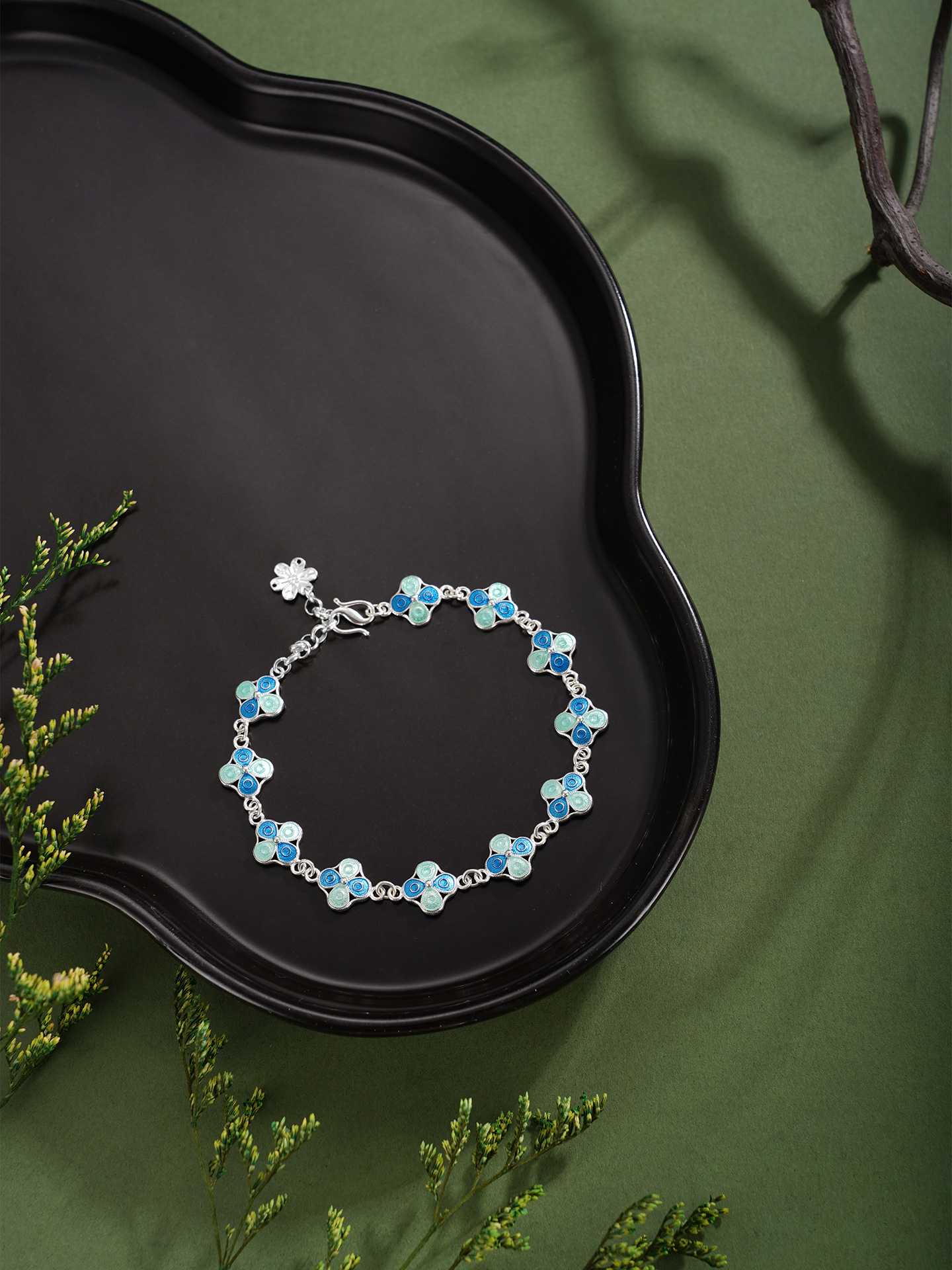 【寓意】:手链以四叶草为灵感设计,叶片巧妙渲染清新蓝调,寓意美丽与气质伴随,幸运与希望常在。