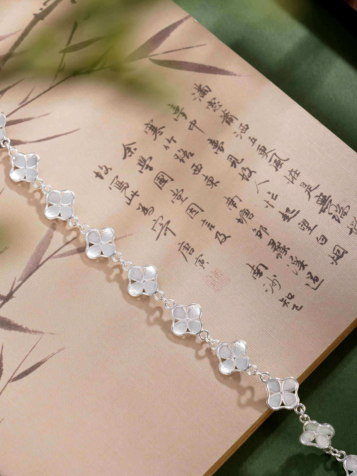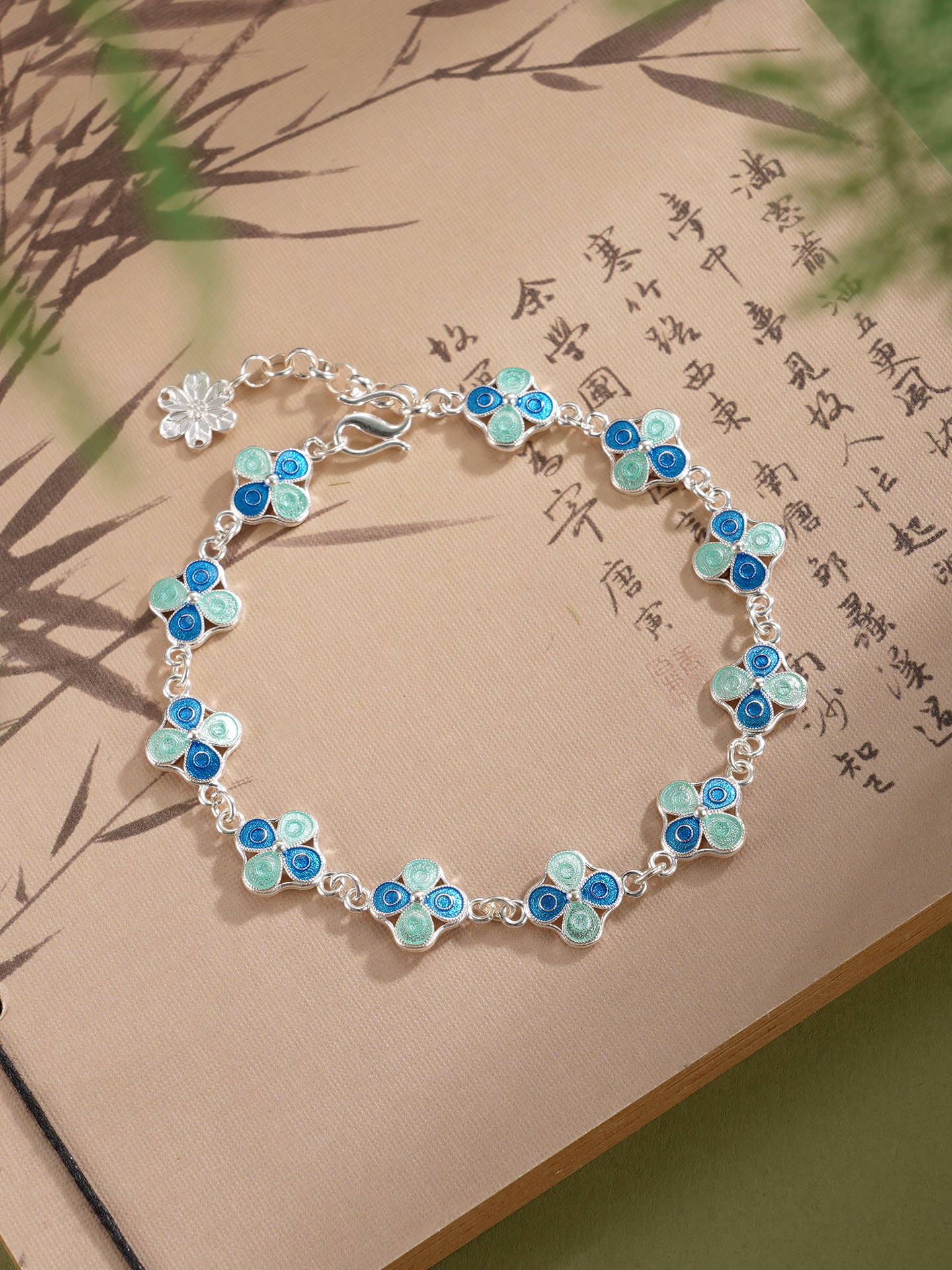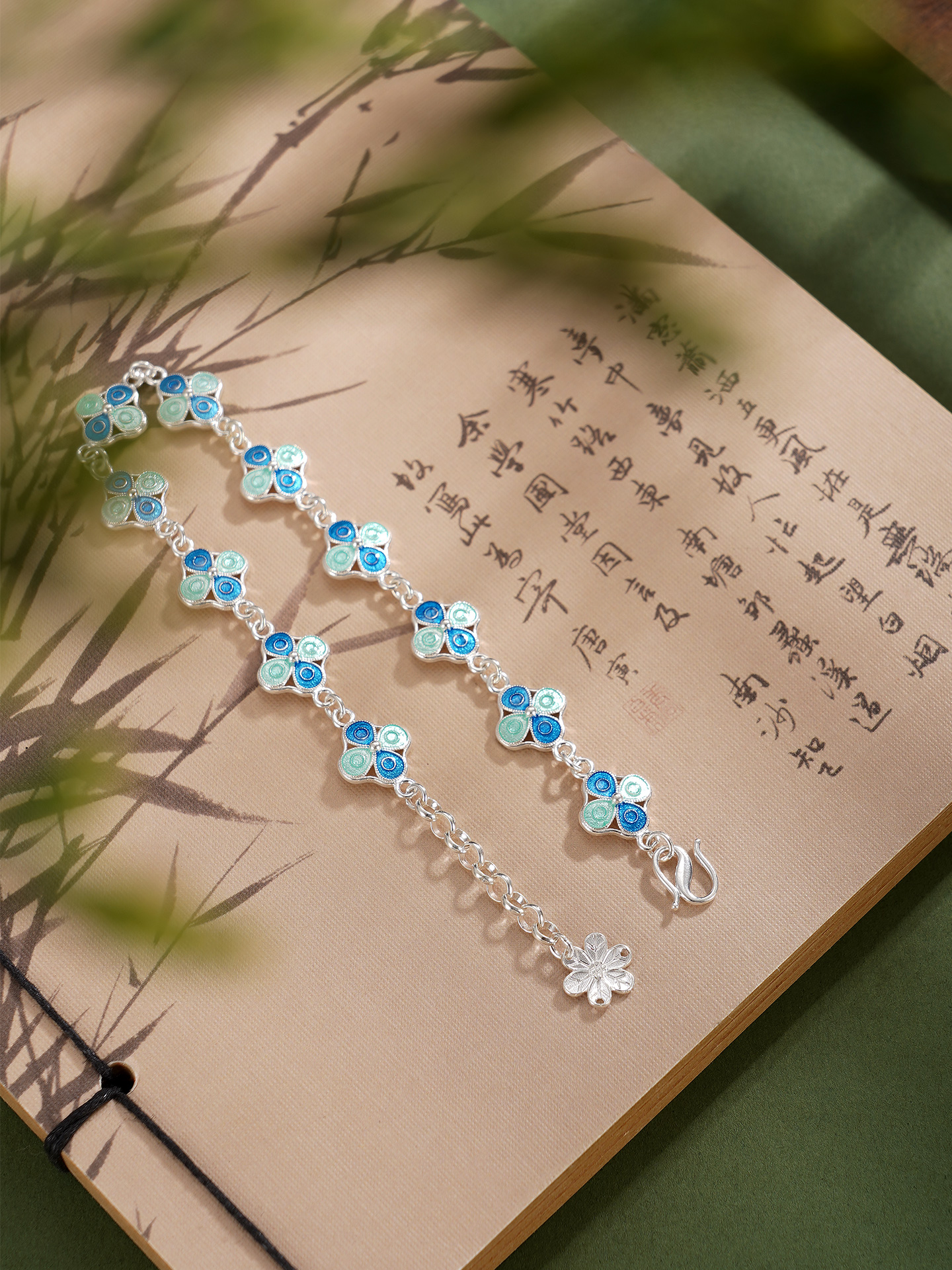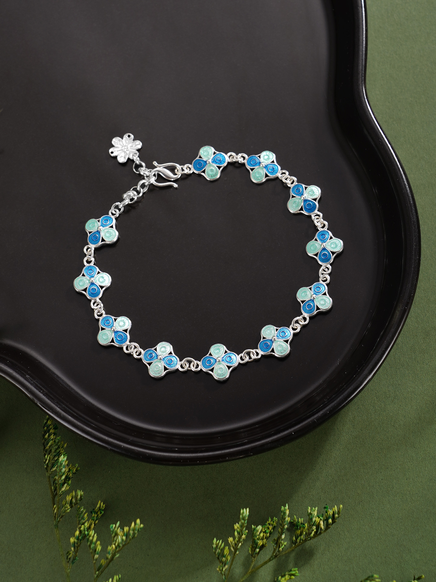 【寓意】:手链以四叶草为灵感设计,叶片巧妙渲染清新蓝调,寓意美丽与气质伴随,幸运与希望常在。