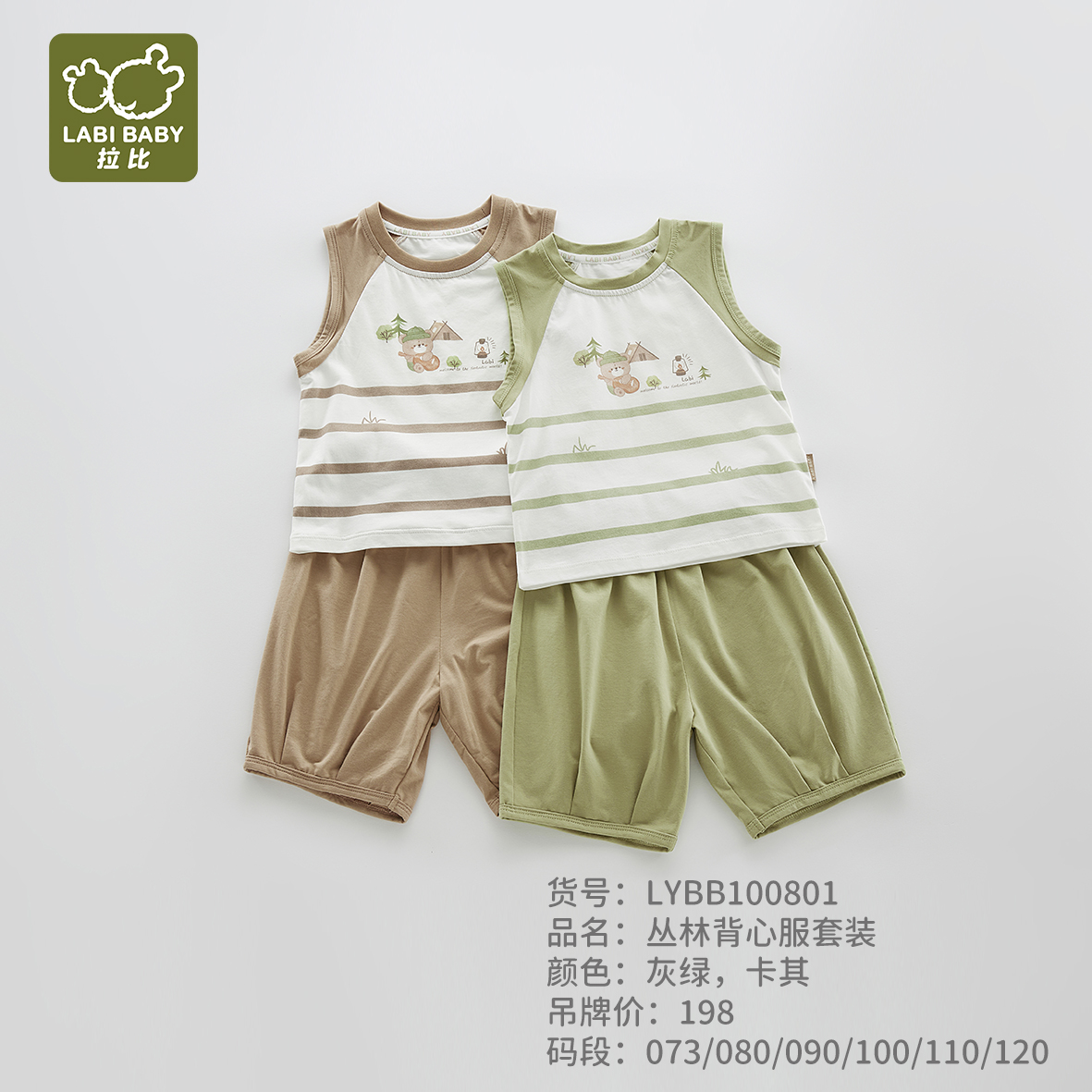 拉比-童衣类(春)I5丛林背心服套装灰绿080