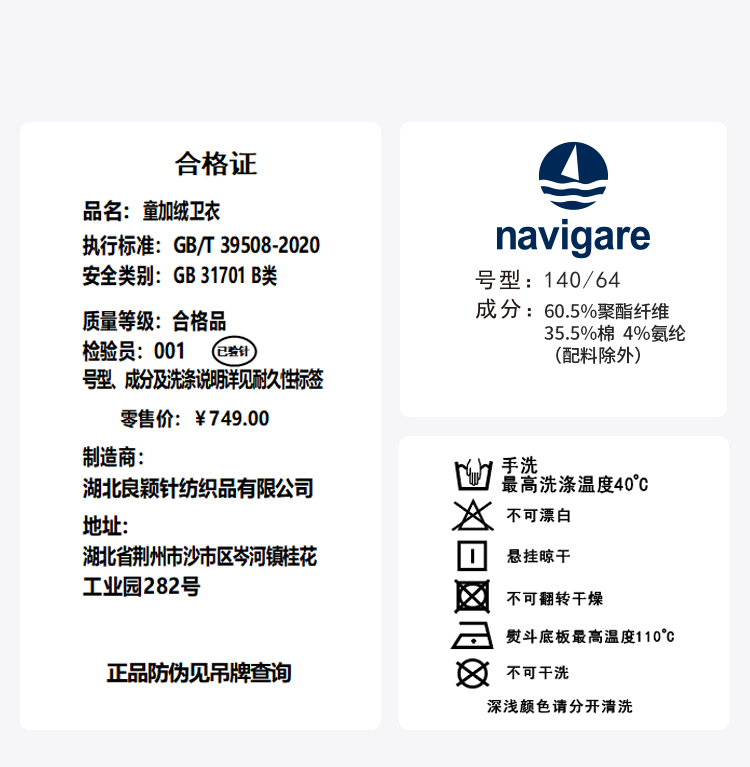【清仓捡漏】【纳维凯尔】【120-165】Navigare小帆船男童冬款保暖加绒裤