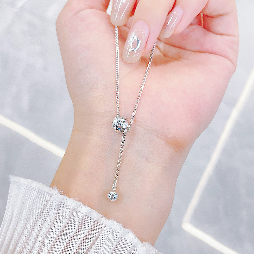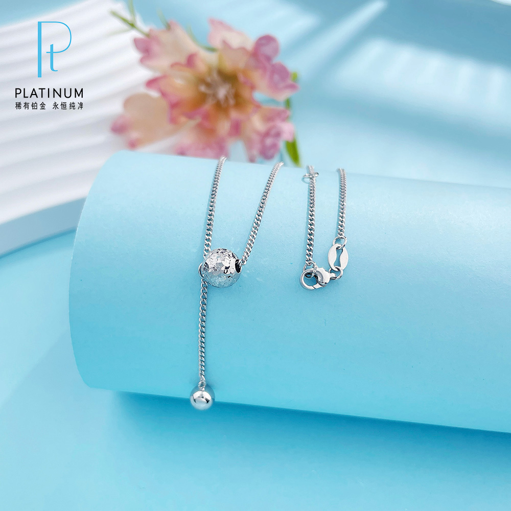 【限时8.8折】【线上铂金馆】PT950 #碎碎冰 【国际铂金协会 精品】铂金空心调节有球必应碎碎冰圆珠流苏套链(BTL00378)预售产品下单后不退款不退货不换货不补差价)