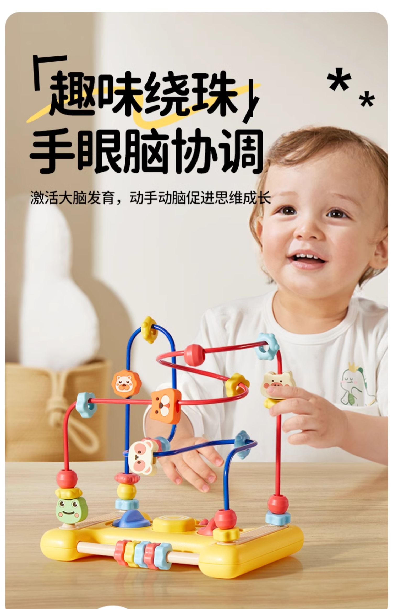 绕珠玩具婴儿童串珠蒙氏早教1到3岁宝宝益智积木可啃咬6个月以上
