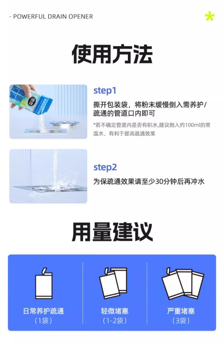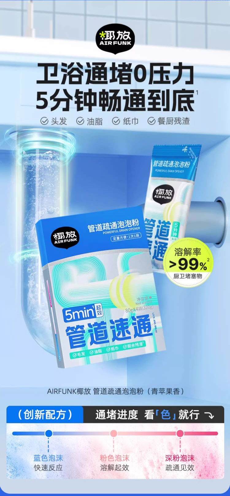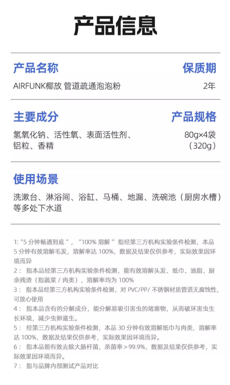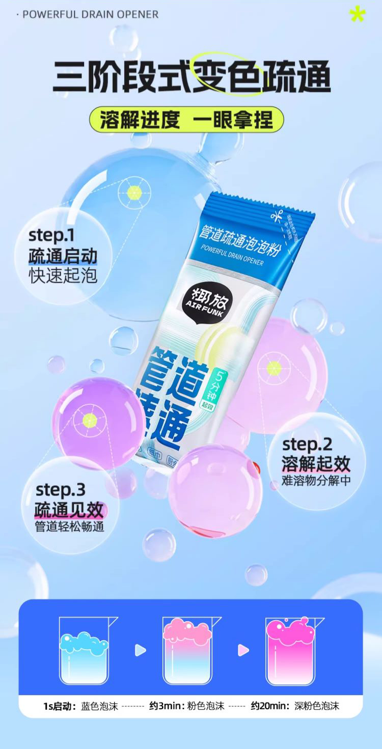 AIR FUNK椰放 管道疏通粉 颗粒状 畅通无阻 三管齐下 管道通棒