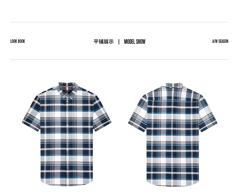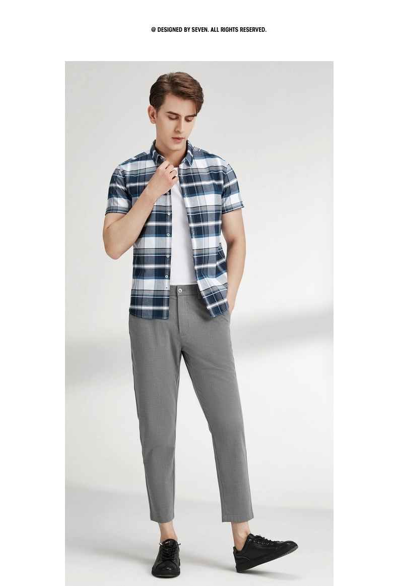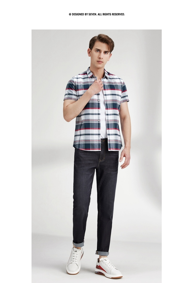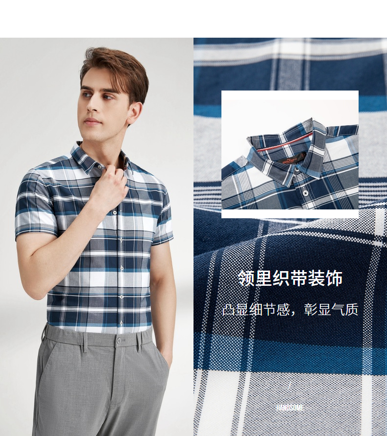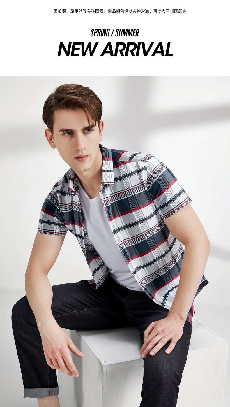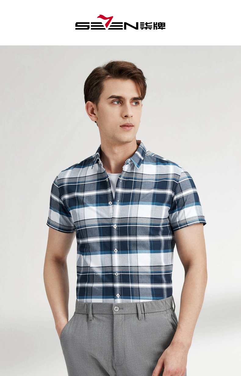 【特价】柒牌牛津纺短袖衬衫男士纯棉翻领潮流帅气休闲格子衬衣122A70990