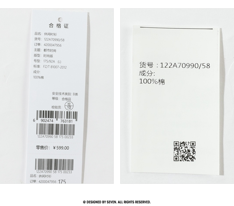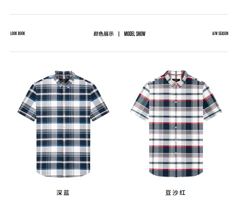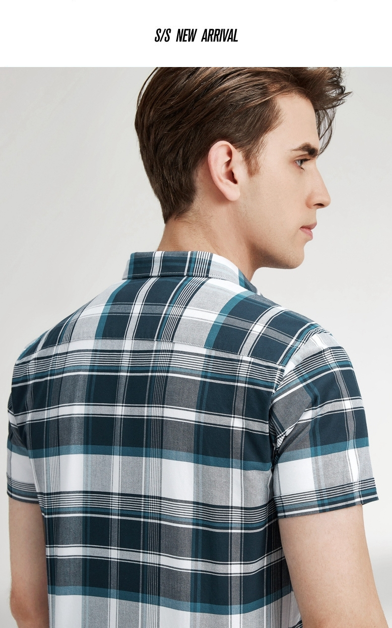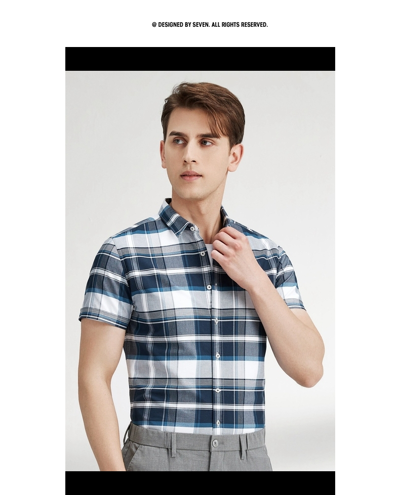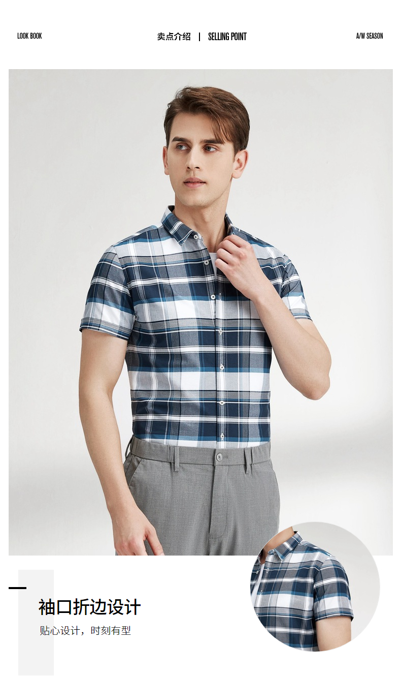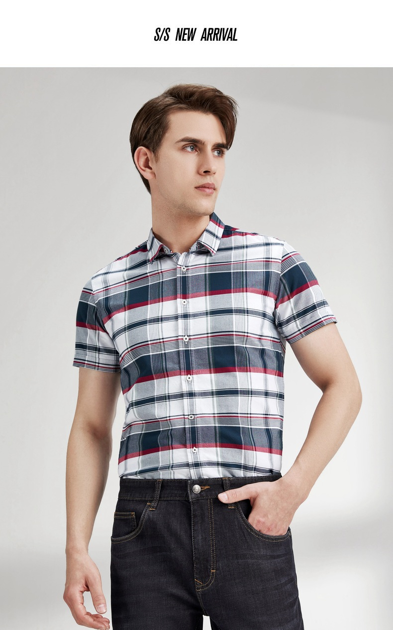 【特价】柒牌牛津纺短袖衬衫男士纯棉翻领潮流帅气休闲格子衬衣122A70990