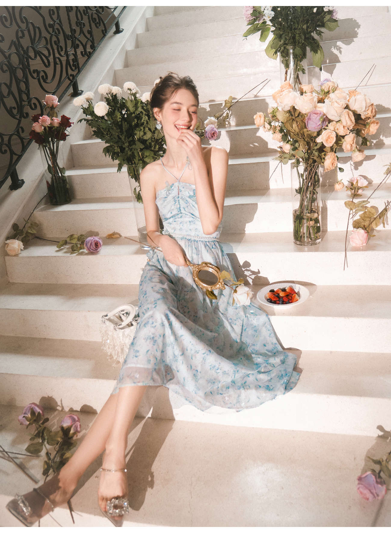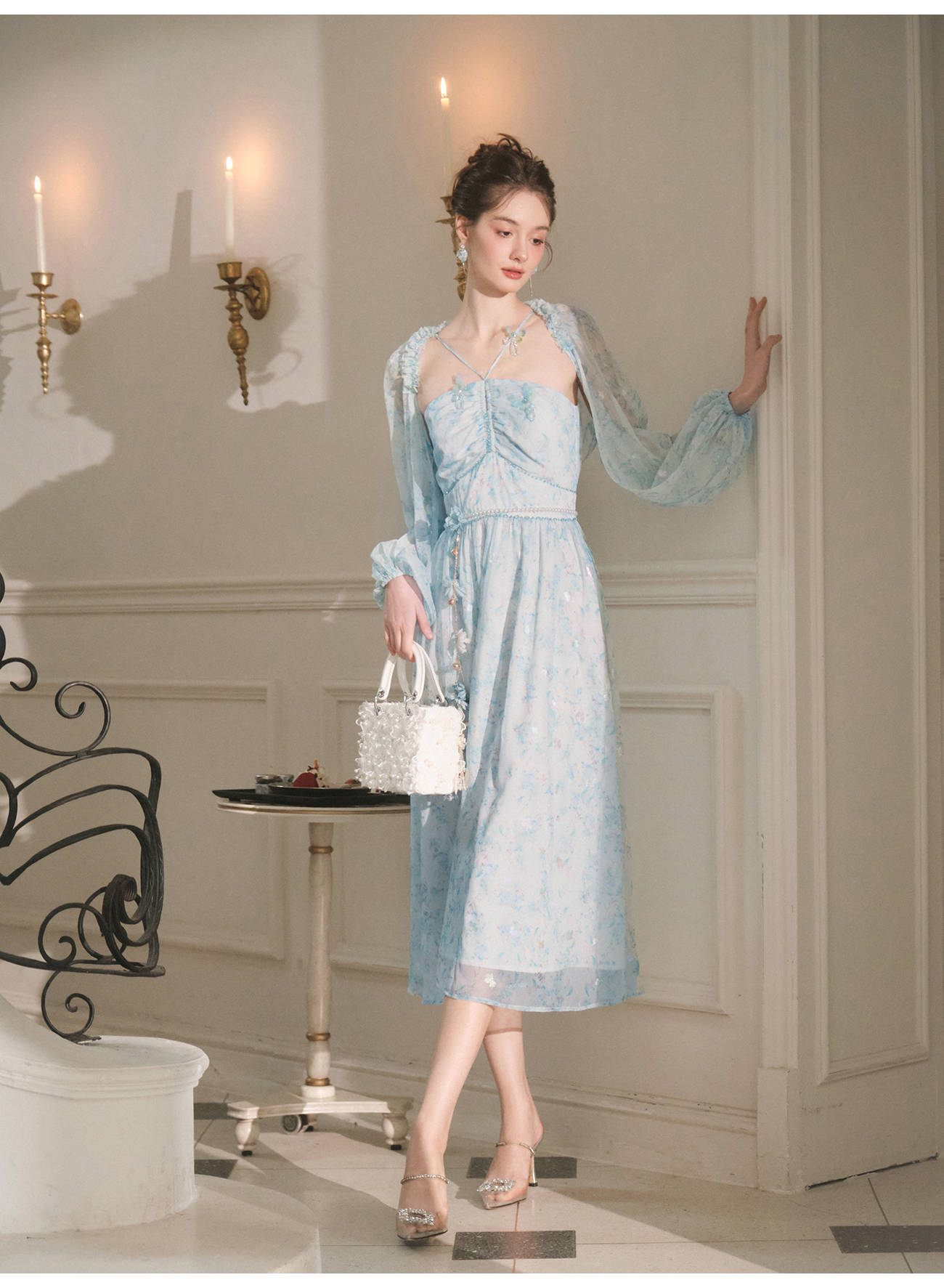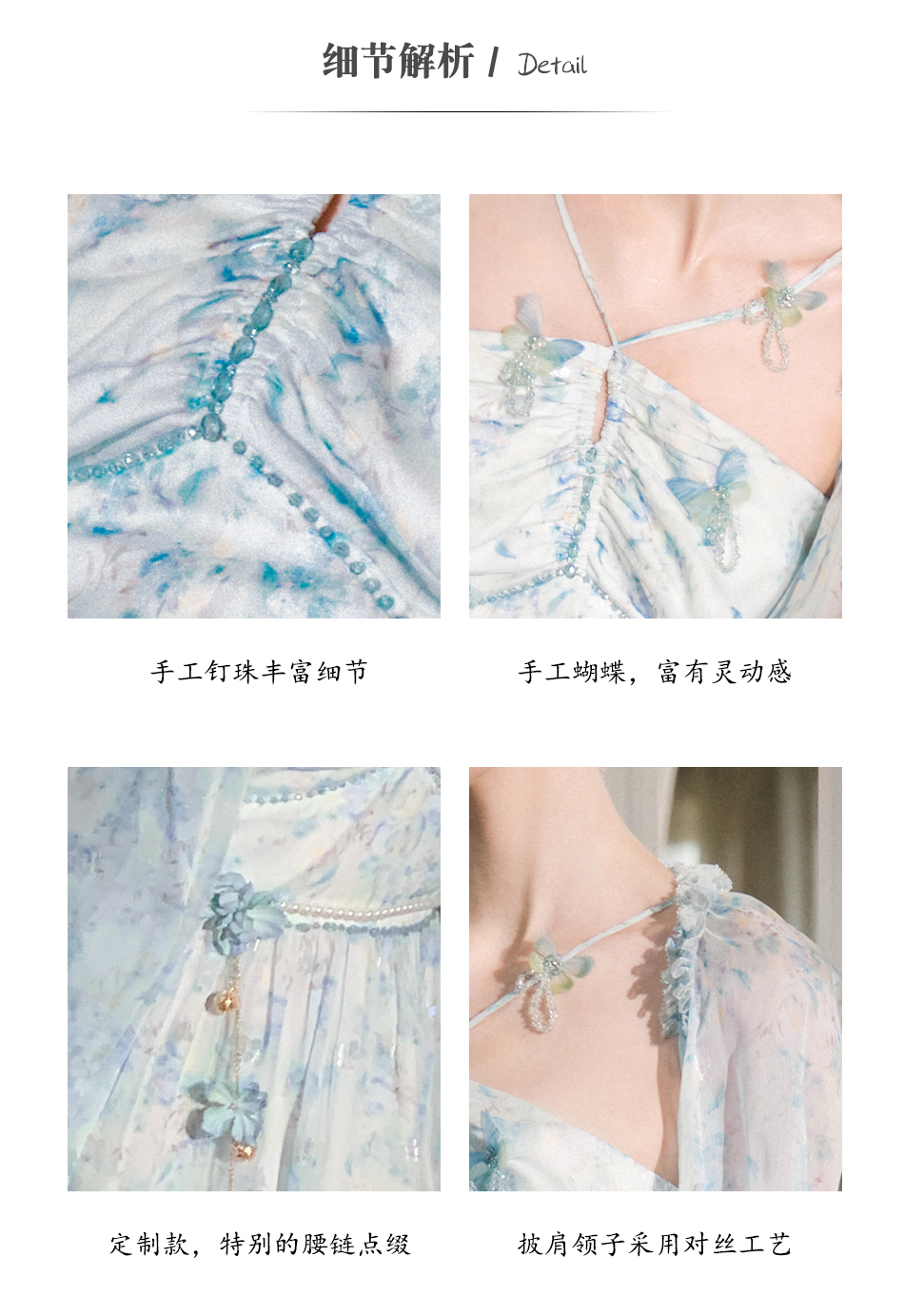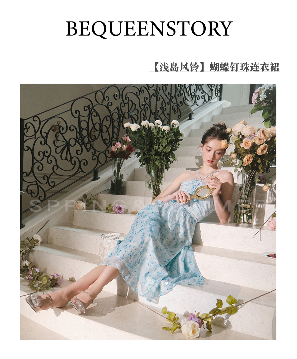 【孤品样衣,不退不换】【港岛风铃】温婉甜美仙气蝴蝶钉珠连衣裙女2023春季新款