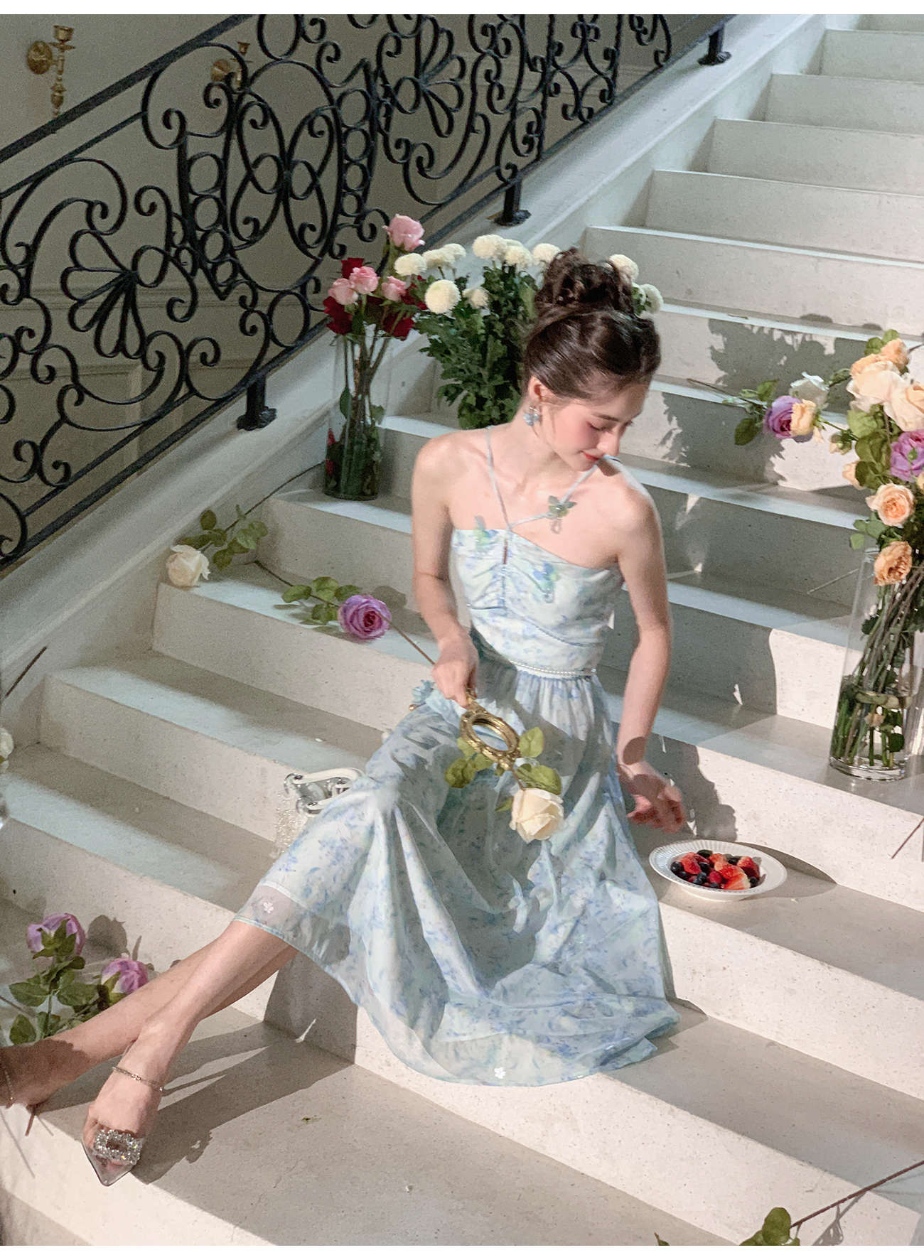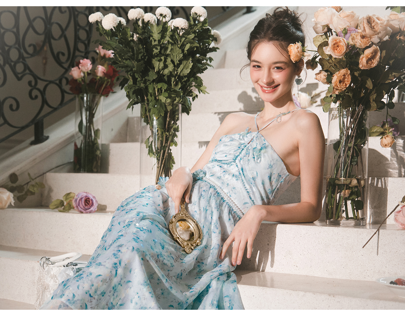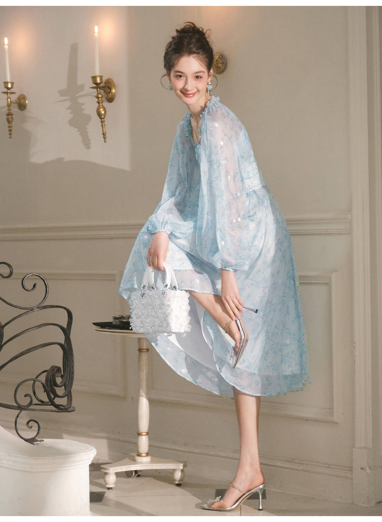 【孤品样衣,不退不换】【港岛风铃】温婉甜美仙气蝴蝶钉珠连衣裙女2023春季新款