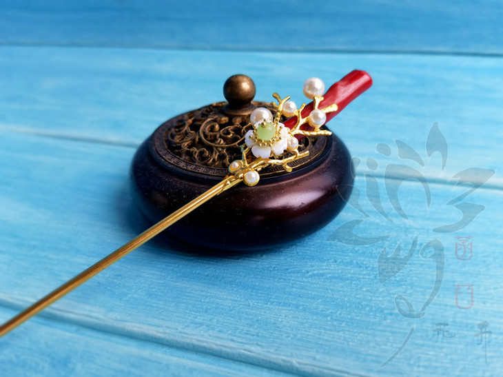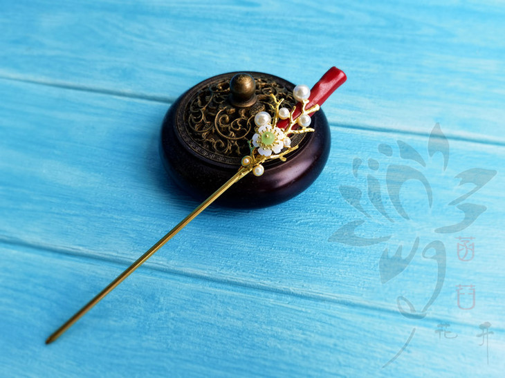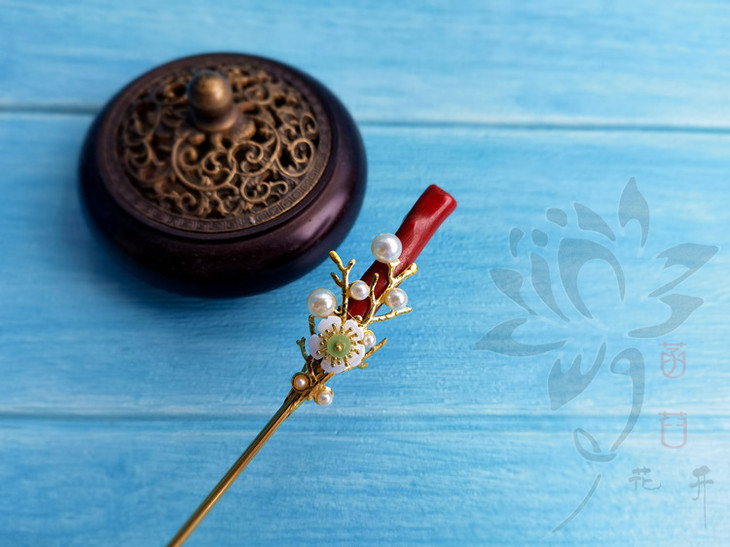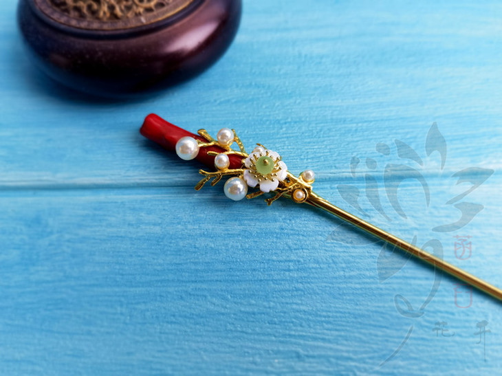 特别说明:此发簪使用染色的天然白珊瑚枝, 每一个的形状长短都不同, 都会带有不同的瑕疵(洞眼&疤节&横纹等), 介意的亲务必慎拍!!