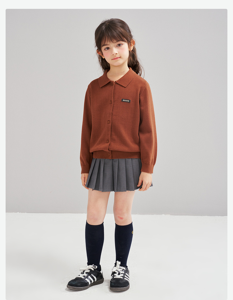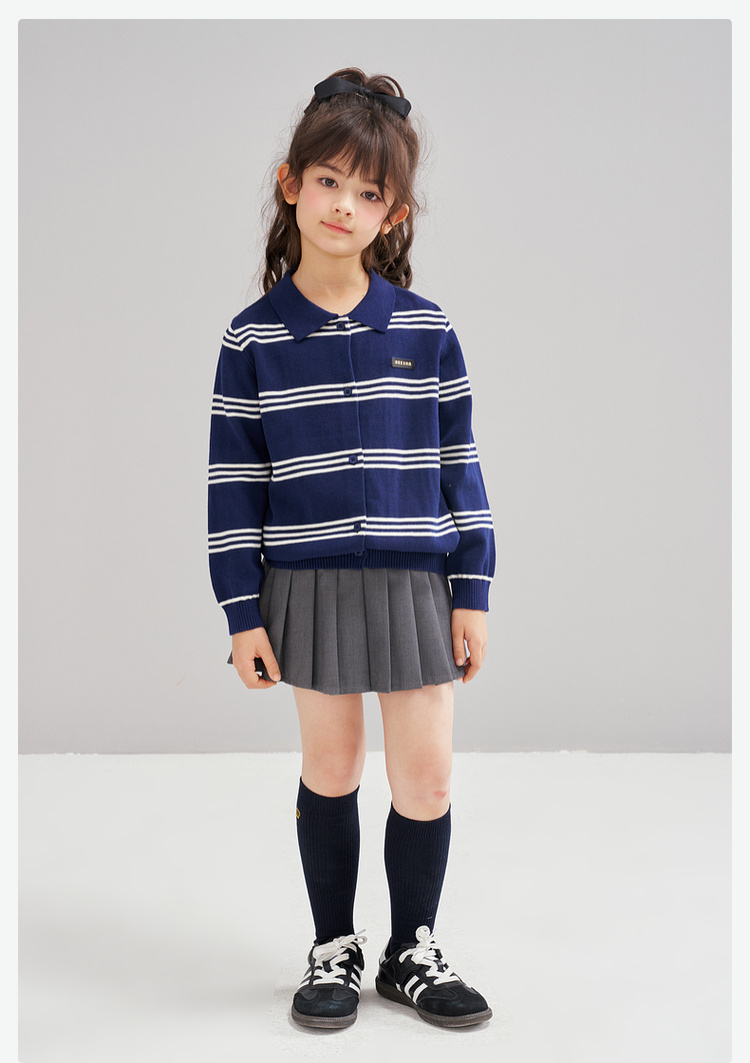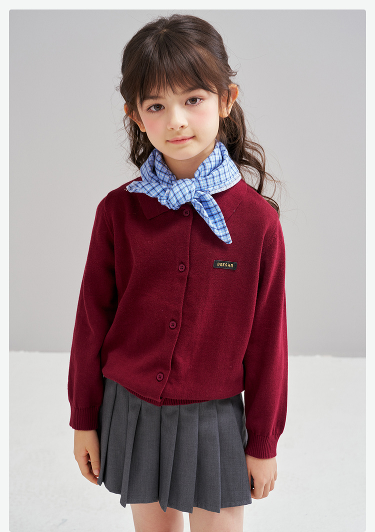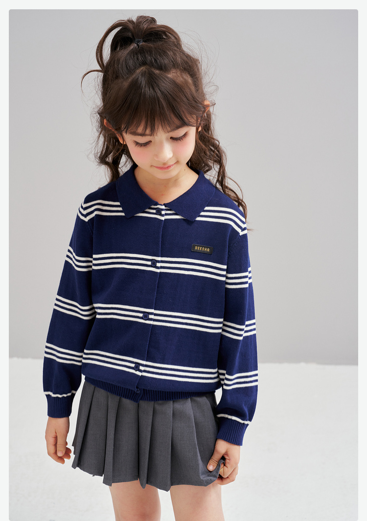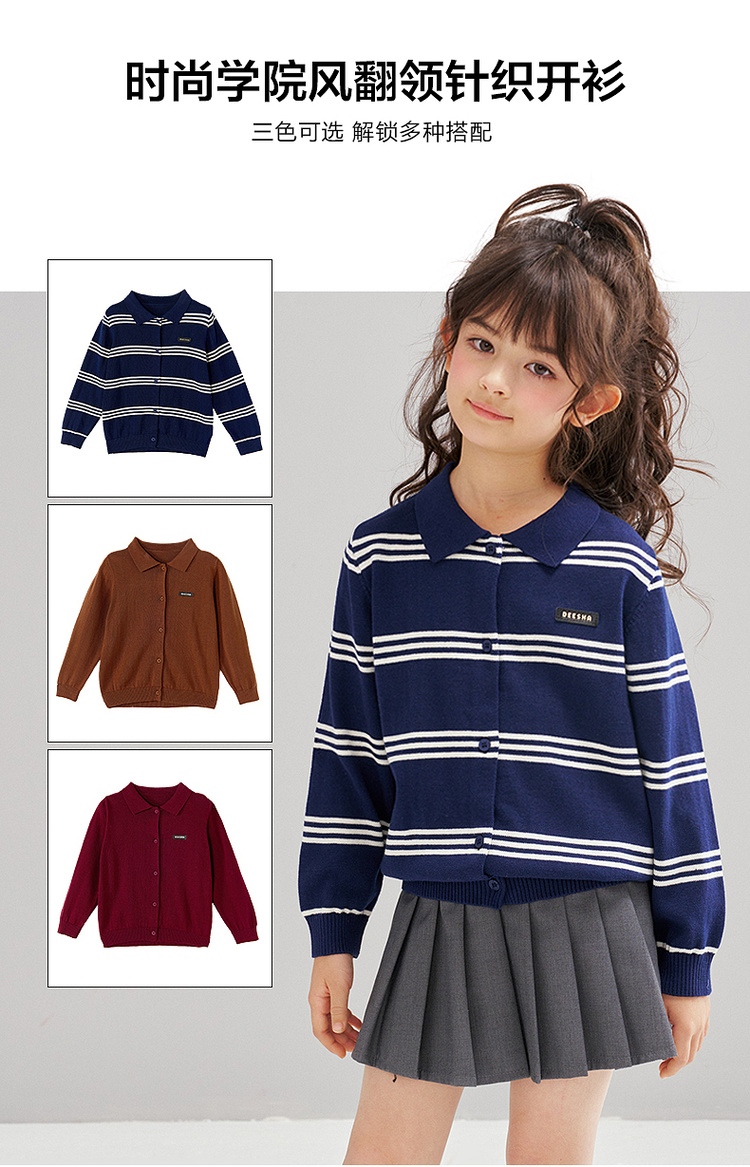 笛莎Deesha 2026春季女童时尚学院风翻领针织开衫