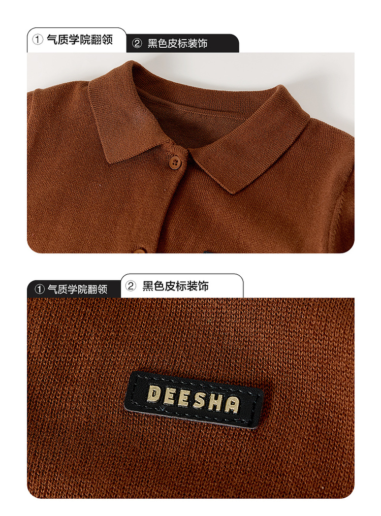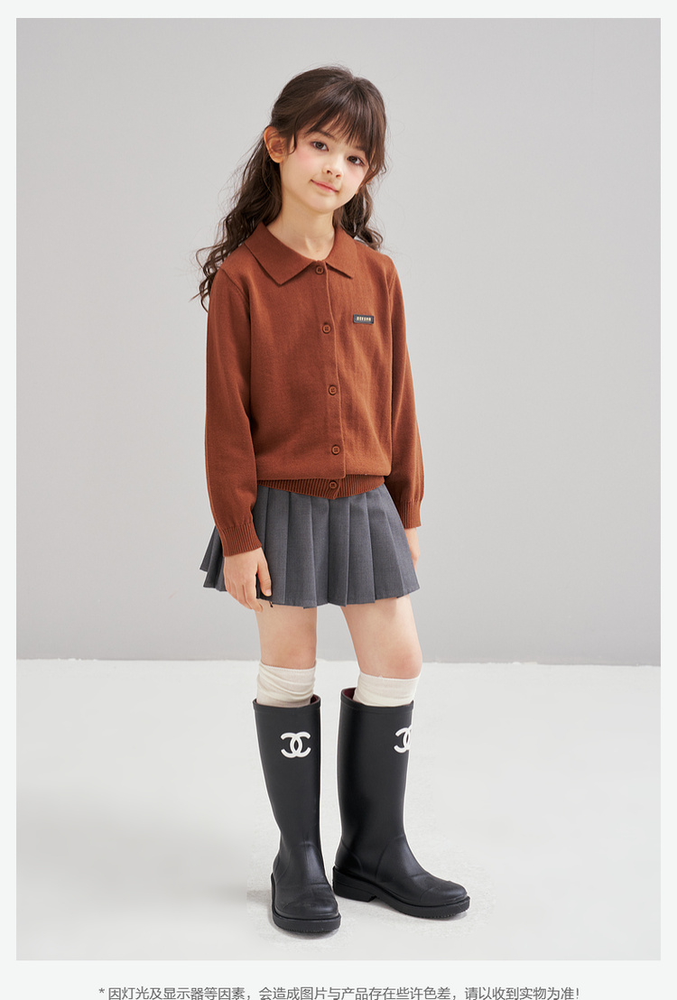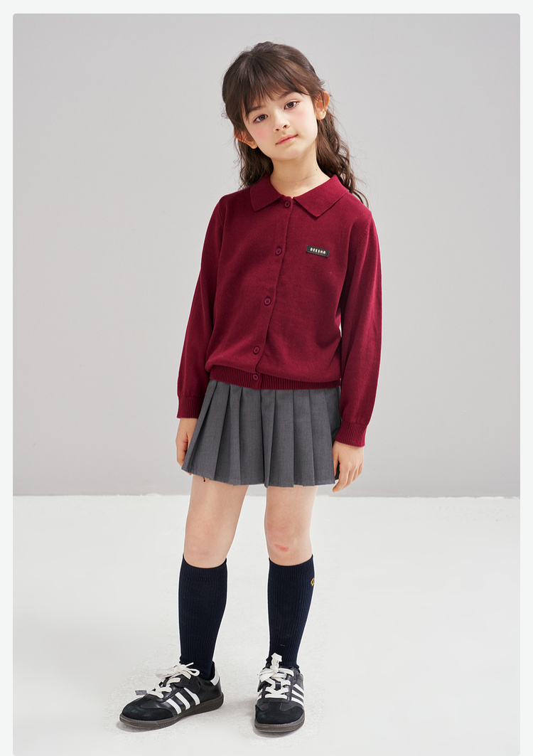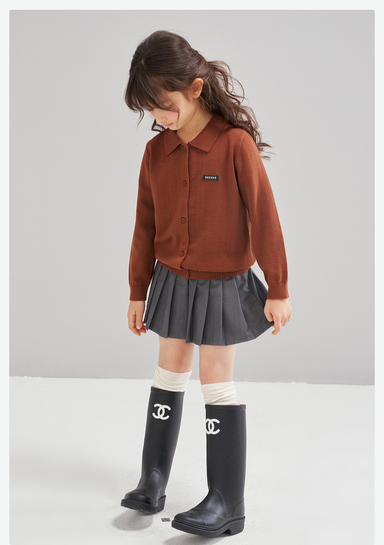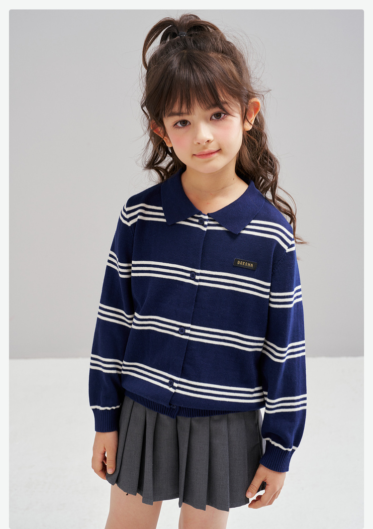 笛莎Deesha 2026春季女童时尚学院风翻领针织开衫