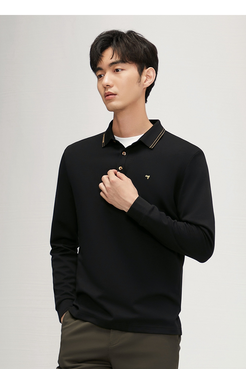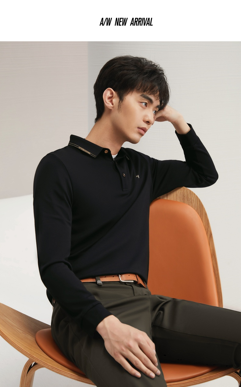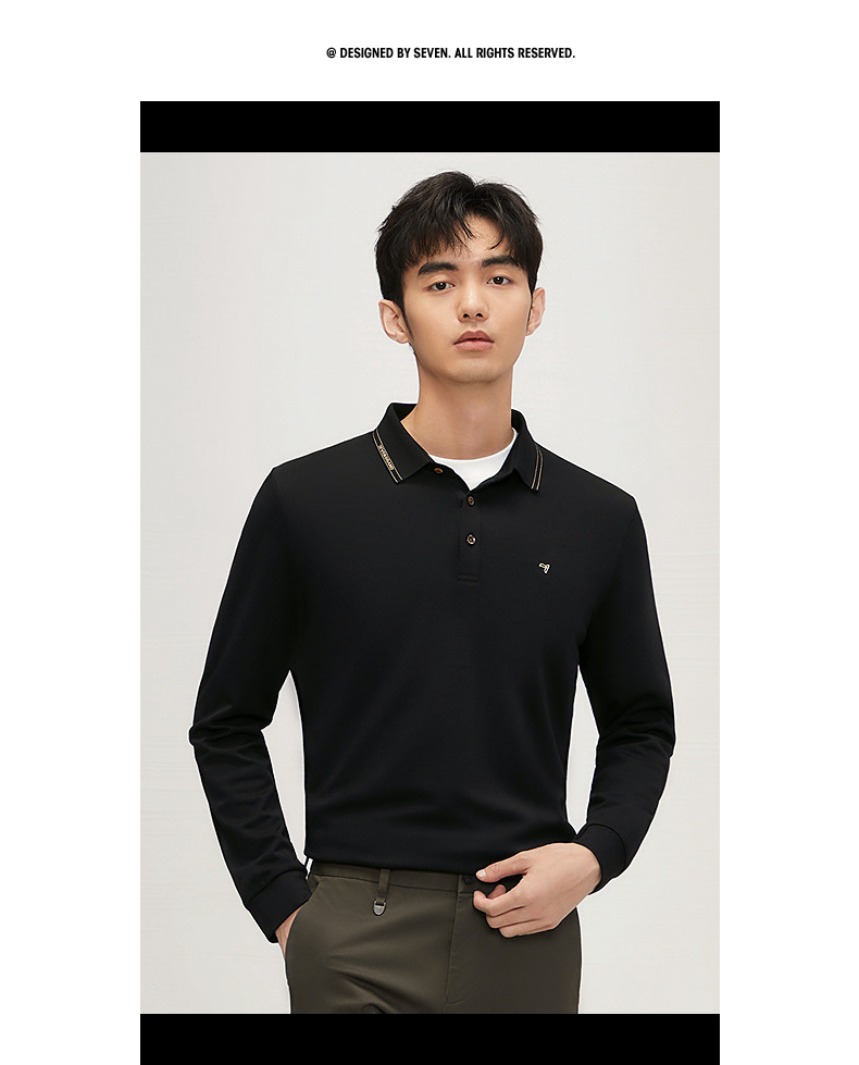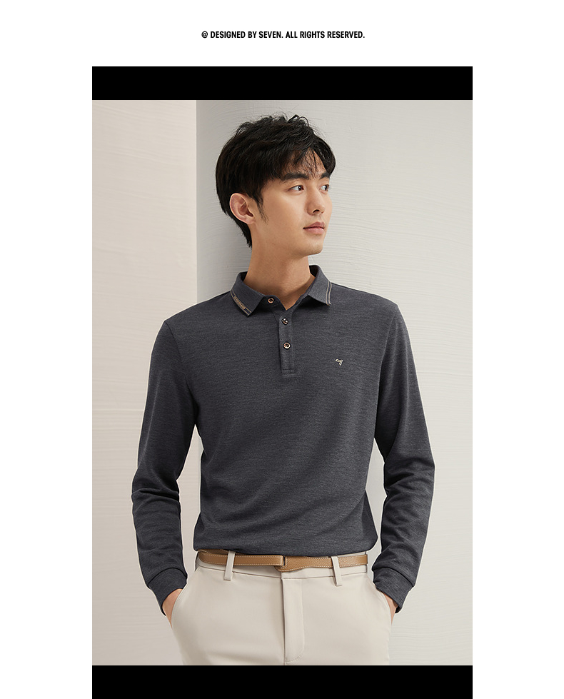 【含羊毛】柒牌男装长袖Polo衫秋冬新款时尚休闲舒适保暖翻领上衣 127T70130