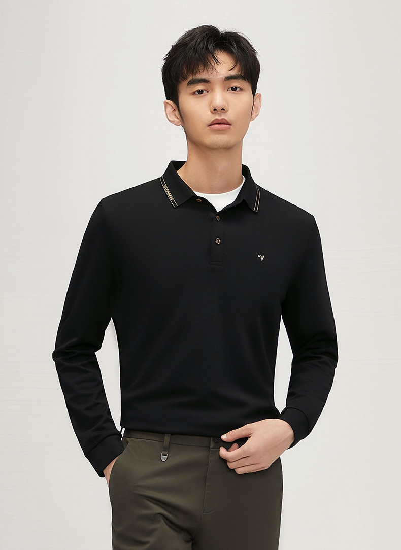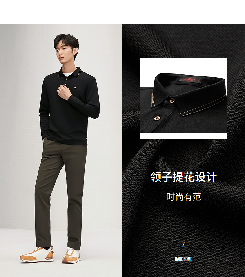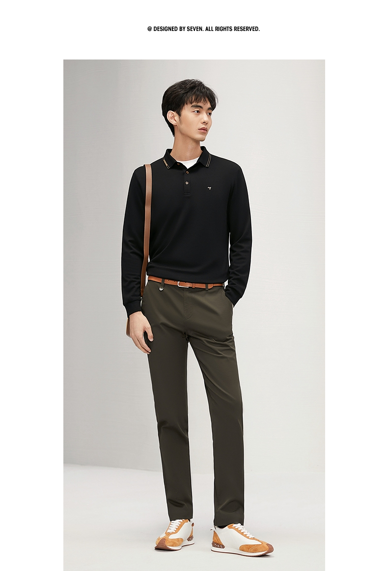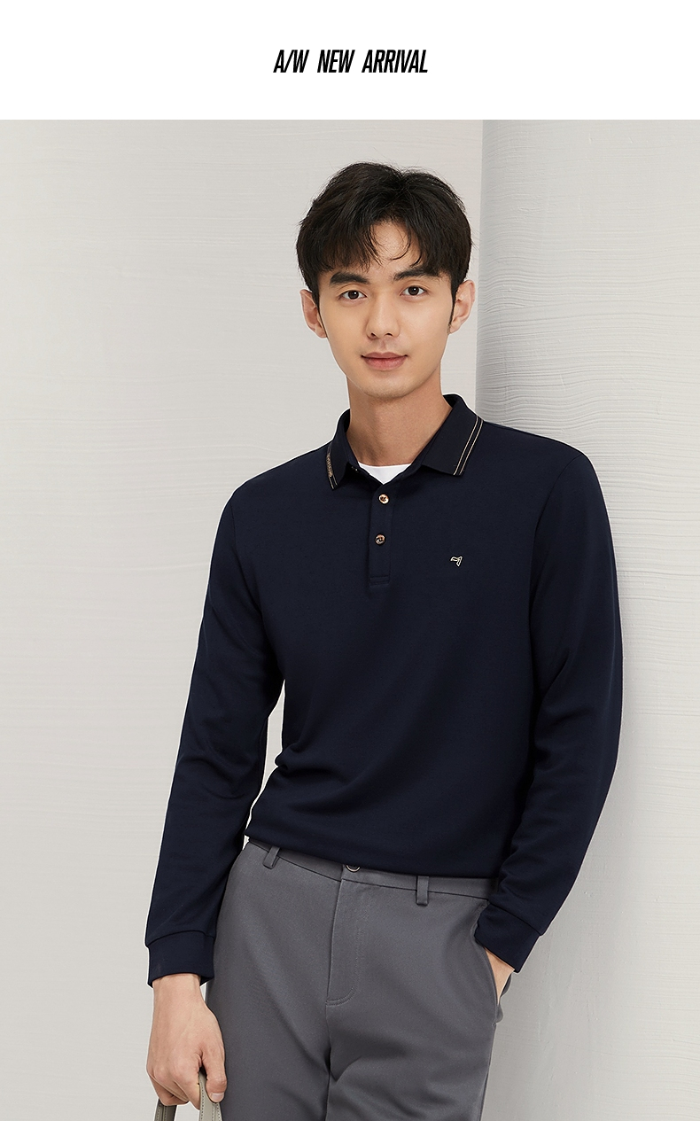【含羊毛】柒牌男装长袖Polo衫秋冬新款时尚休闲舒适保暖翻领上衣 127T70130