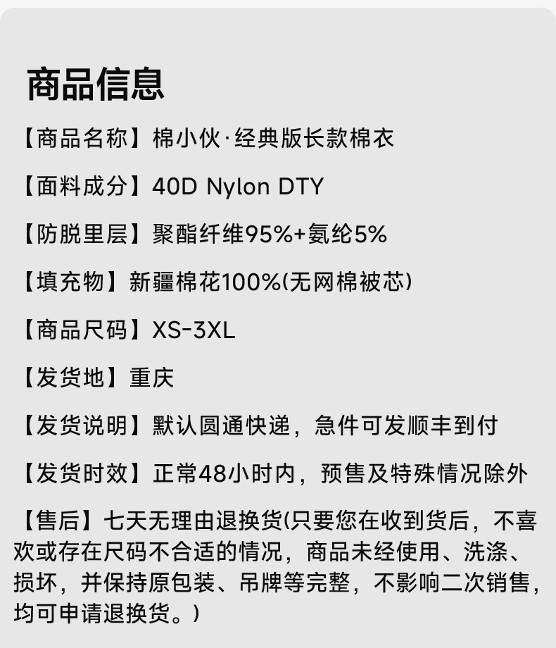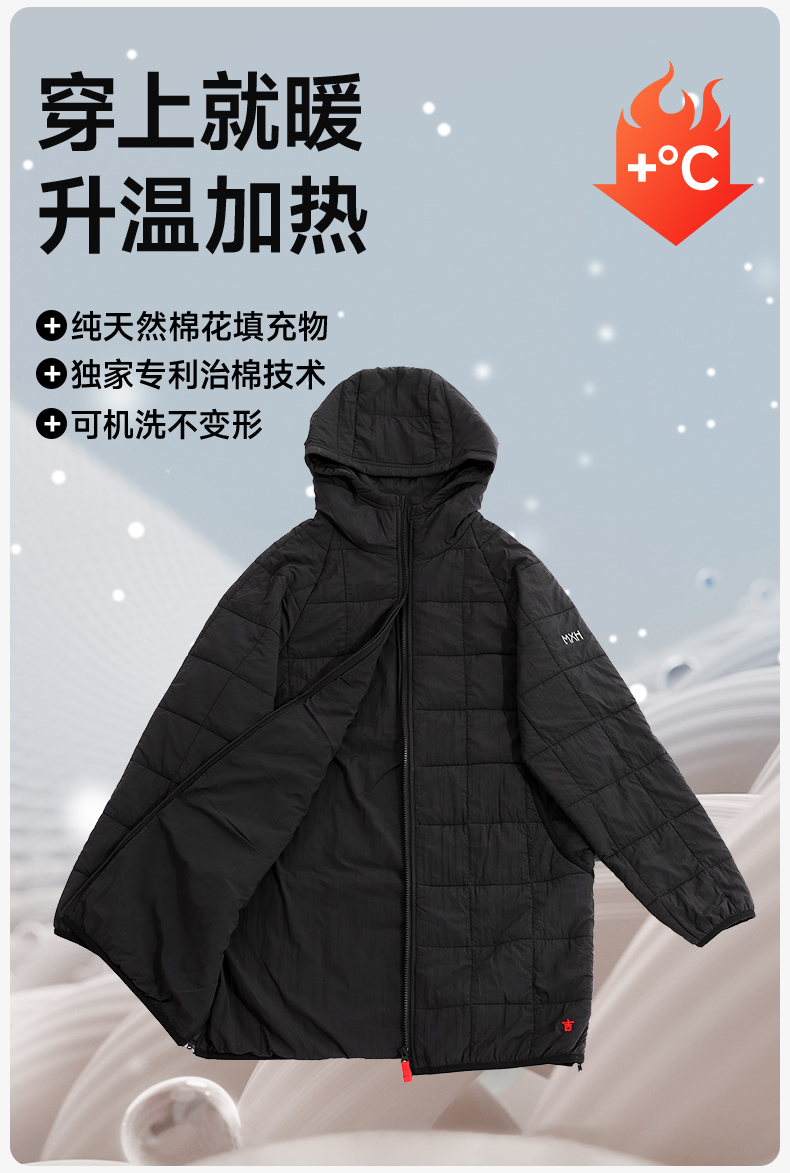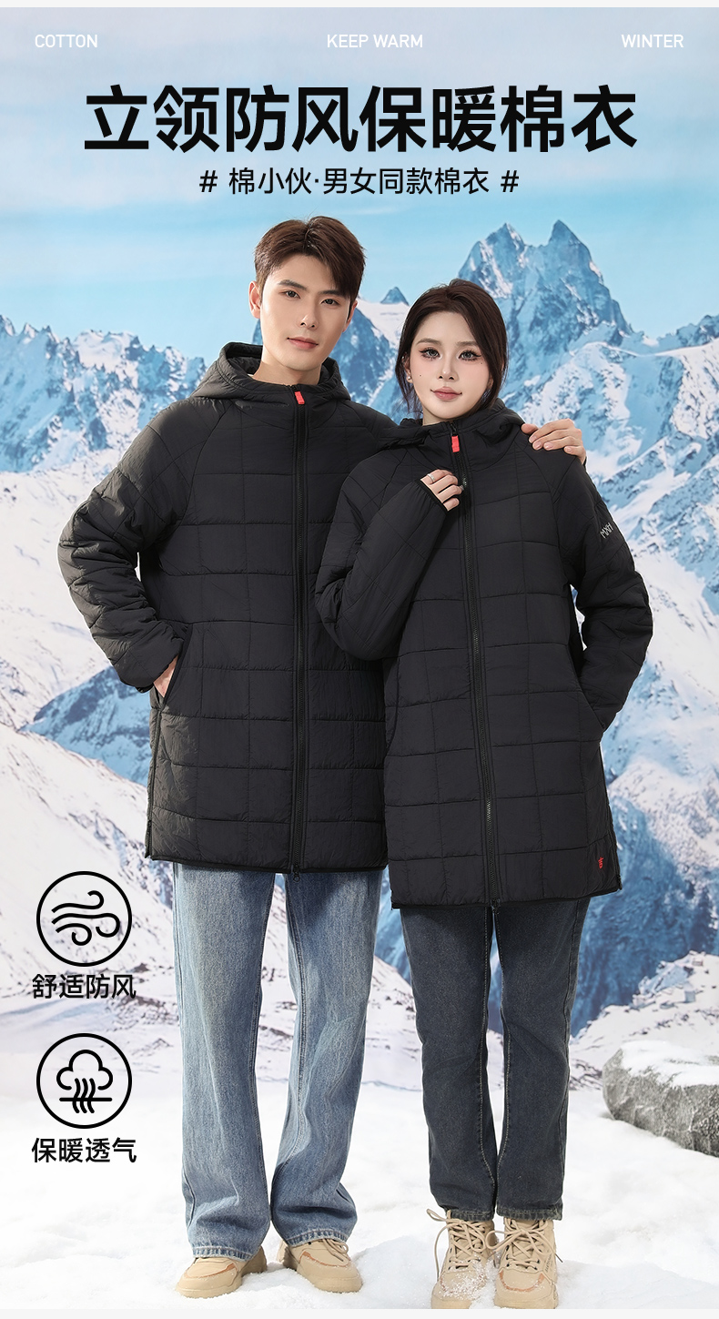 棉小伙【经典版长款棉衣】 天然棉花保暖棉衣 男女同款 连帽防风 可机洗不变形 休闲宽松兼容性强 有厚款可选