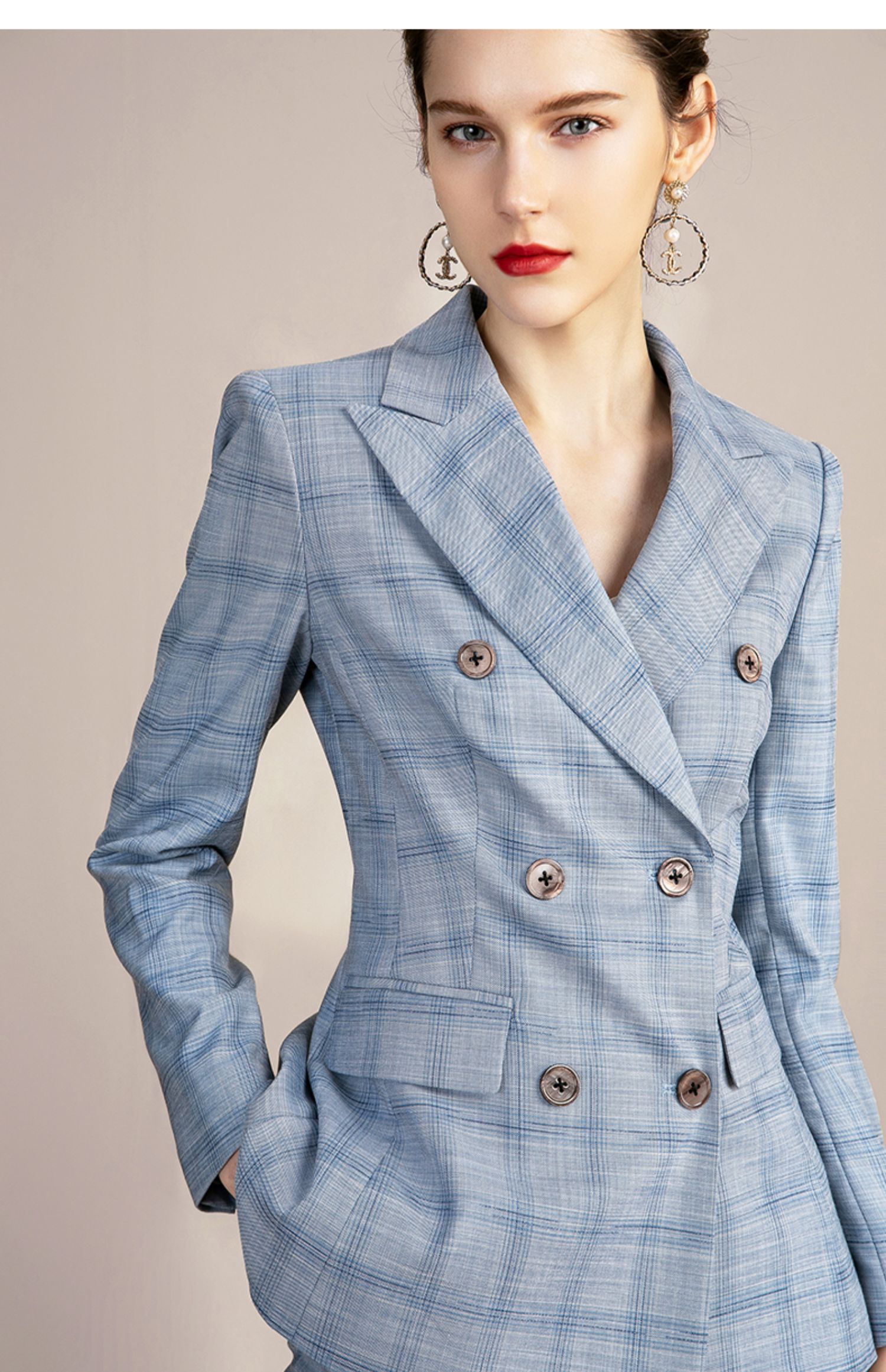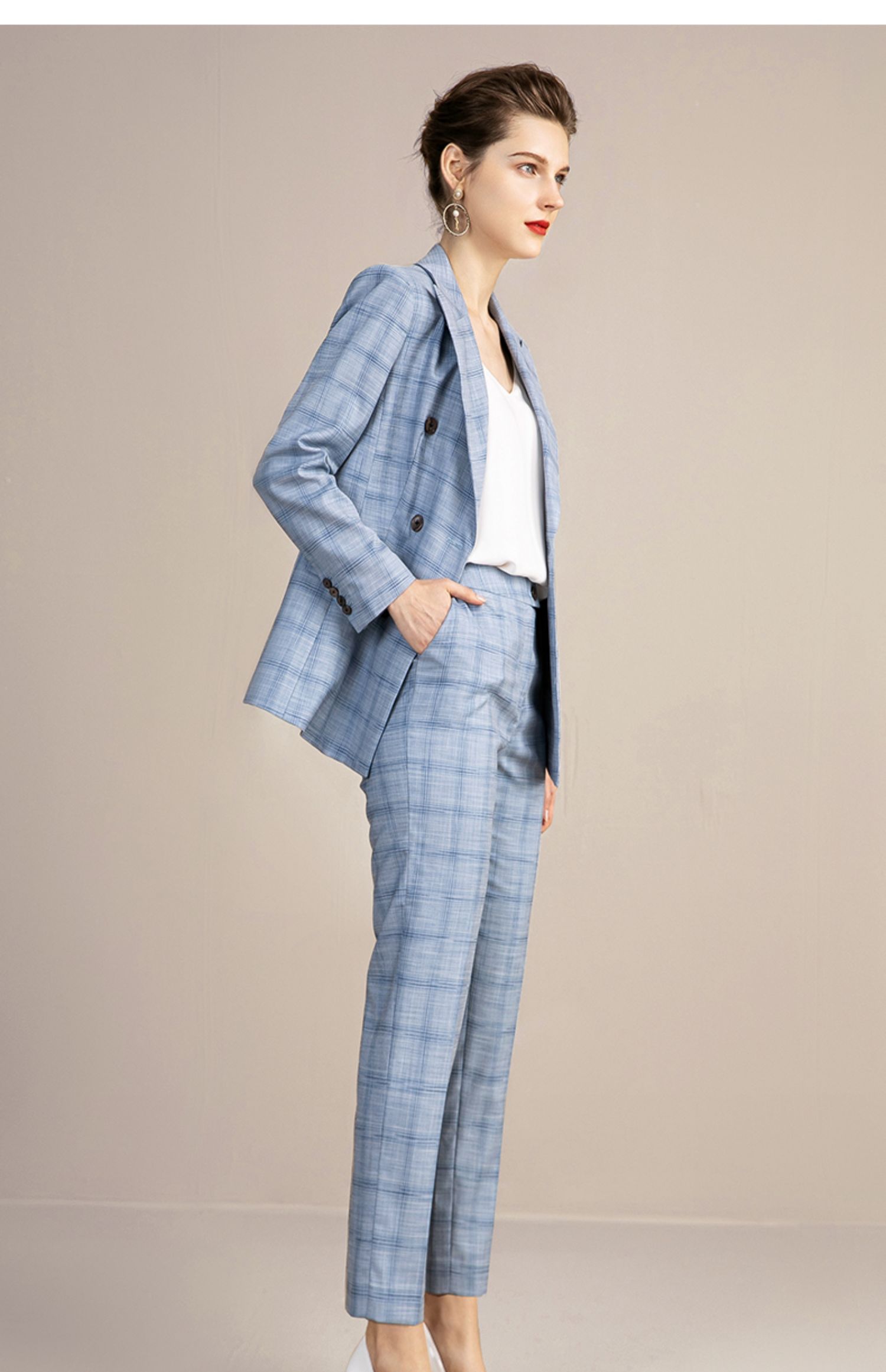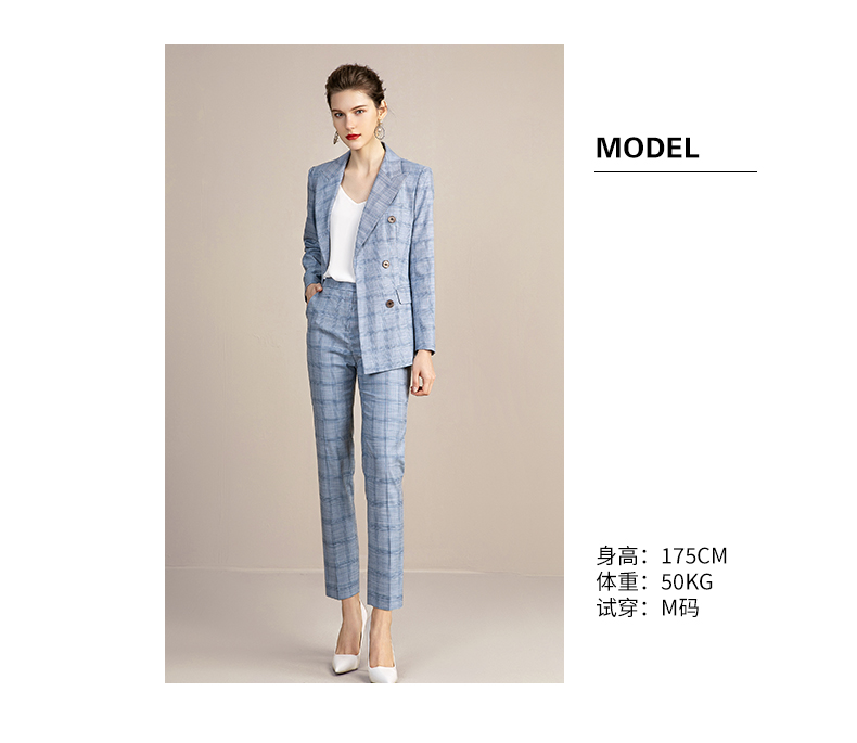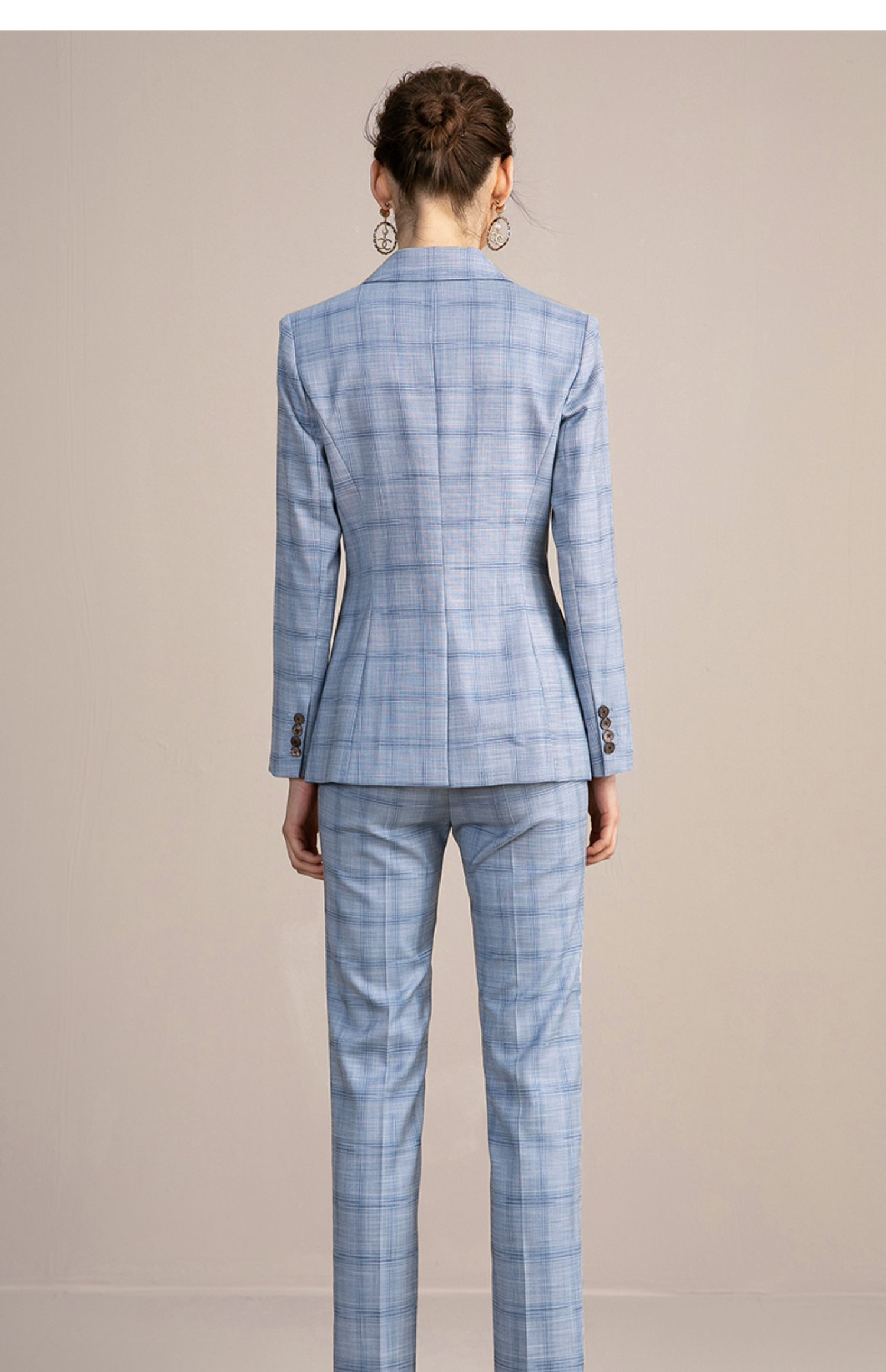 IWY/格纹长袖西装套装女时尚修身高端职业装气质女神范商务ol工作服 213123C1+P1