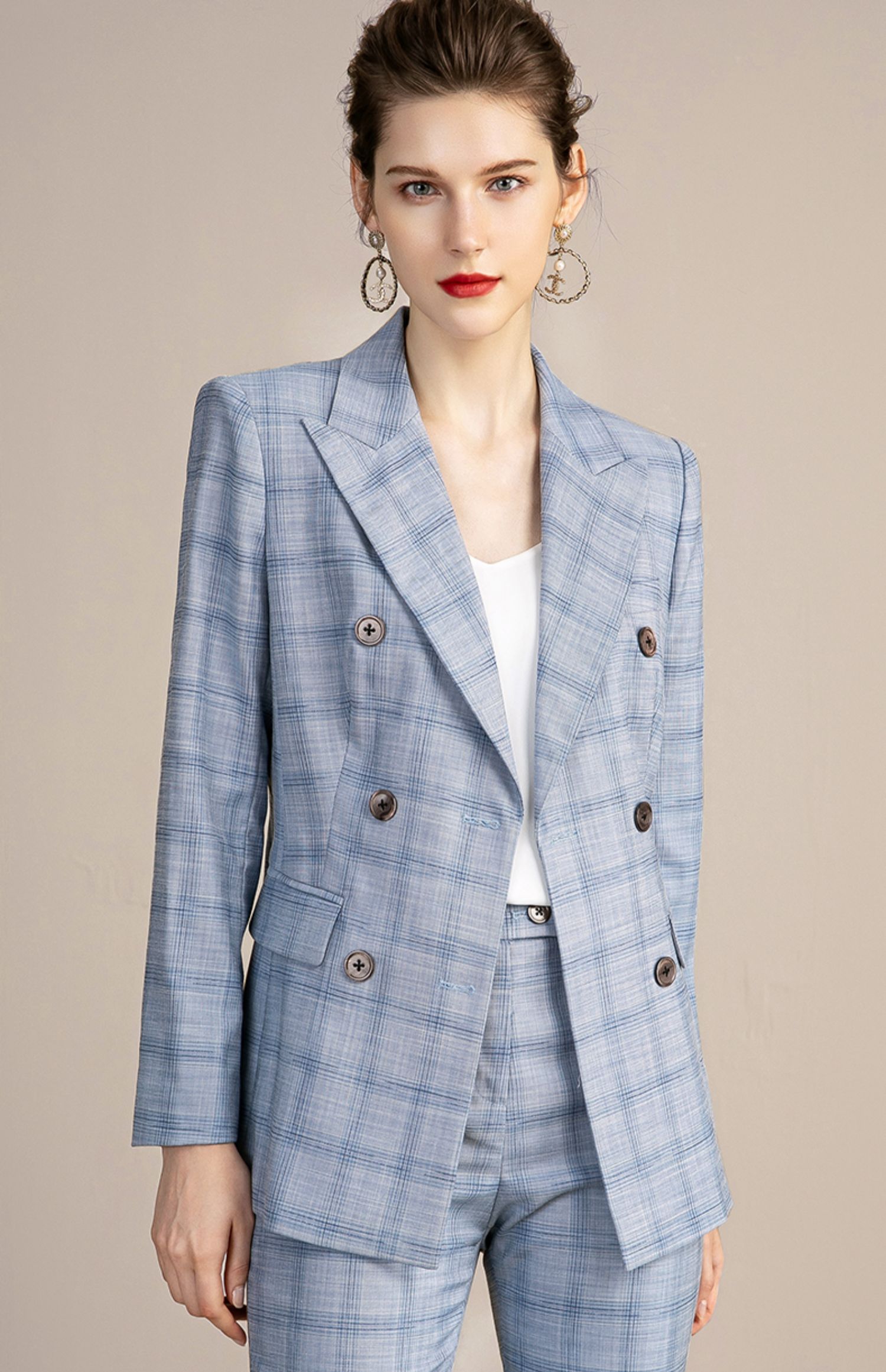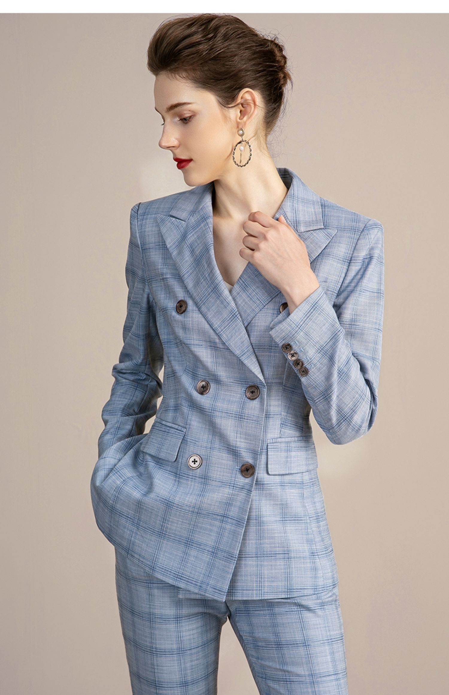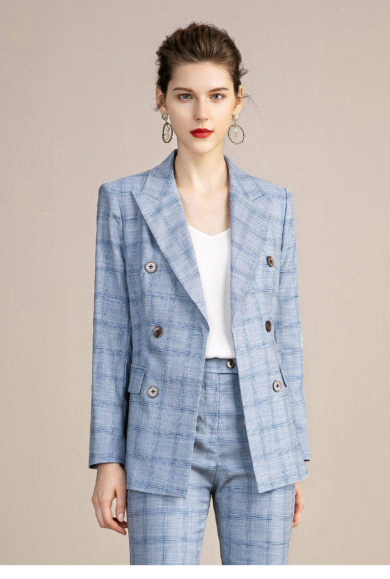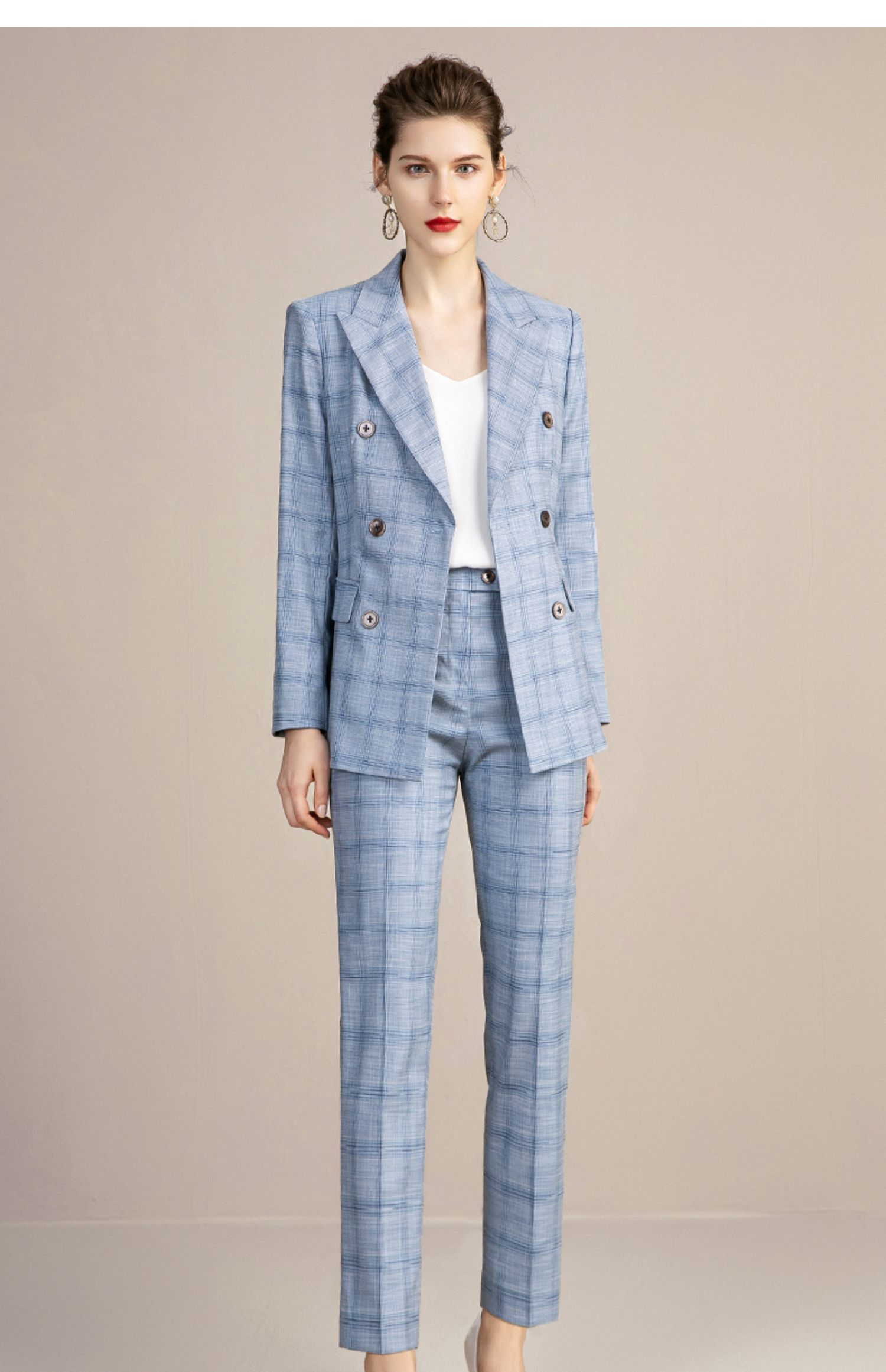 IWY/格纹长袖西装套装女时尚修身高端职业装气质女神范商务ol工作服 213123C1+P1