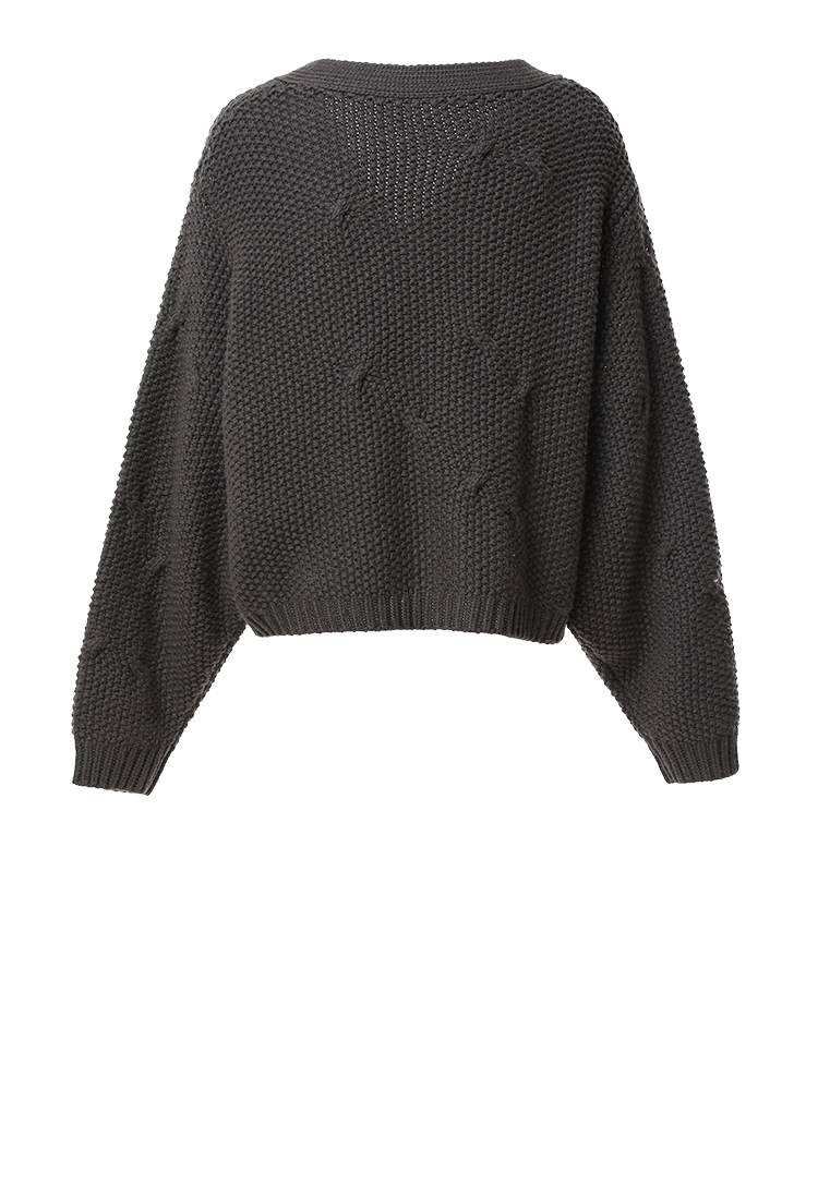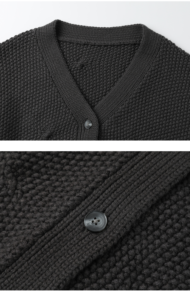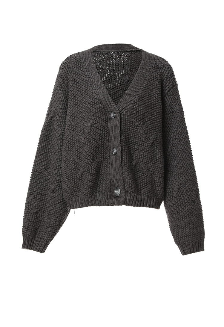 Famecoco范可儿短款v领肌理绞花针织开衫女FAB8DE033