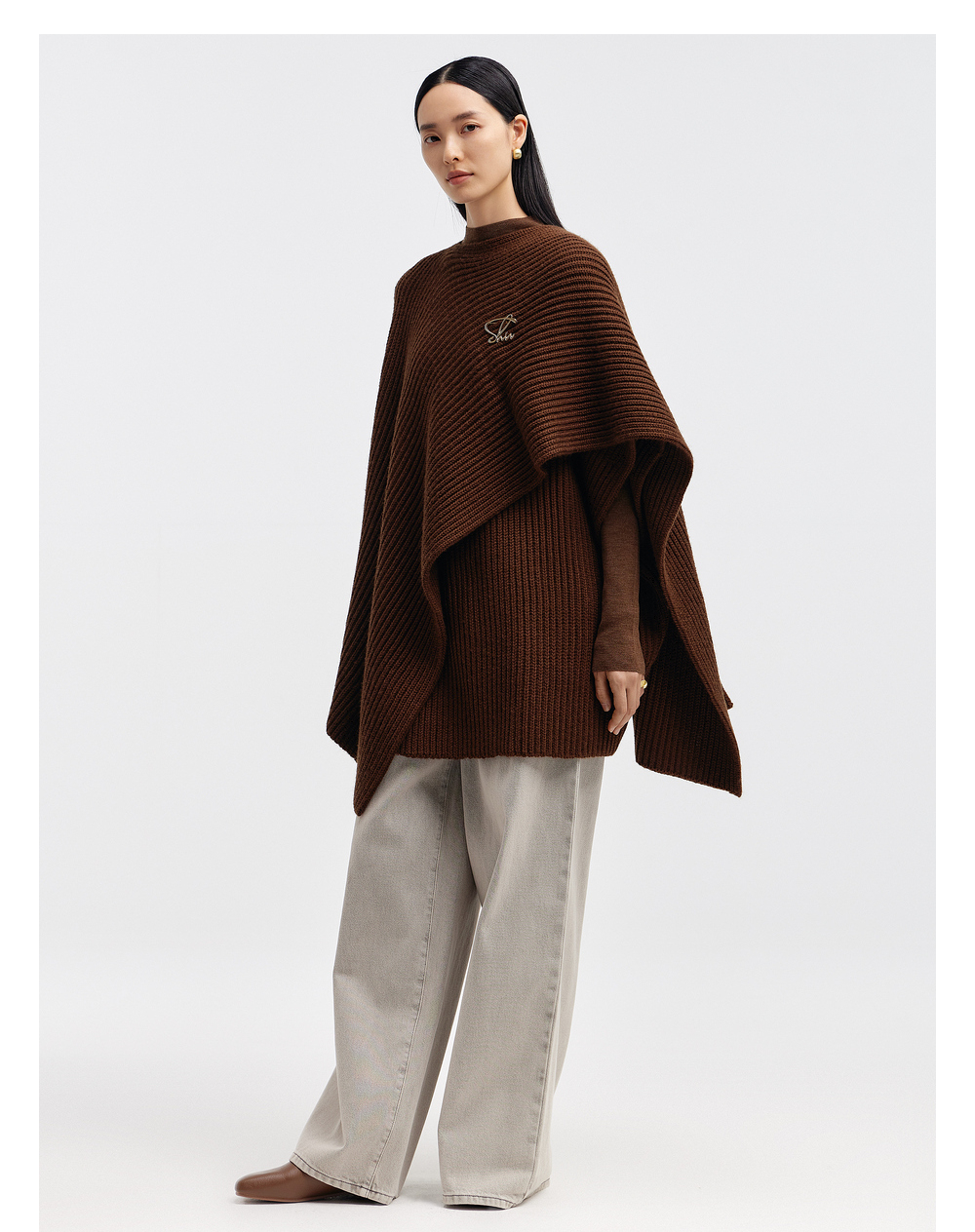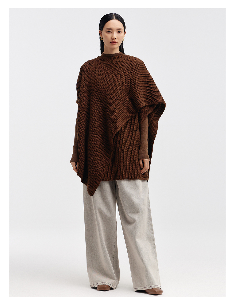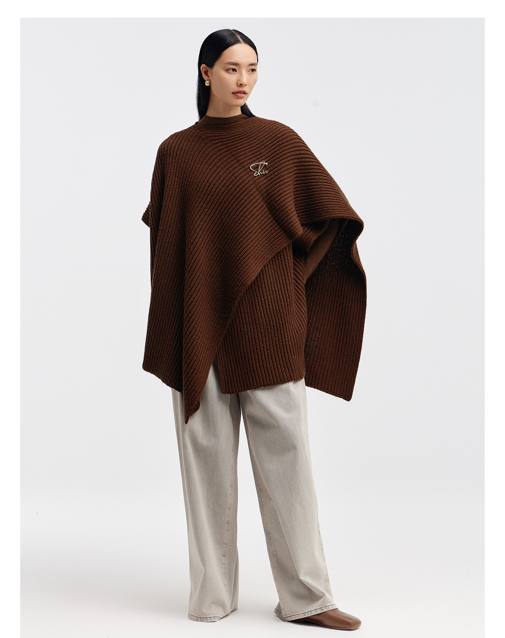 【舒系列】舒库羊毛披肩女年冬不规则毛衣多功能披肩围巾外搭