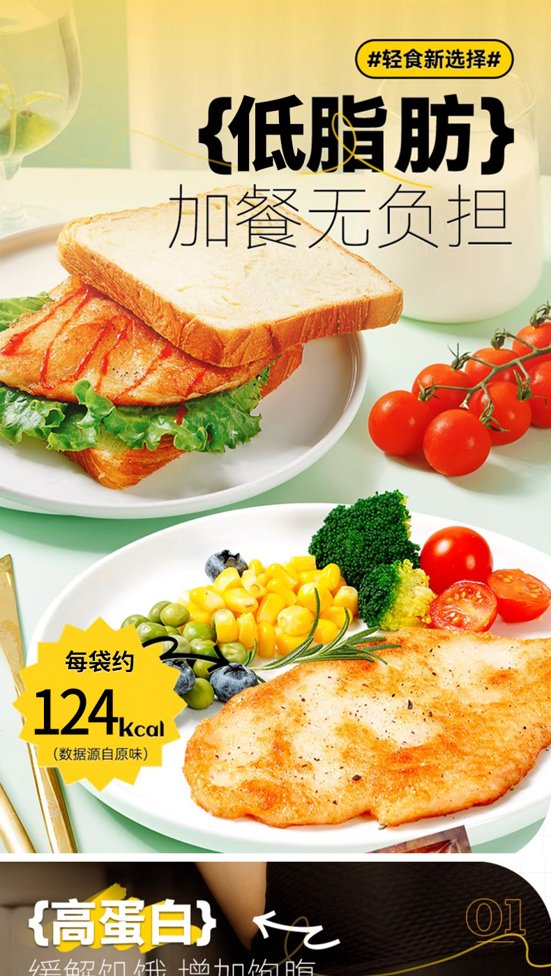 超值10袋装!【轻食新选择,加餐无负担!】整片鸡胸肉 高蛋白低脂肪 即食鸡胸肉低脂肉类零食 健身推荐代餐食品 饱腹零食包邮100g/袋-QB