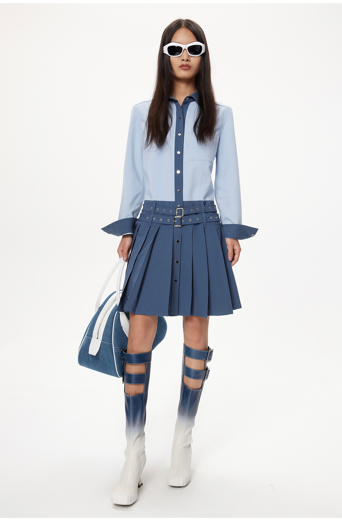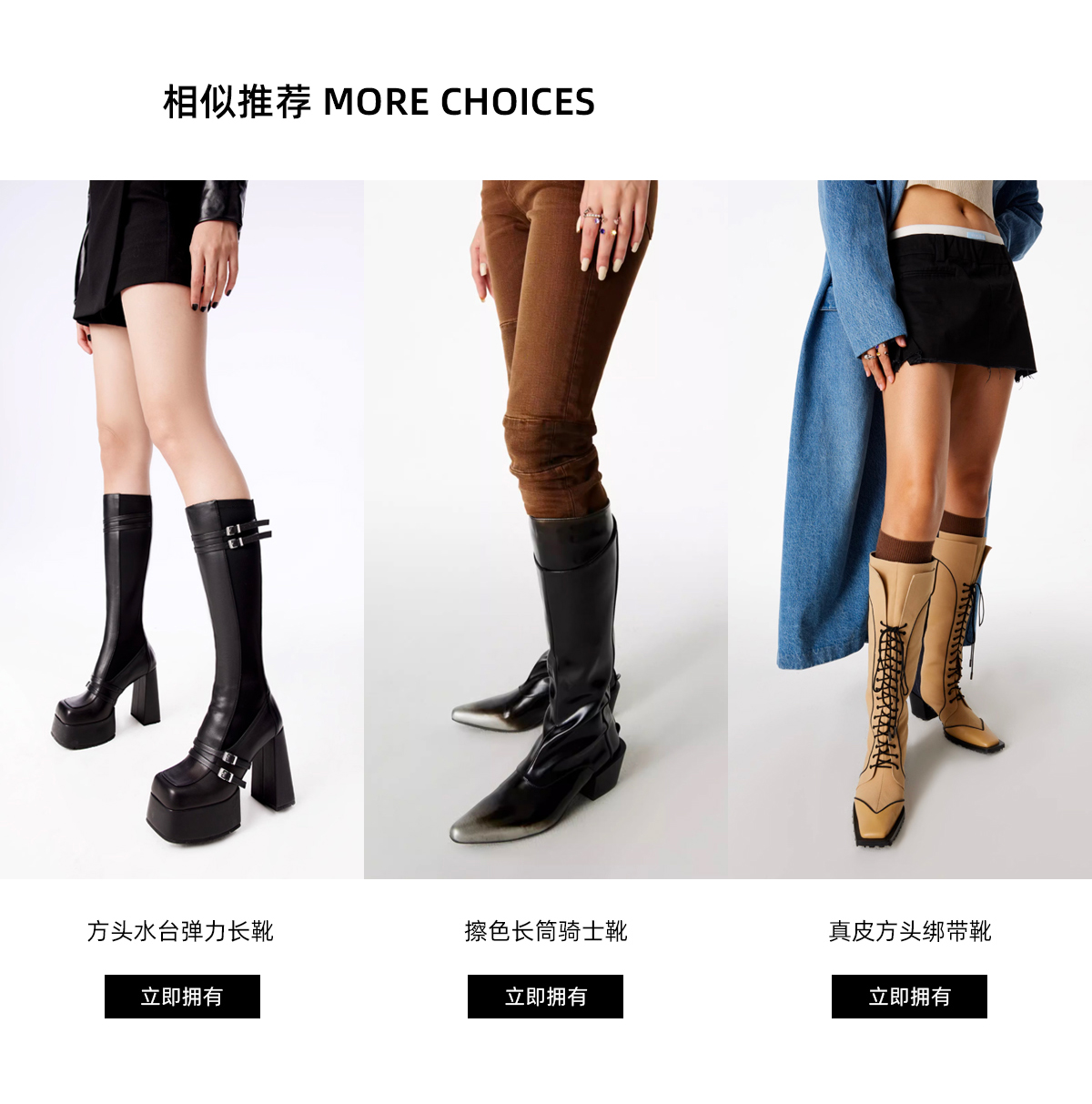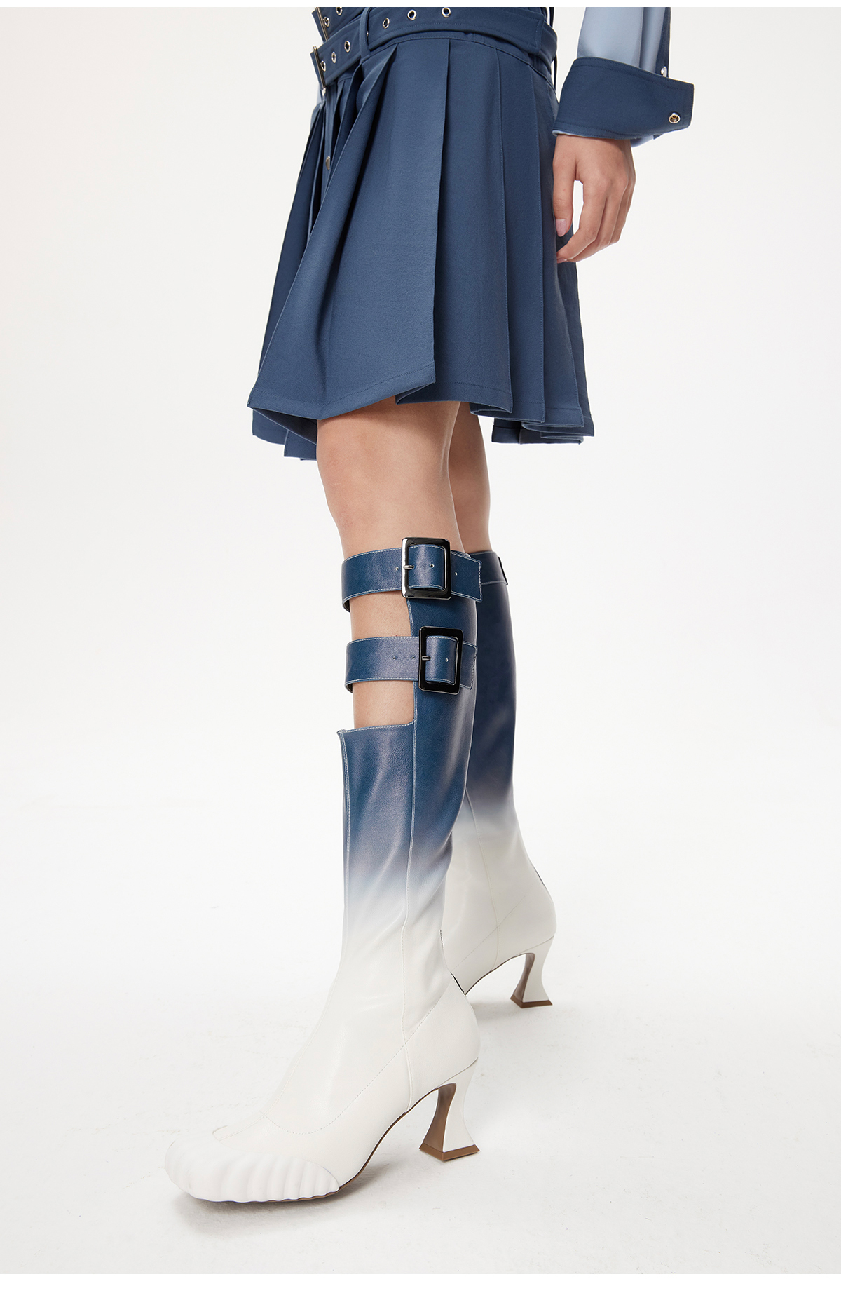 [断码]lost in echo设计师品牌小众方头饰扣粗跟渐变芭蕾舞长靴修身长靴