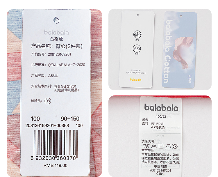 【balaOne】巴拉巴拉童装儿童内衣男女童2025新款春2件装打底背心
