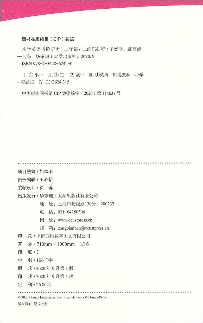 迪士尼小学英语进阶听力二年级/2年级 图解单词句型题型丰富激发学习兴趣 提高英语听力水平 提升语言运用能力 华东理工大学出版社