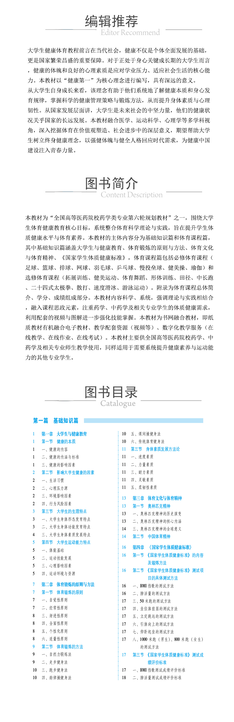 大学生健康体育教程(全国高等医药院校药学类专业第六轮规划教材)王大鹏 主编 供药学 中药学及相关专业用 中国医药科技出版社