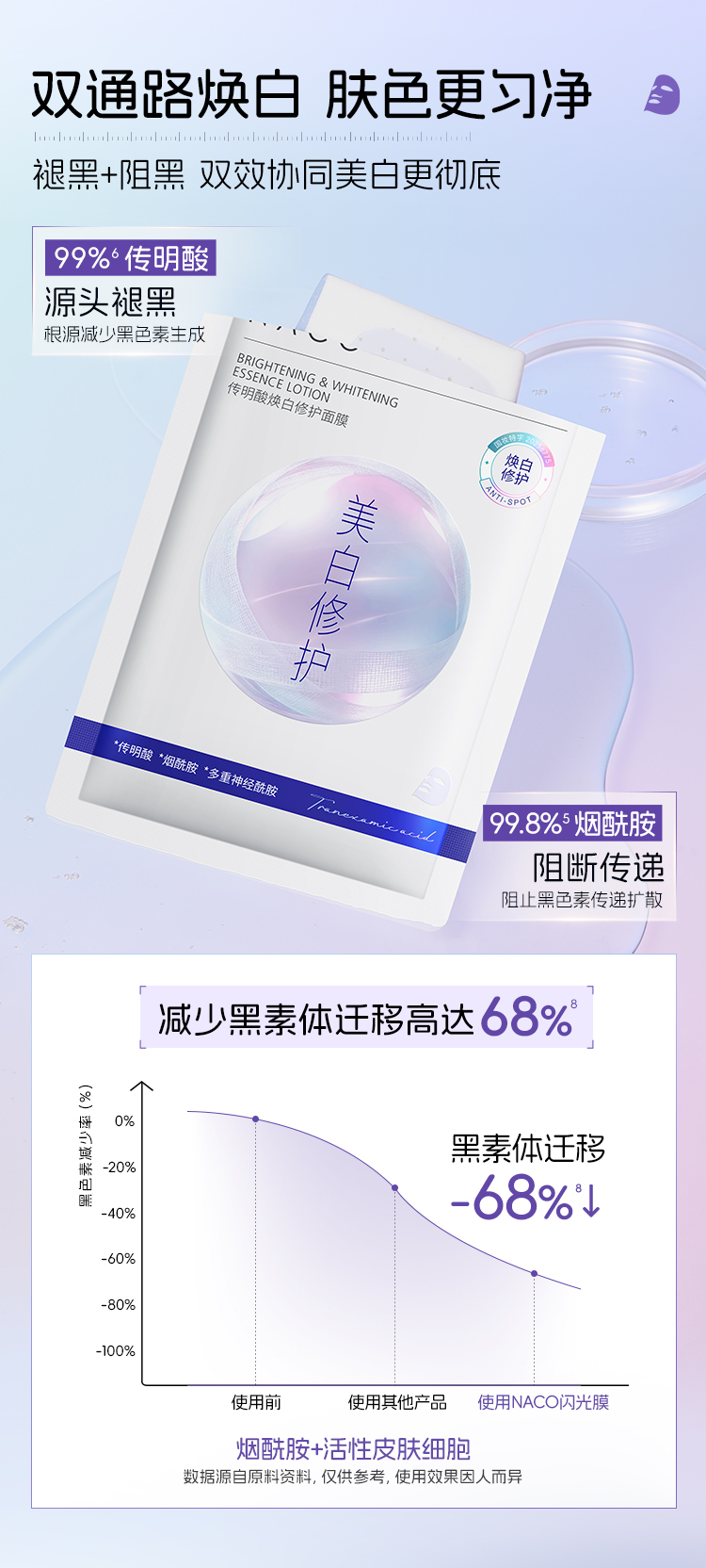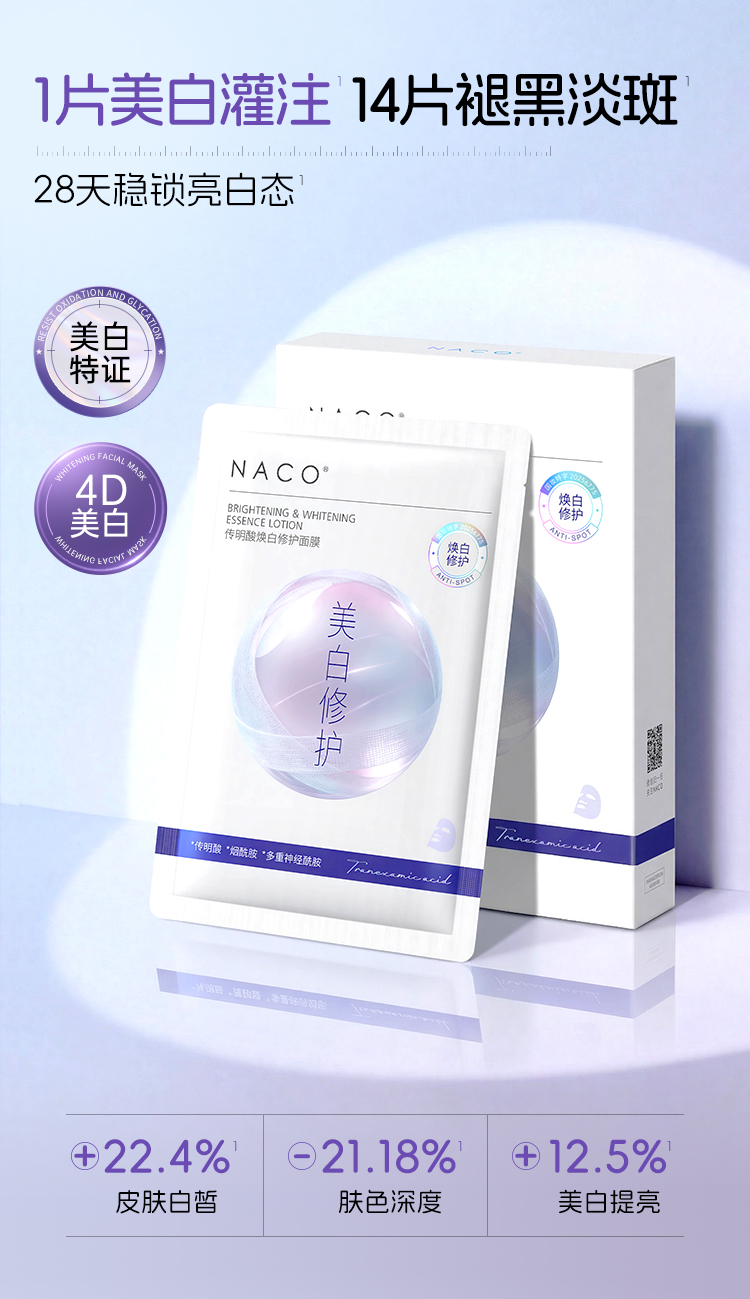 【老客专属福利】NACO传明酸焕白修护面膜25ml*10片/盒 #持证美白 4D美白矩阵&5D修护锁白 美白更全面 更持久 不反黑