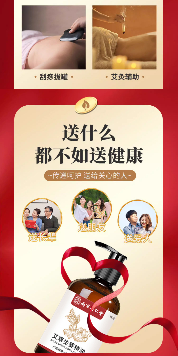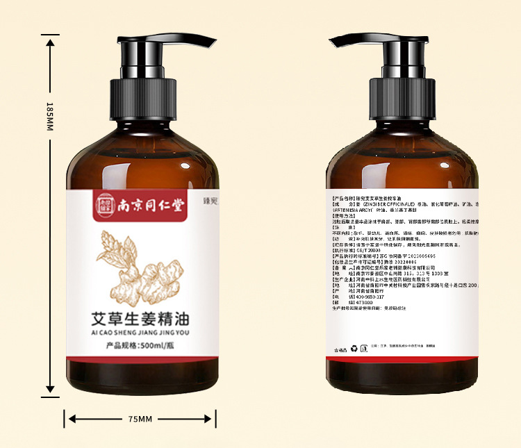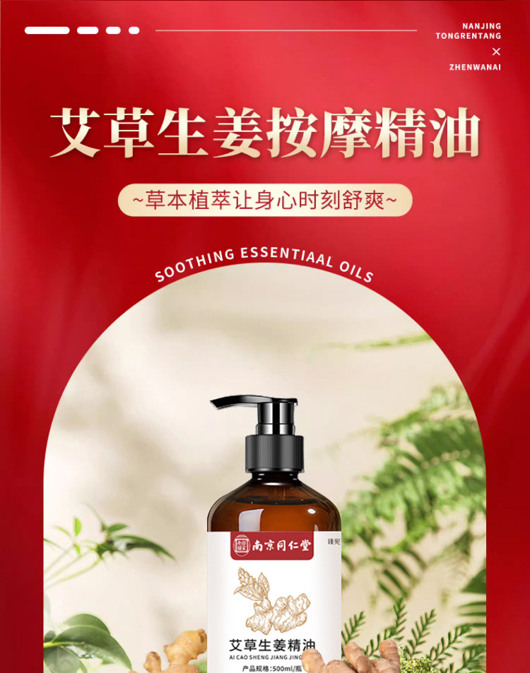 【送刮痧板 舒爽按摩】南京同仁堂艾草生姜按摩油 一瓶多用 草本植萃 温和发热不伤肤 500ml/瓶