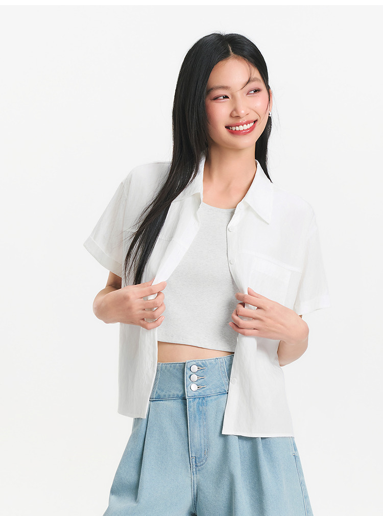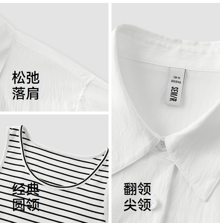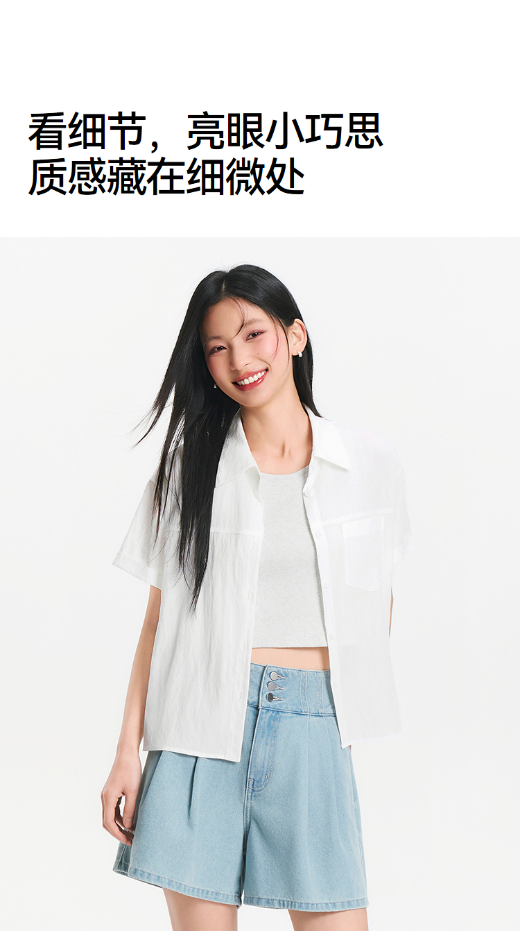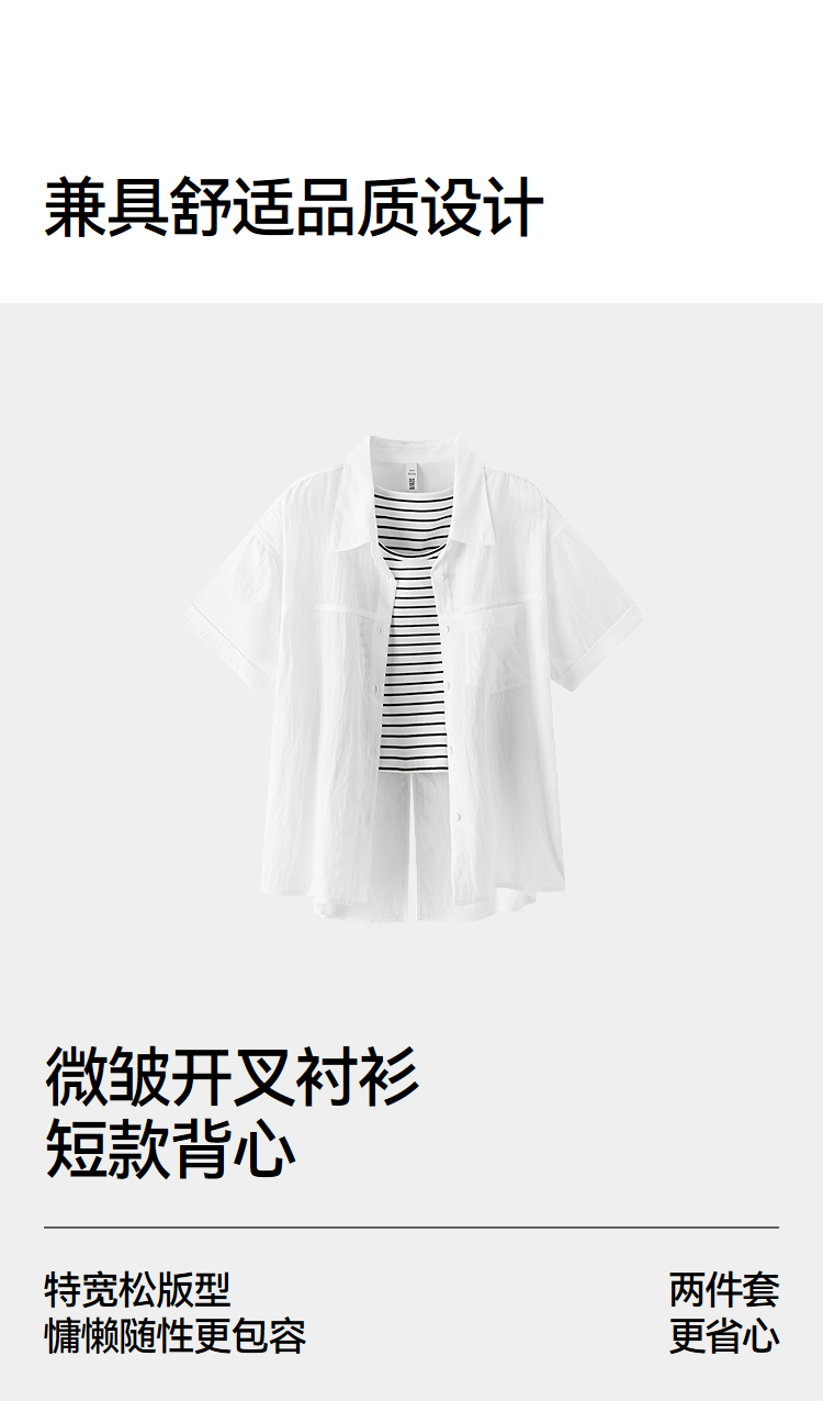 [商场同款]森马短袖衬衫女短背心oversize衬衣2025夏季新款两件套