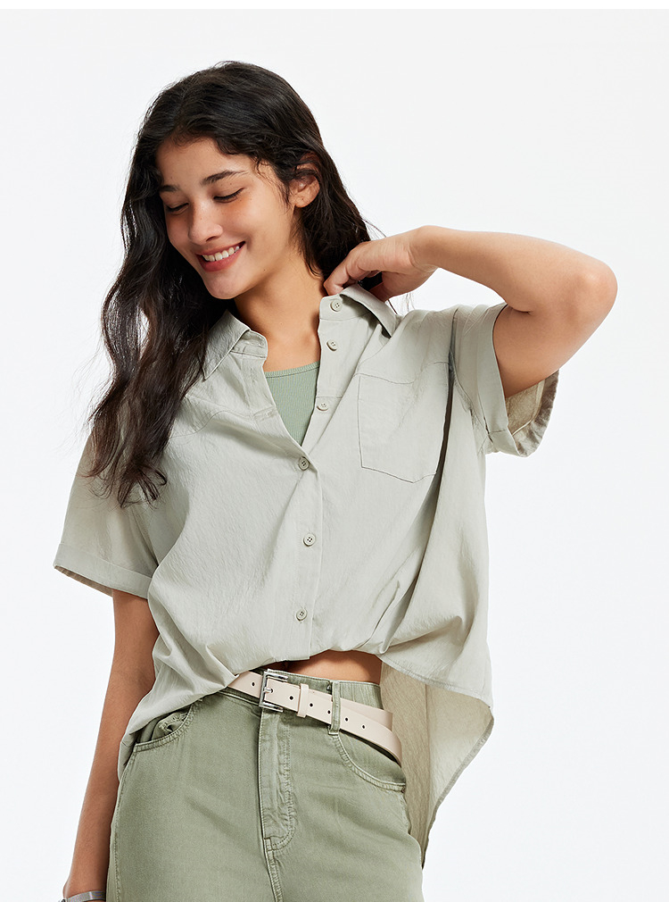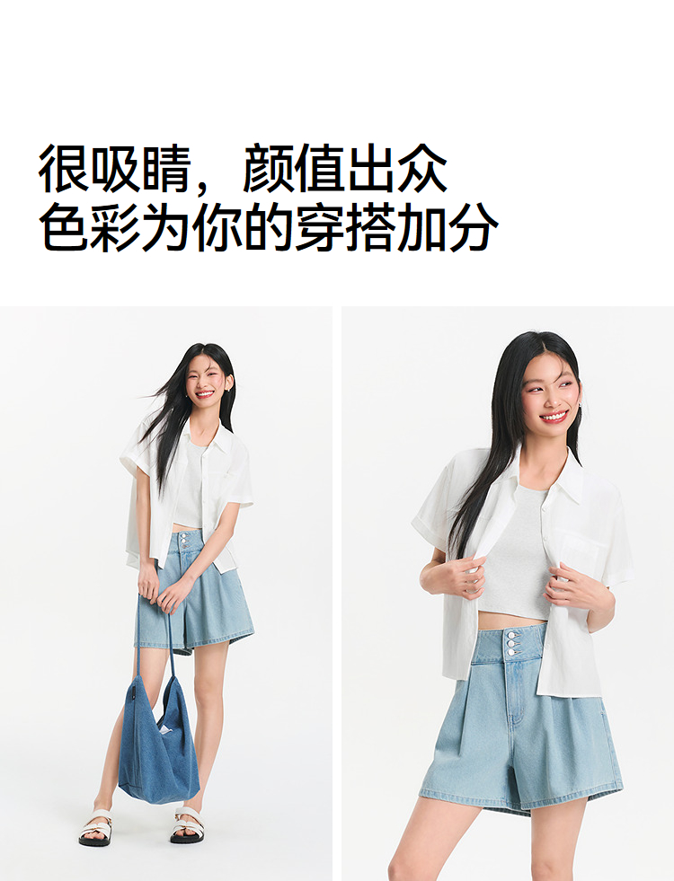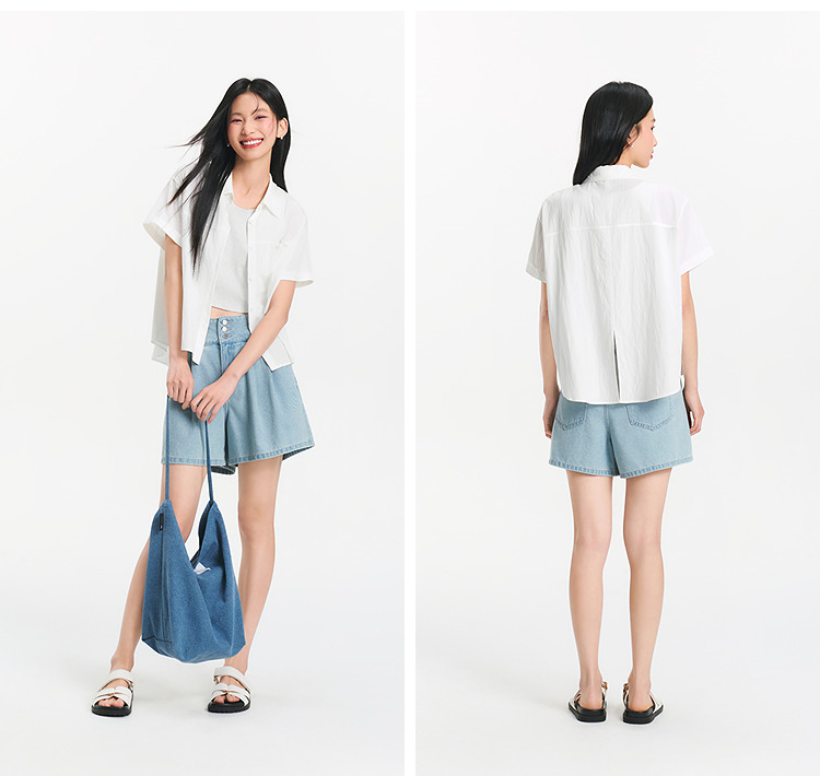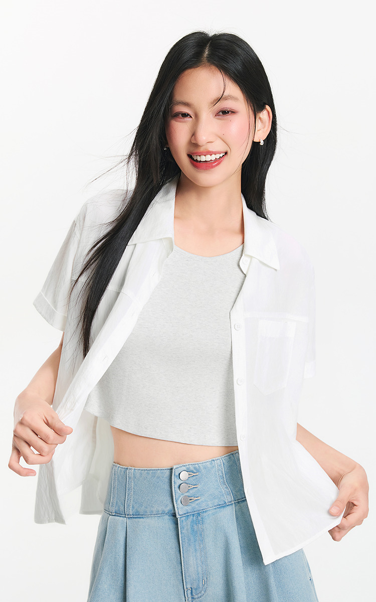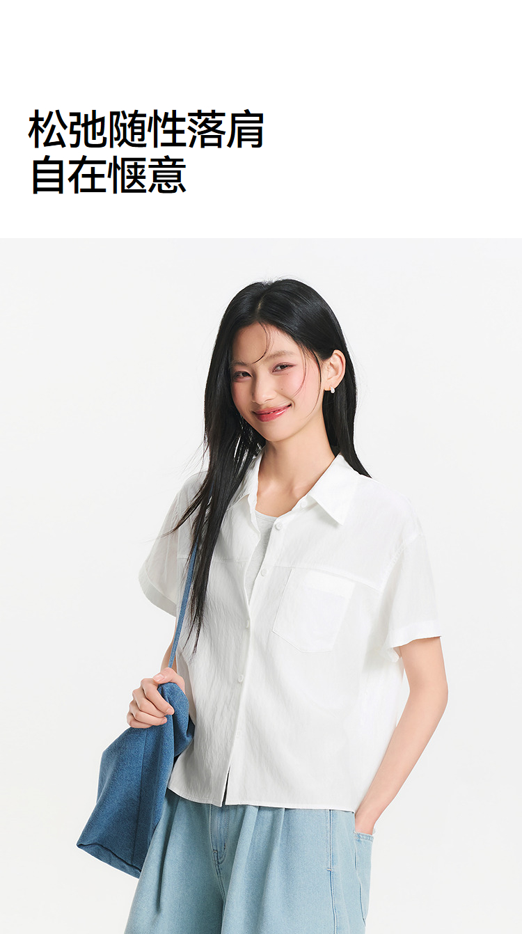 [商场同款]森马短袖衬衫女短背心oversize衬衣2025夏季新款两件套