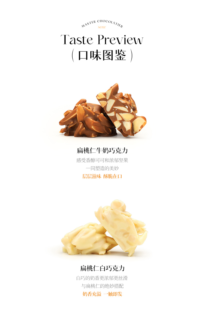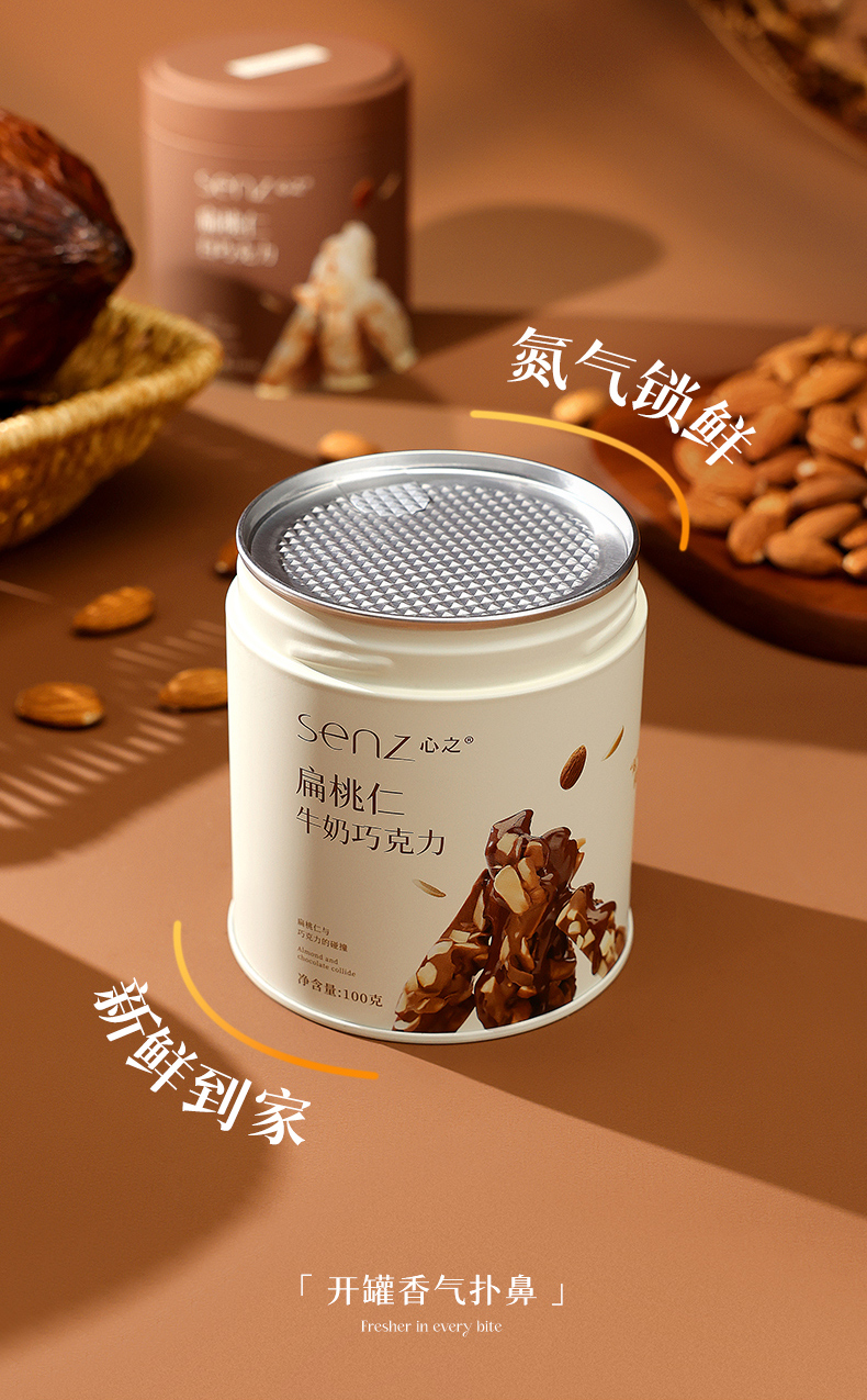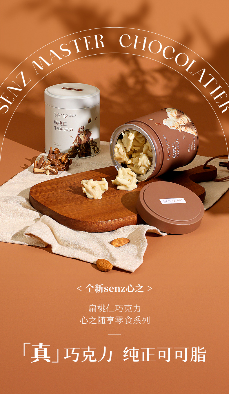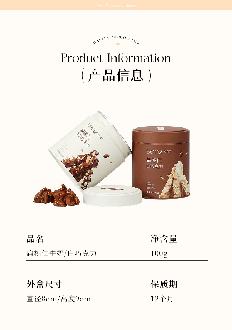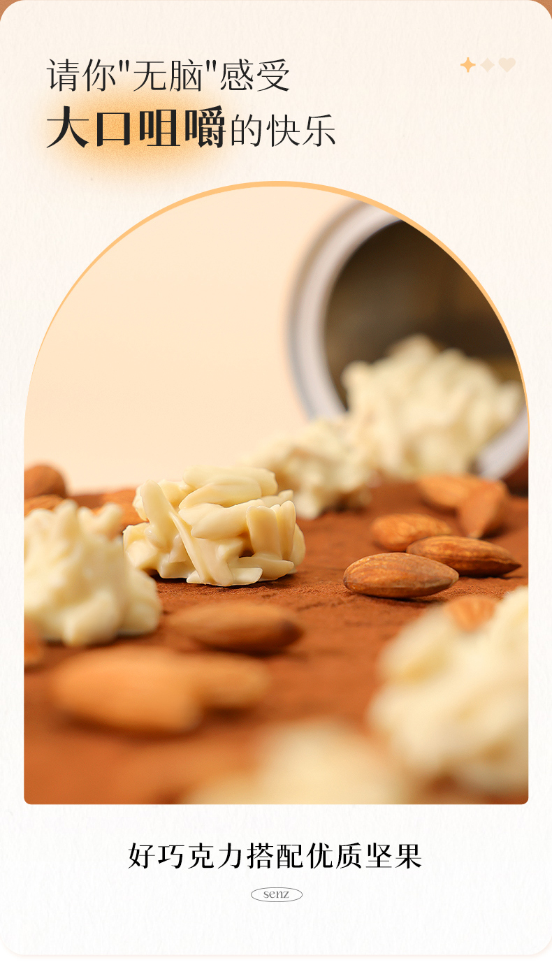 SENZ心之小巧罐纯可可脂牛奶坚果扁桃仁夹心白巧克力巧克力杏仁