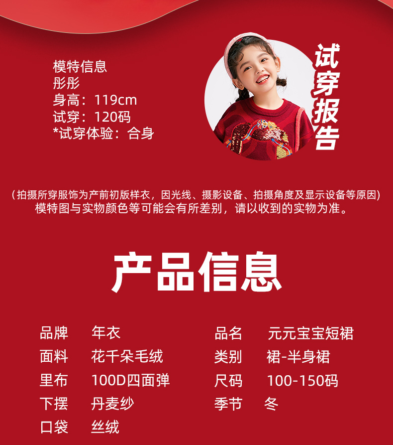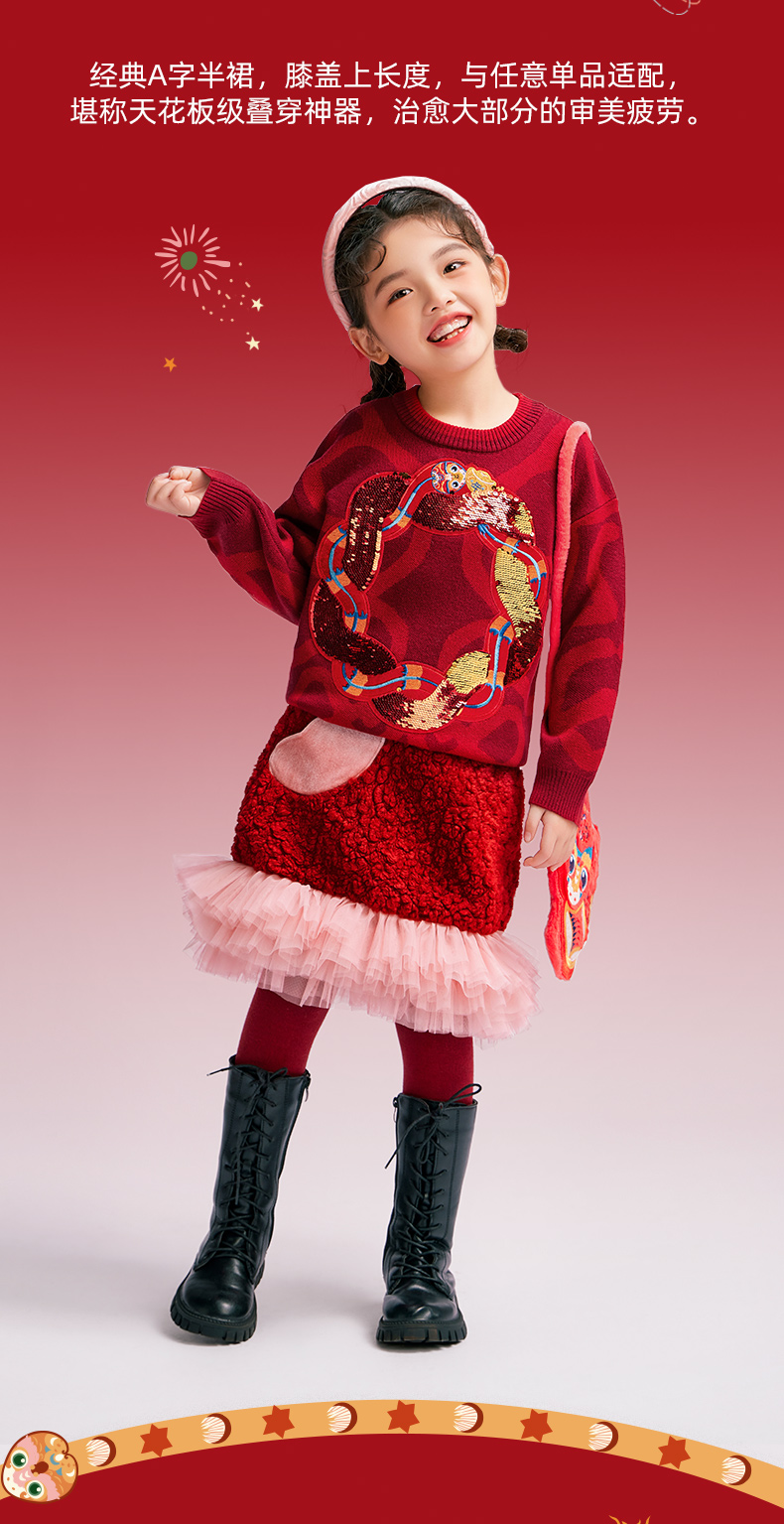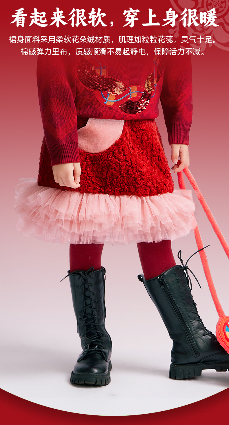 年衣女童短裙冬季新款儿童裙子半身裙A字裙公主裙女孩甜美裙子元元宝宝短裙