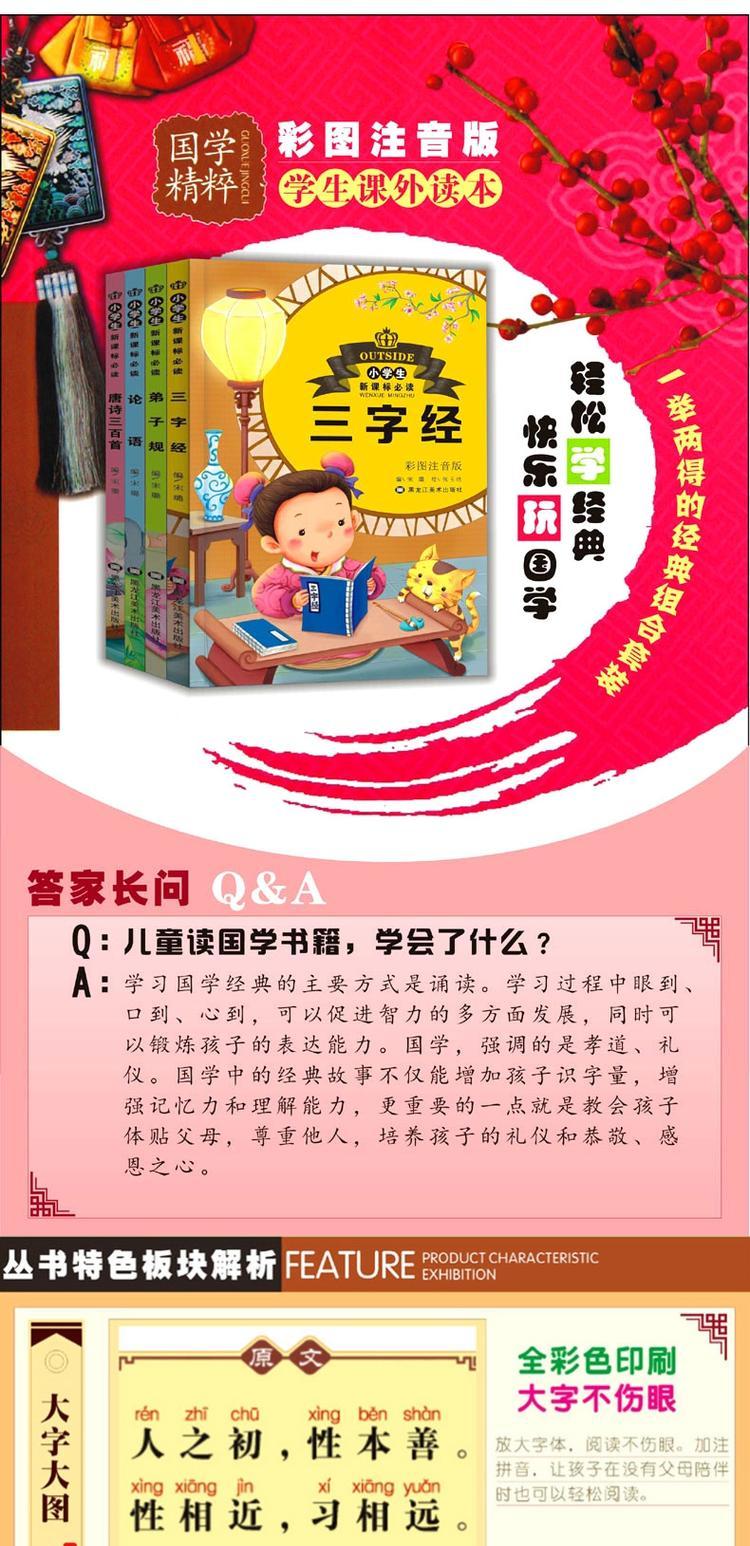 三字经 弟子规 论语 唐诗三百首 全四册 6-9-12岁青少儿童励志文