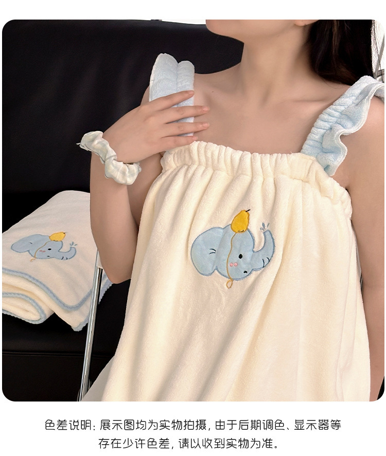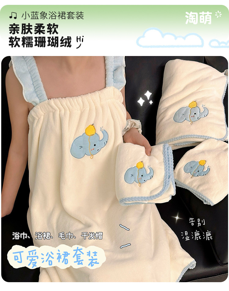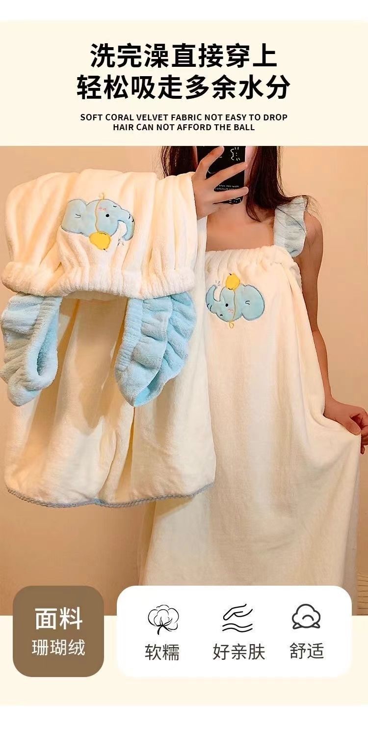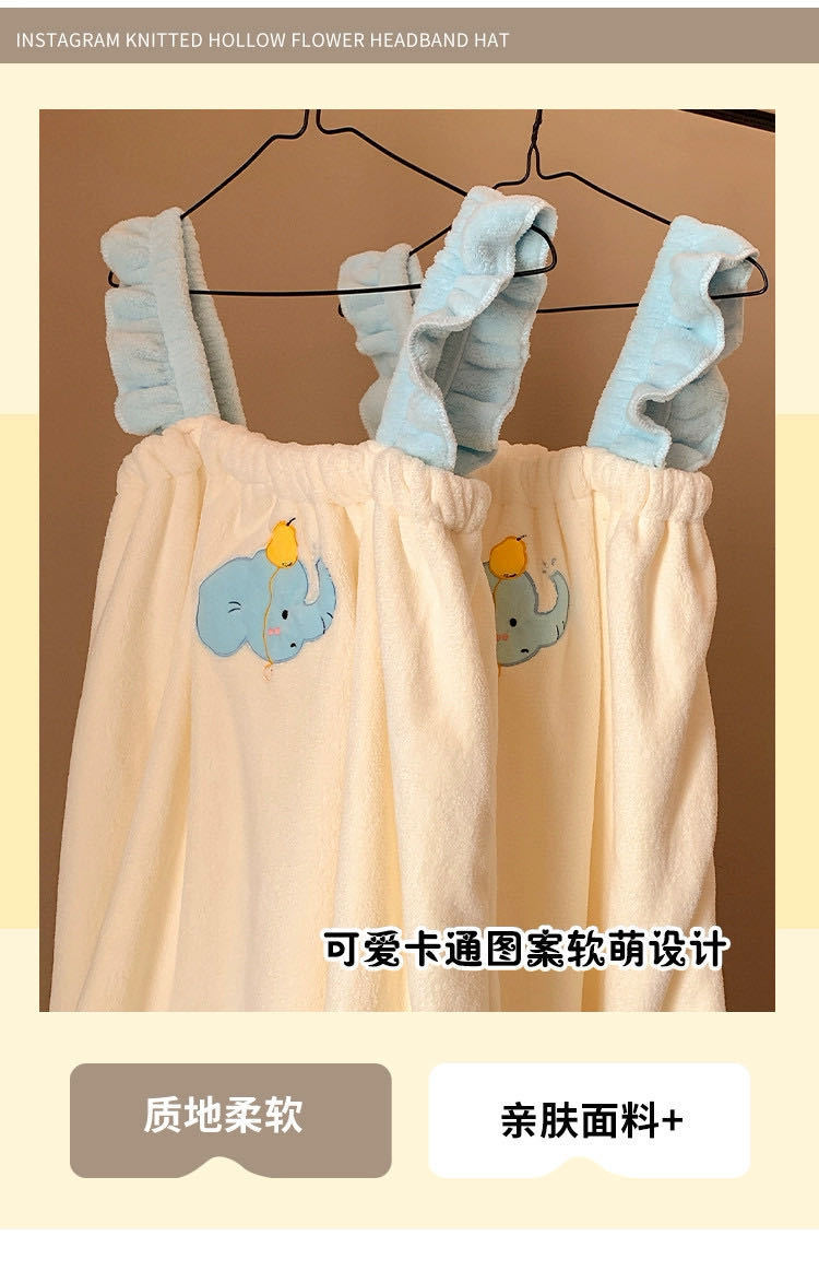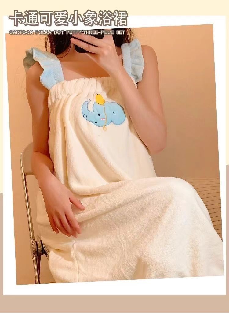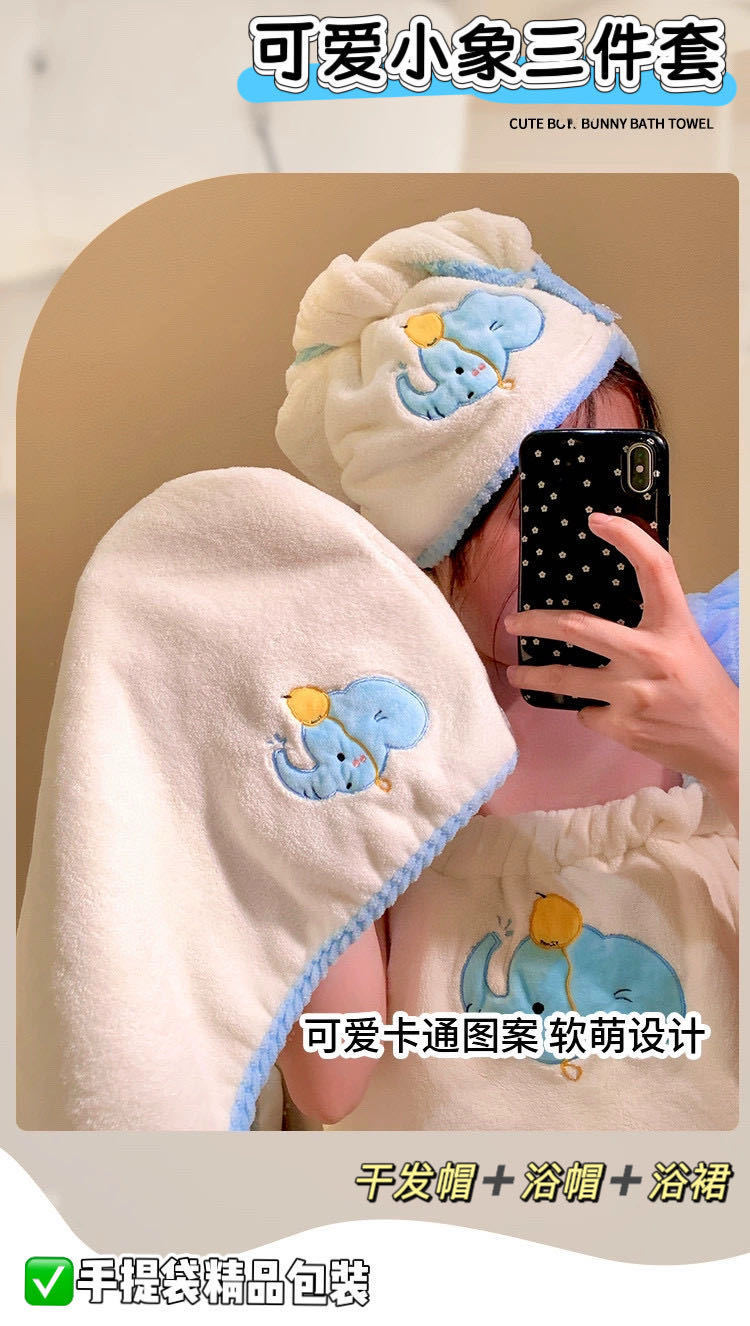 【YW】无忧购吸水速干可爱卡通吊带浴袍可穿式浴巾毛巾浴帽三件套2655634(截单后3-5天发货)