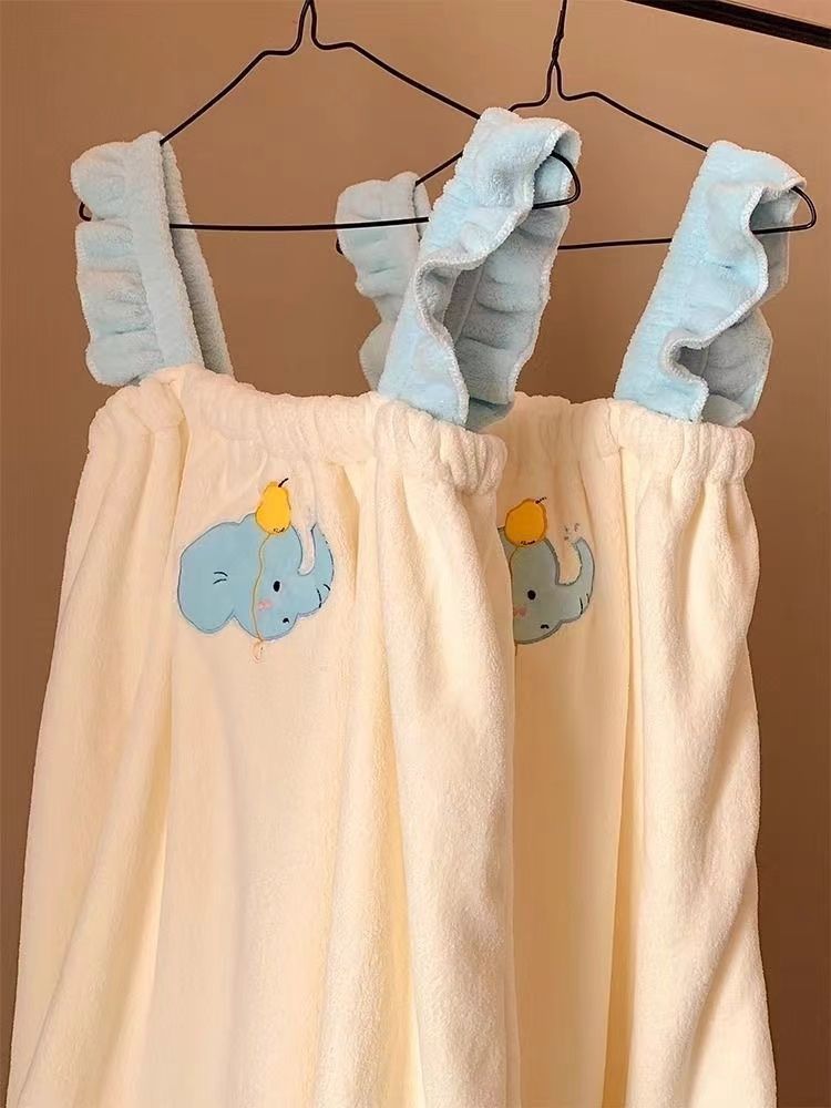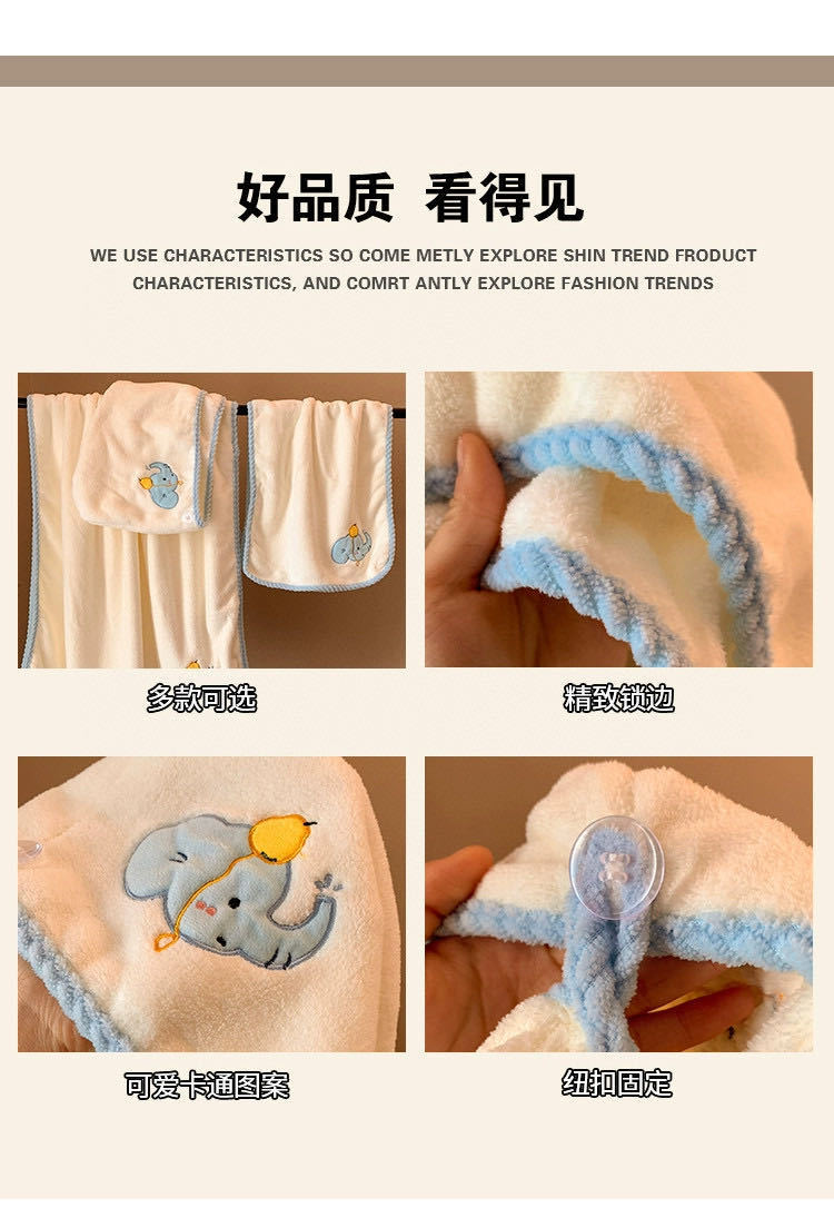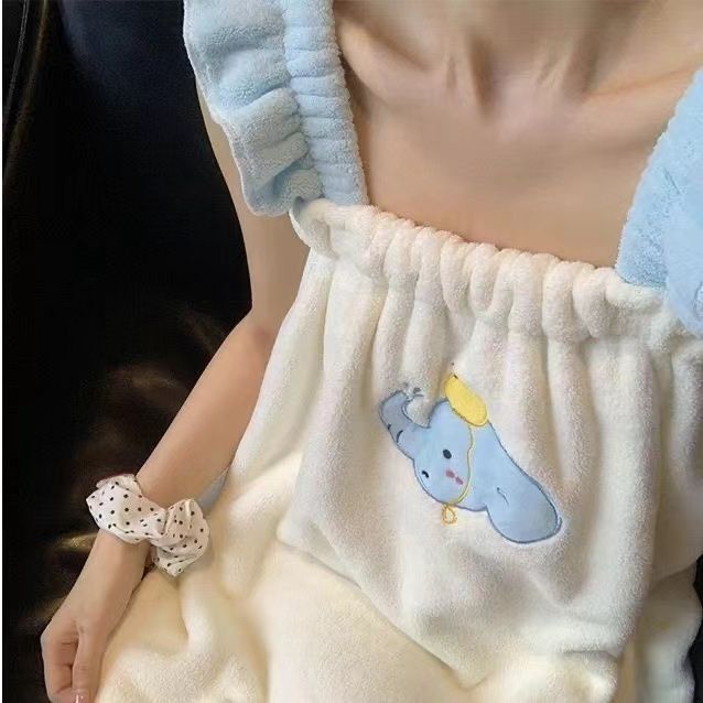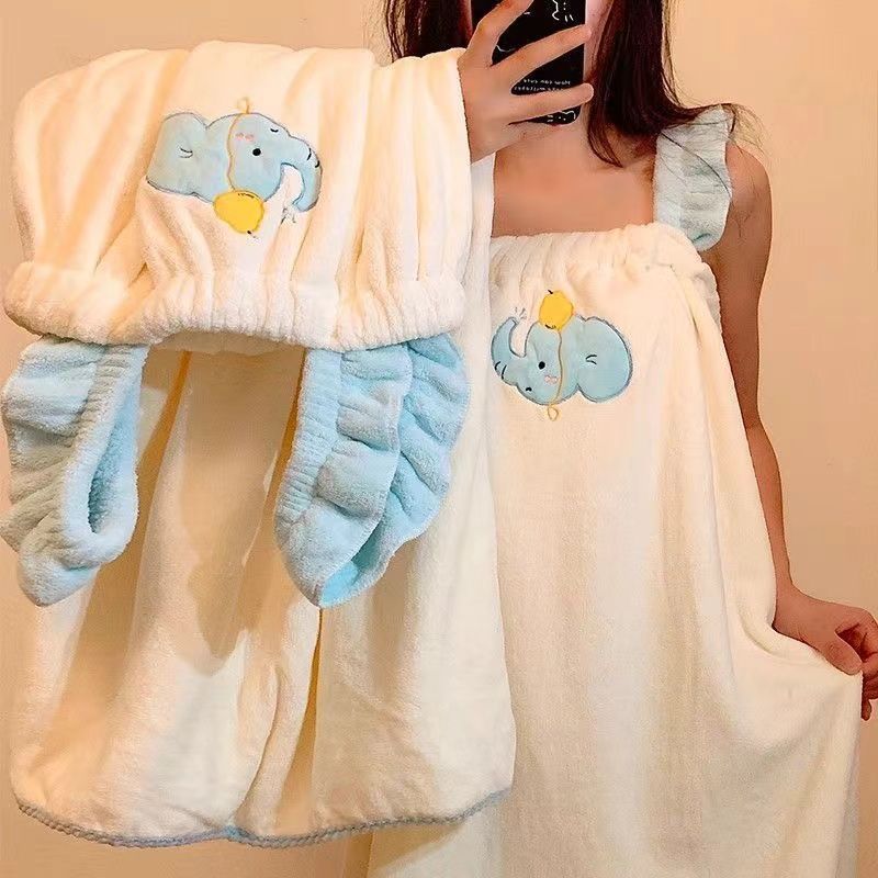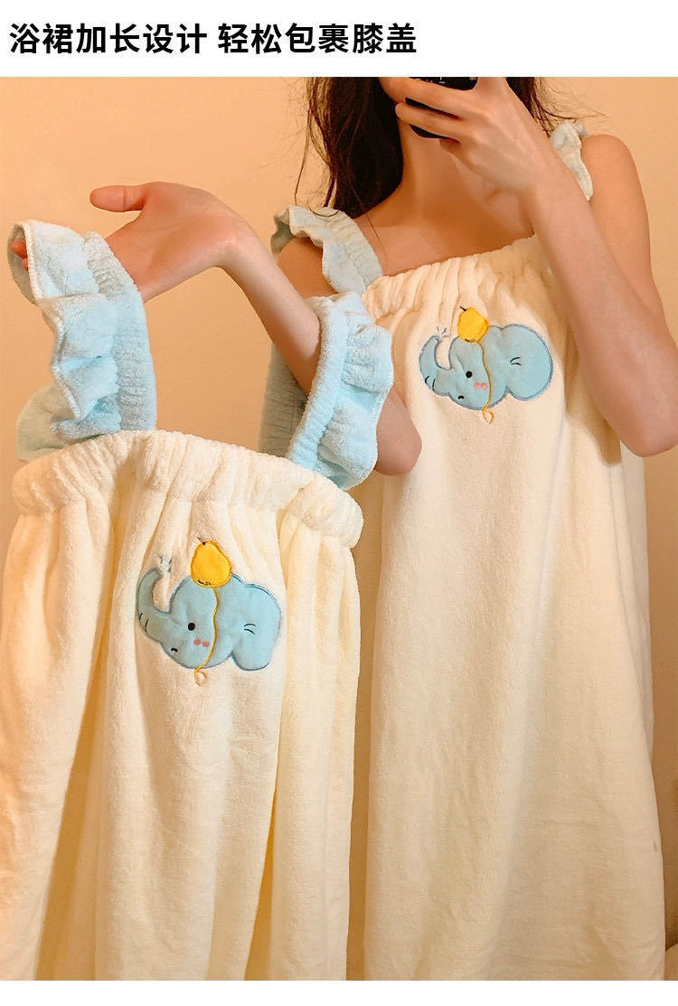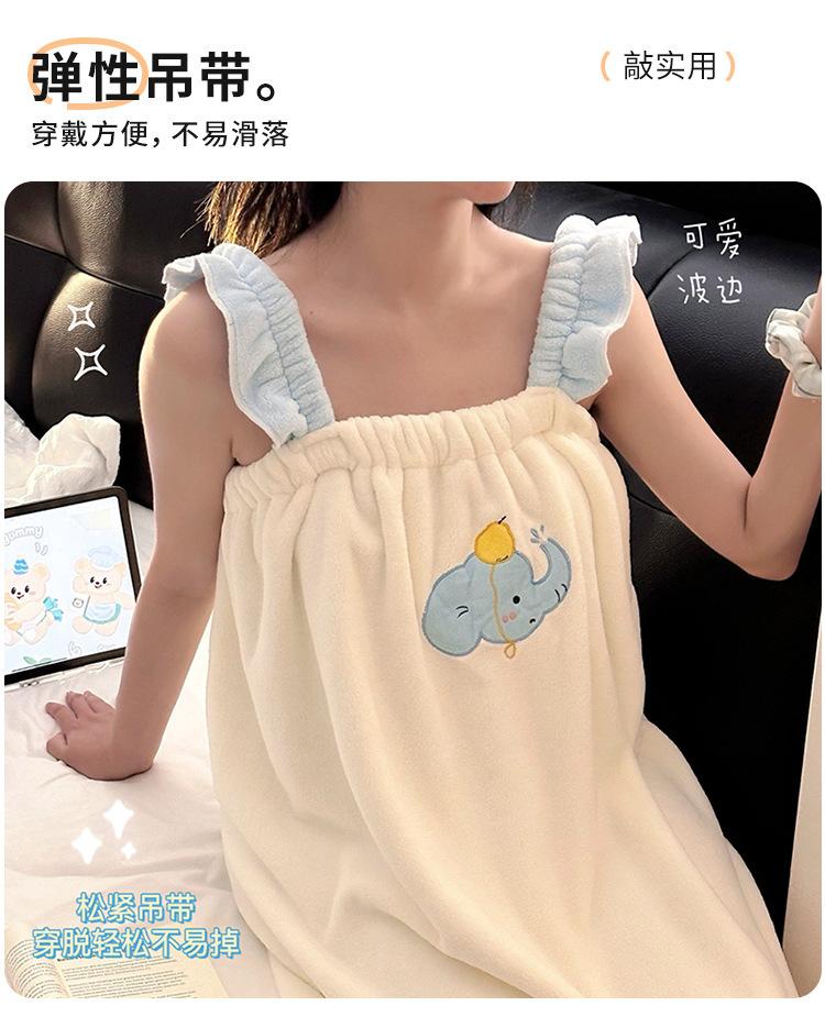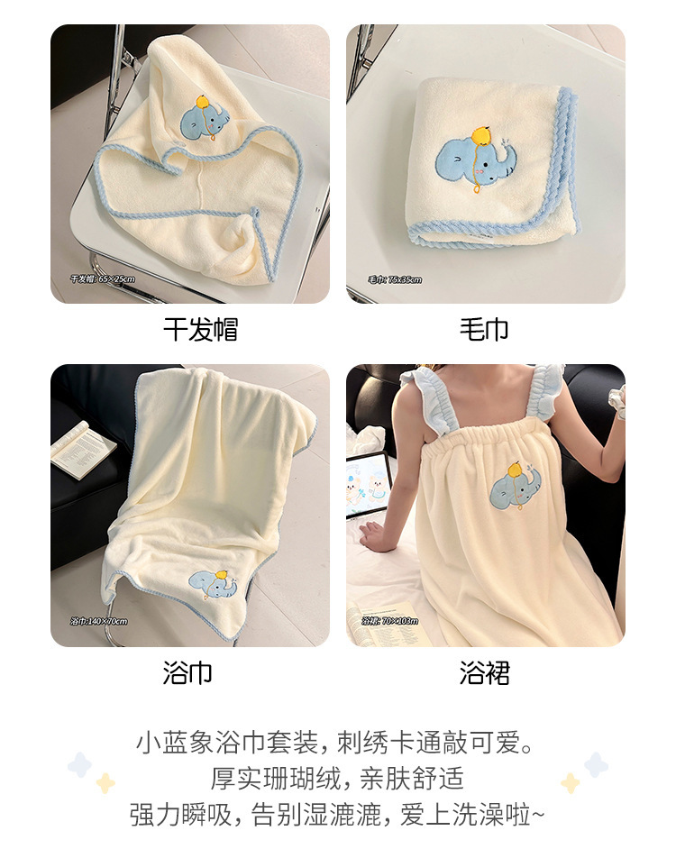 【YW】无忧购吸水速干可爱卡通吊带浴袍可穿式浴巾毛巾浴帽三件套2655634(截单后3-5天发货)