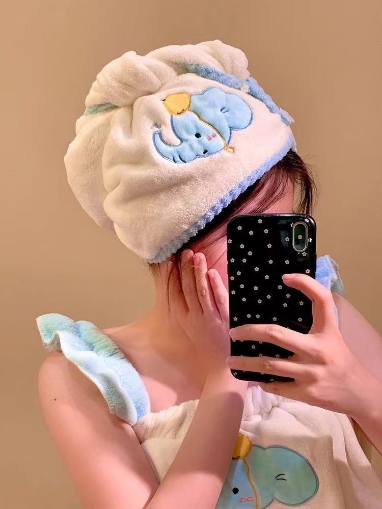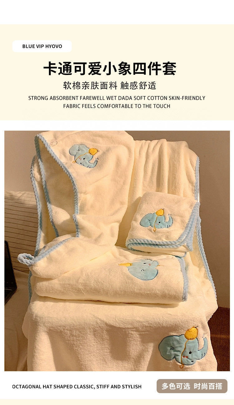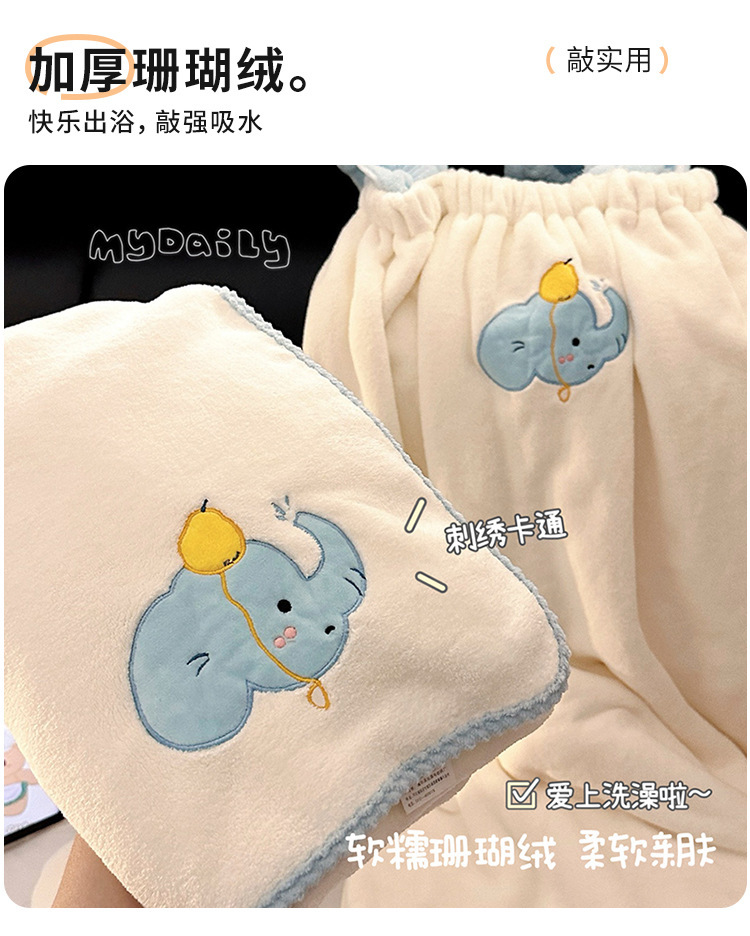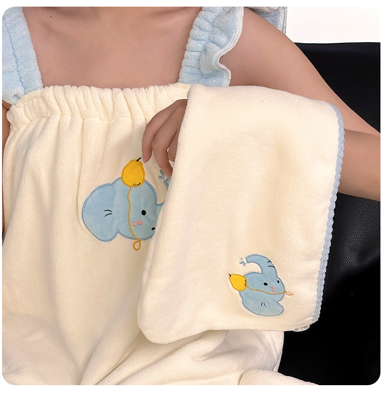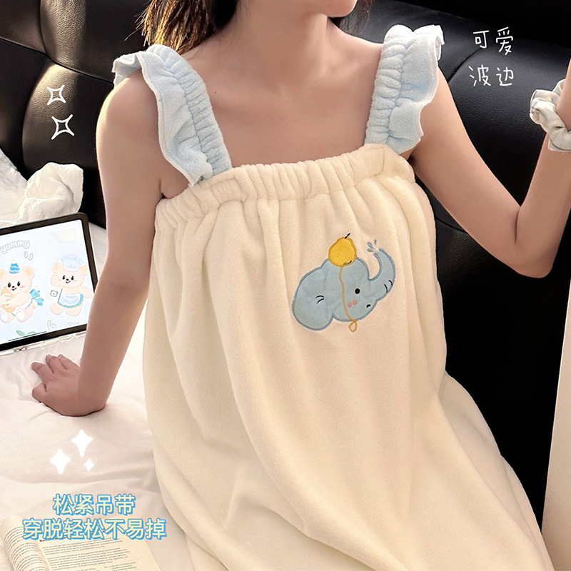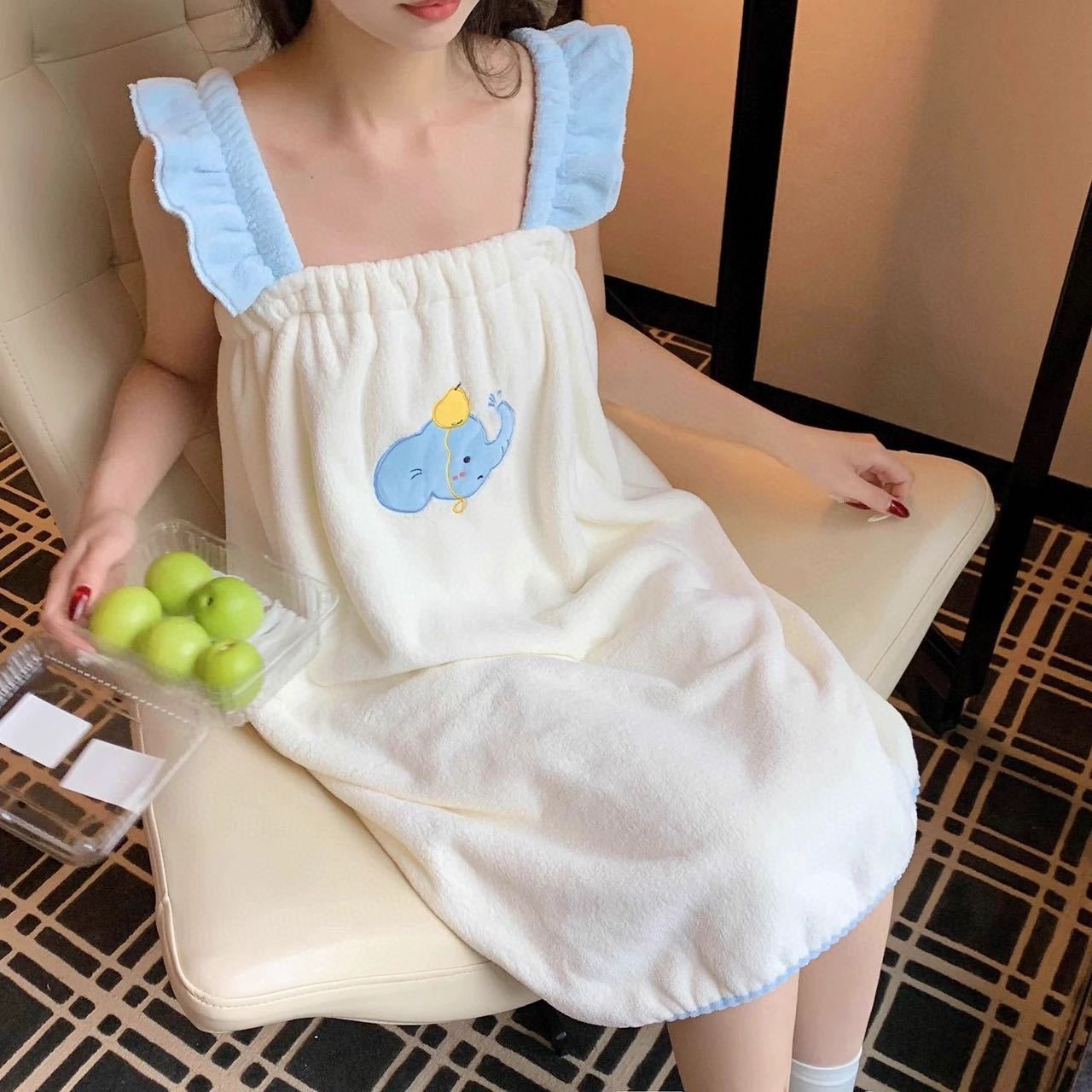 【YW】无忧购吸水速干可爱卡通吊带浴袍可穿式浴巾毛巾浴帽三件套2655634(截单后3-5天发货)